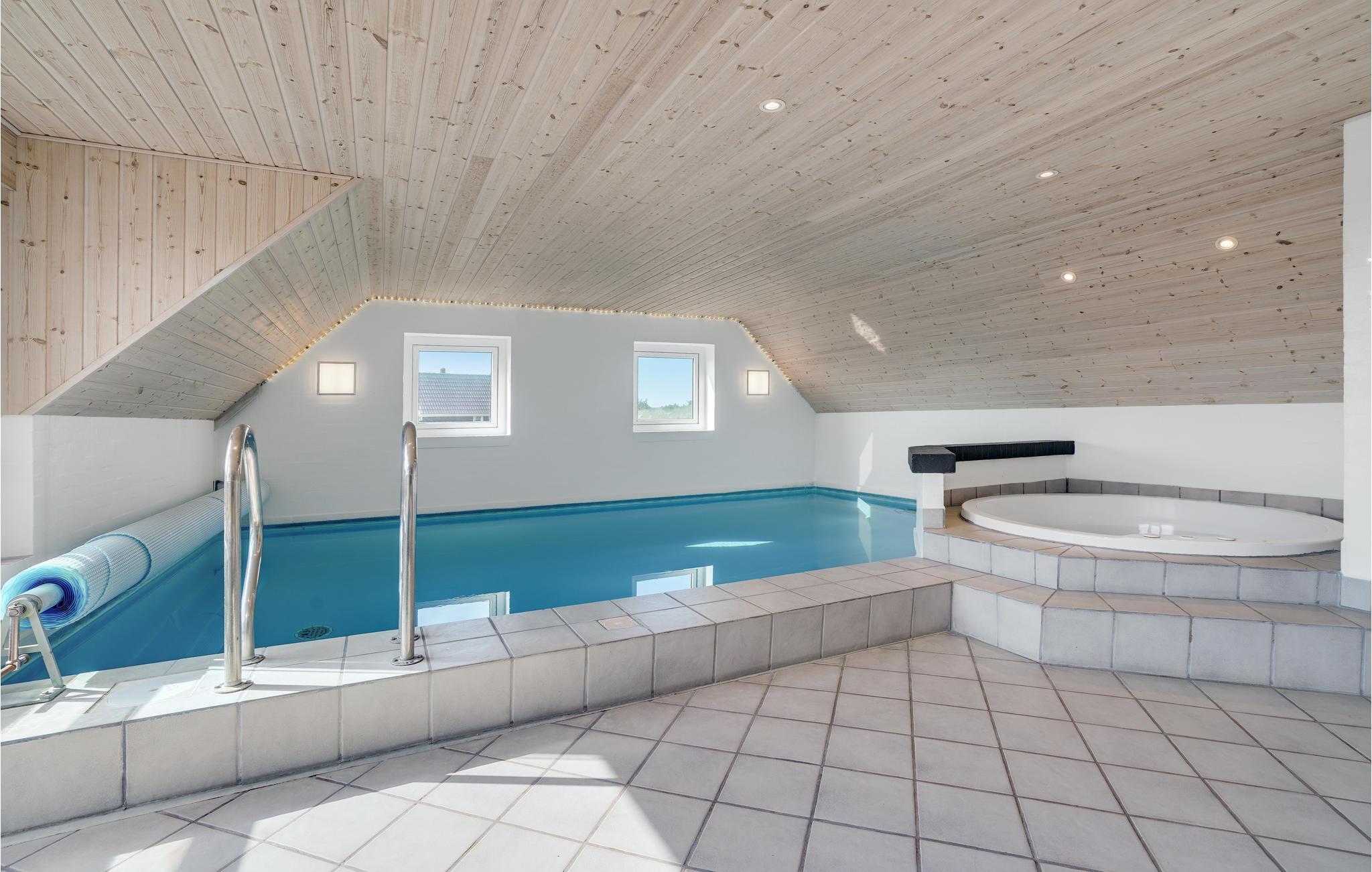Dejligt og meget velholdt feriehus med en lækker wellnessafdeling med swimmingpool, spabad og sauna. Huset er godt indrettet med to sengeafdelinger og to badeværelser - perfekt for flere familier. Alle fire soveværelser råder over eget tv med receiver. Det veludstyrede køkken ligger i åben forbindelse med opholdsstuen og spisestuen, hvorfra der også er kig til poolafdelingen, så I kan følge med i alle aktiviteterne. Den store stue er moderne indrettet med bl.a. aktivitetsspil, PS4, stort Smart-tv og ikke mindst en brændeovn til at skabe den helt rigtige feriestemning. På den store, lukkede terrasse kan I alle samles omkring grillen, nyde livet og slappe af med et godt glas vin. For de mindste er der både sandkasse, gynger, vippe og i sommermånederne trampolin.