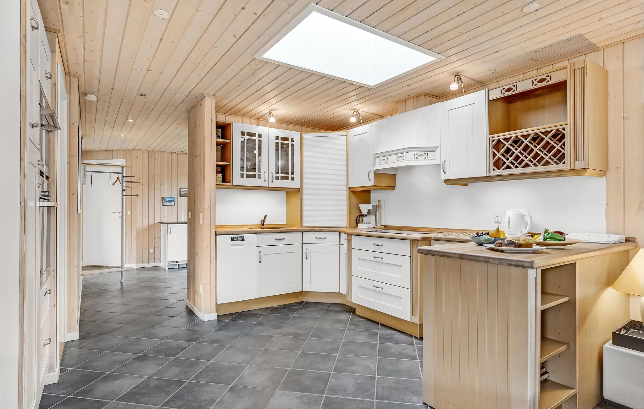 I dette dejlige og smagfuldt indrettede feriehus, som er opført i de bedste kvalitetsmaterialer både ude og inde, er der tænkt på at opfylde de fleste ferieønsker for alle aldre - uanset om I er til ren afslapning eller til en aktiv ferie. På den store grund er der, udover både gynge og sandkasse til de mindste, også et shelter samt en udendørs fiskerenseplads, hvis I er heldige at få fangst i en af områdets mange fiskesøer eller fra molen i Hvide Sande. Skulle vejret ikke være til at grille på en af de udendørs terrasser, er der også tænkt på det, idet her findes en indendørs grill. Afhængigt af årstiden indbyder Vesterhavet og den næsten uendelig lange, hvide sandstrand til både badning, solbadning og lange gåture. Efter en dejlig dag i naturen kan I slappe af med enten en tur i saunaen eller i spabadet i husets wellness afdeling.