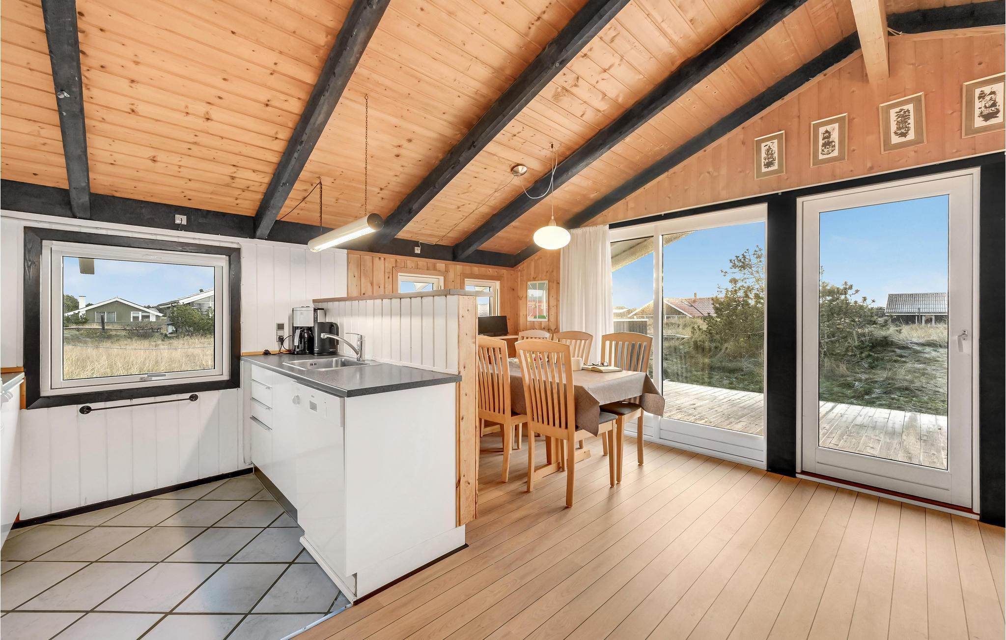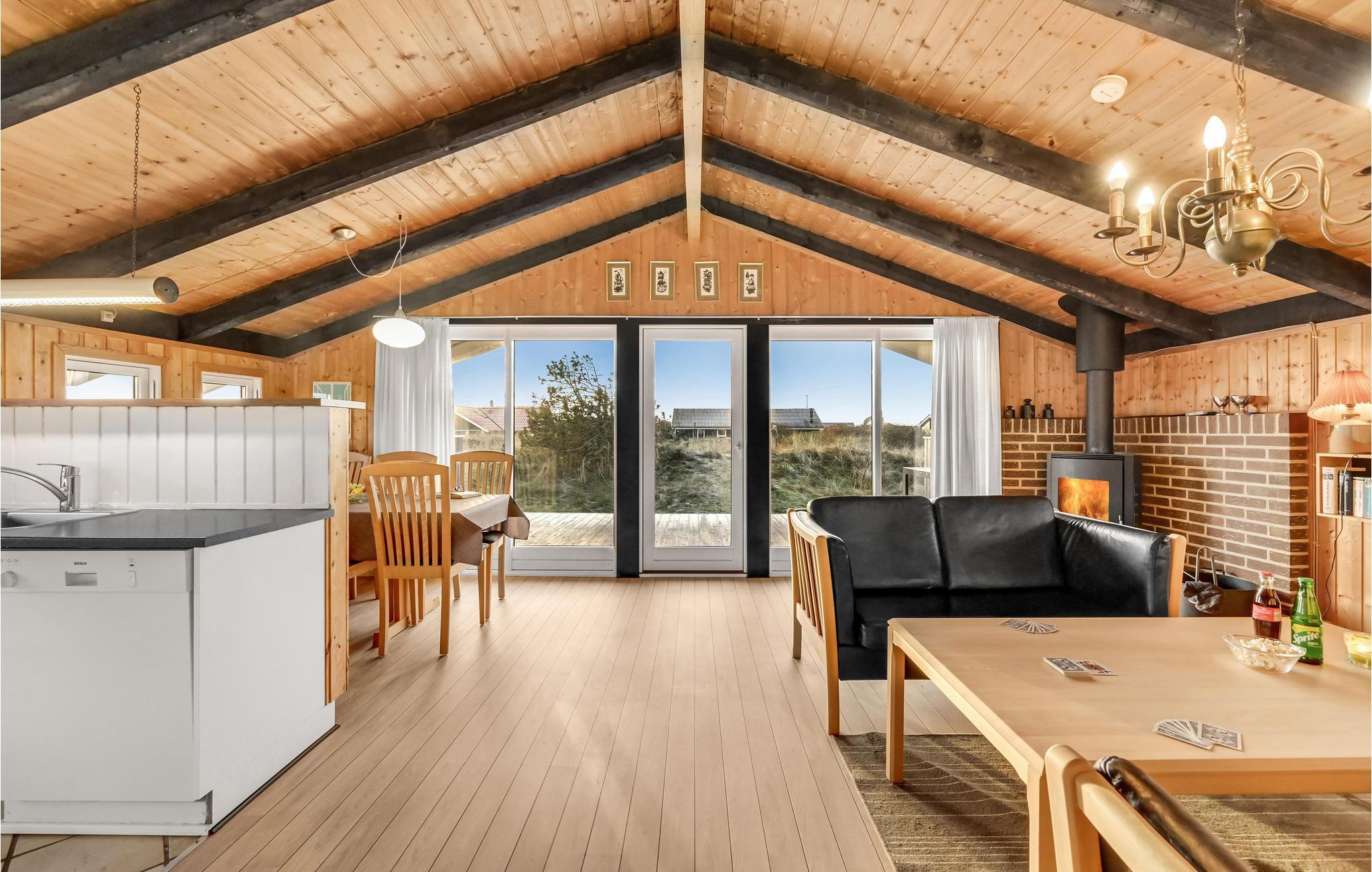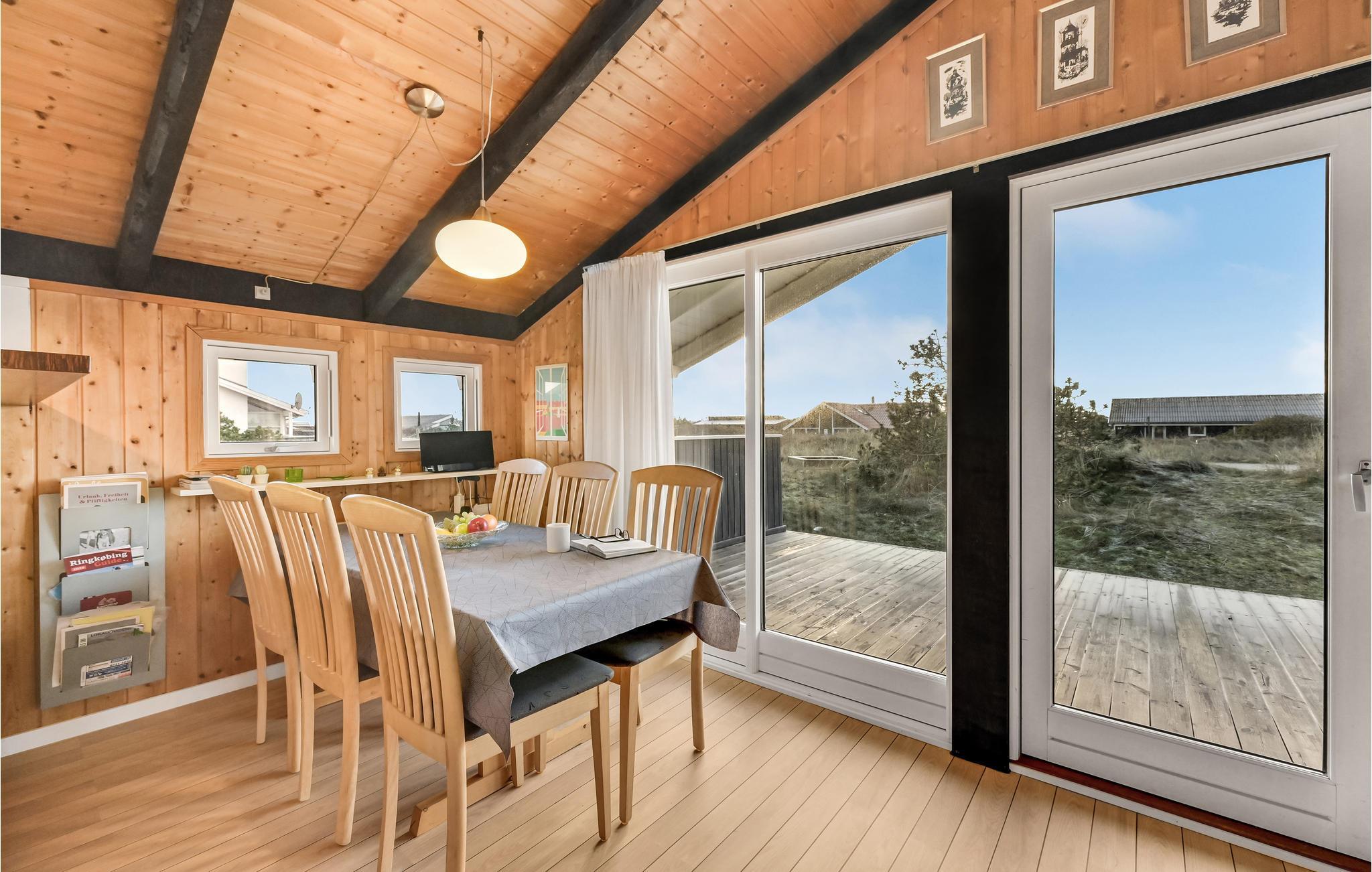 Dejligt træhus med tilhørende sydvendt terrasse og beliggende på en fin naturgrund. Huset ligger i gåafstand til den skønne strand. Bjerregård ligger mellem hav og fjord, lidt syd for Hvide Sande med Vesterhavet på den ene side og Ringkøbing Fjord på den anden side. Man kan ikke undgå at bemærke den smukke og alligevel barske natur, der på alle årstider indbyder til vandreture og dejlige oplevelser. Om sommeren er der masser af surferaktivitet på fjorden, mens der bades og slikkes sol langs hele vestkysten. For lystfiskere er der gode fangstmuligheder både fra kysterne og de mange gode Put & Take søer. Fra Hvide Sande kan man også tage med på havfisketure på Nordsøen, hvor skipperen har store erfaringer i at finde de bedste fiskepladser.