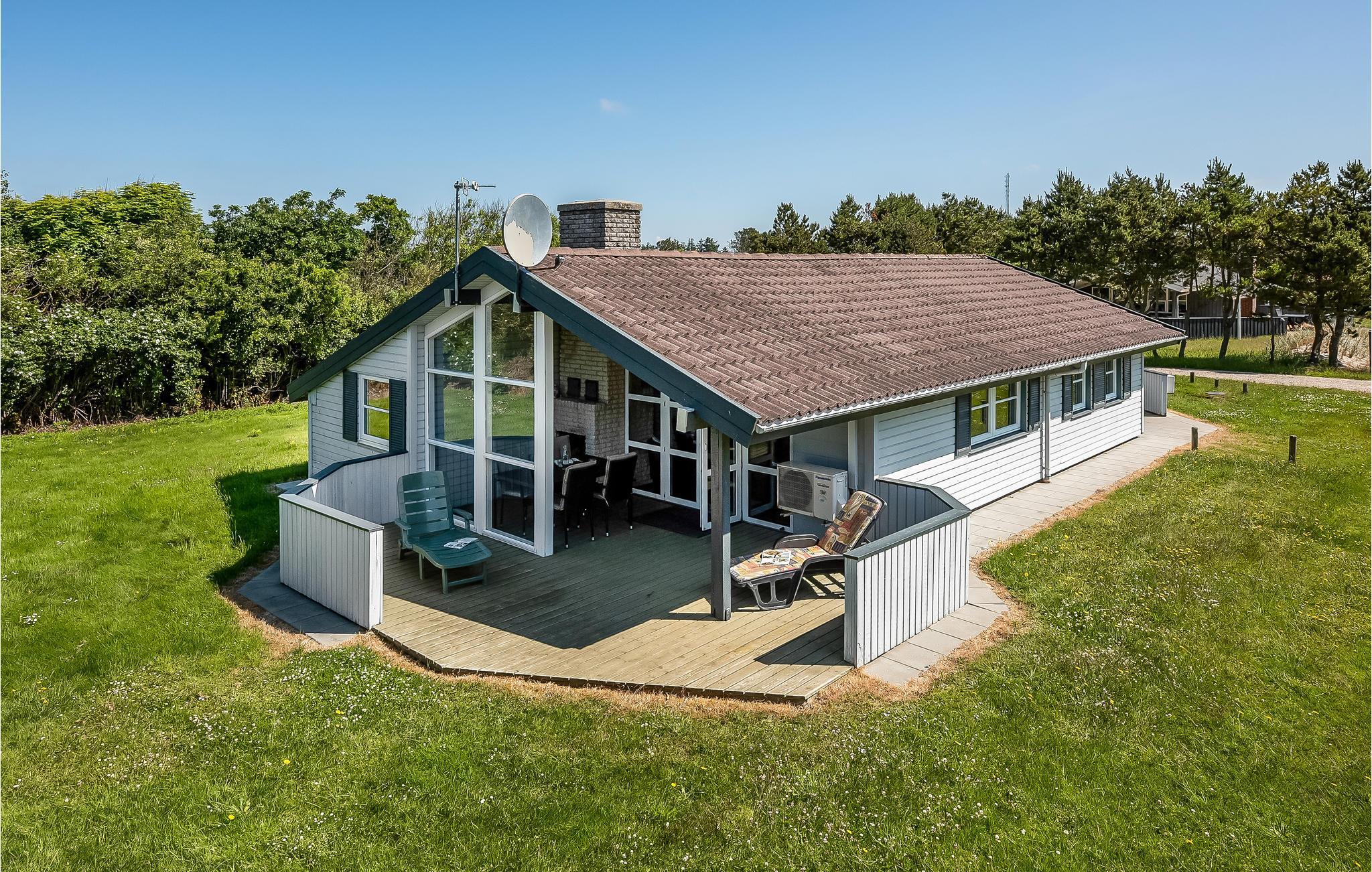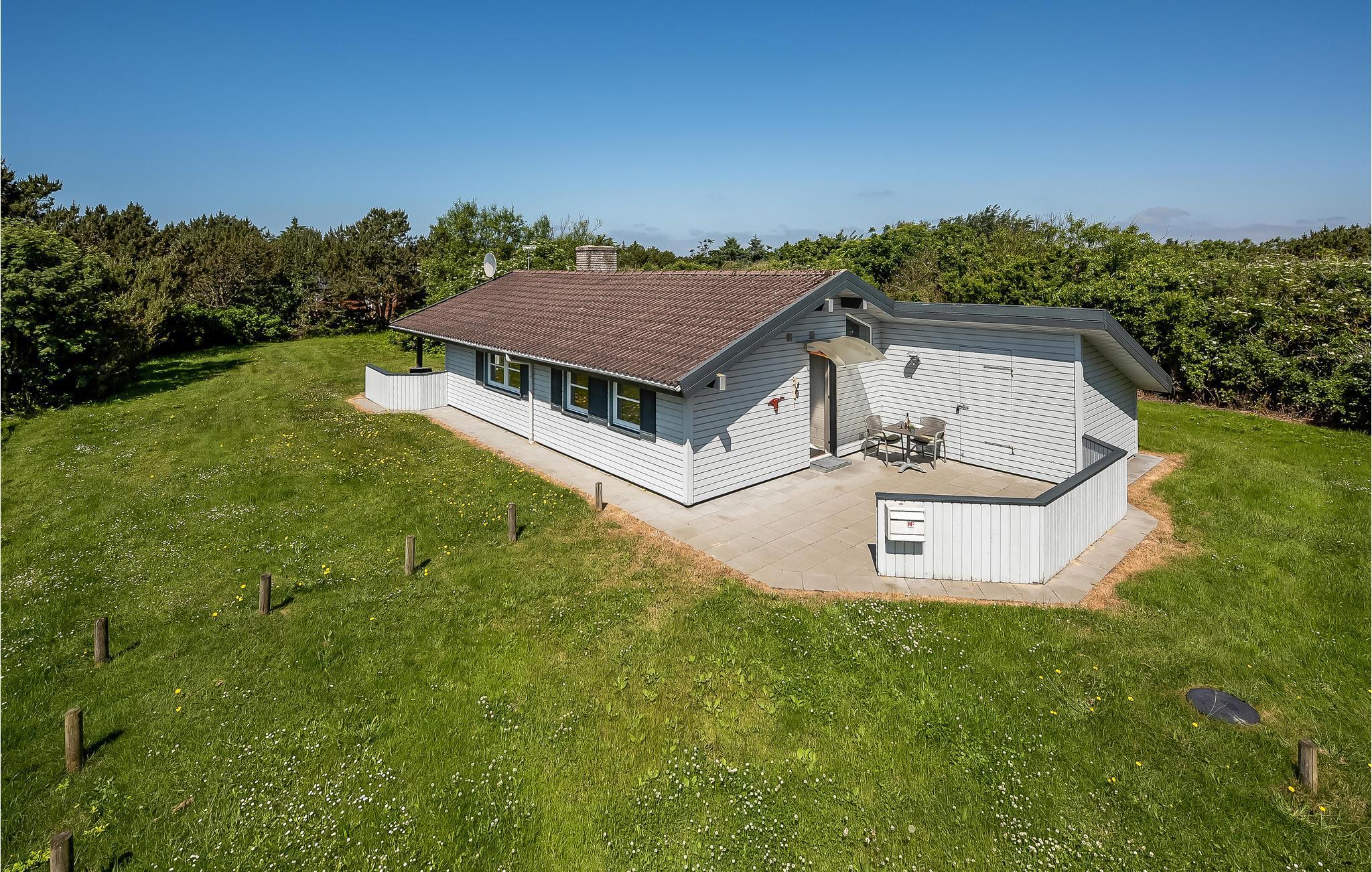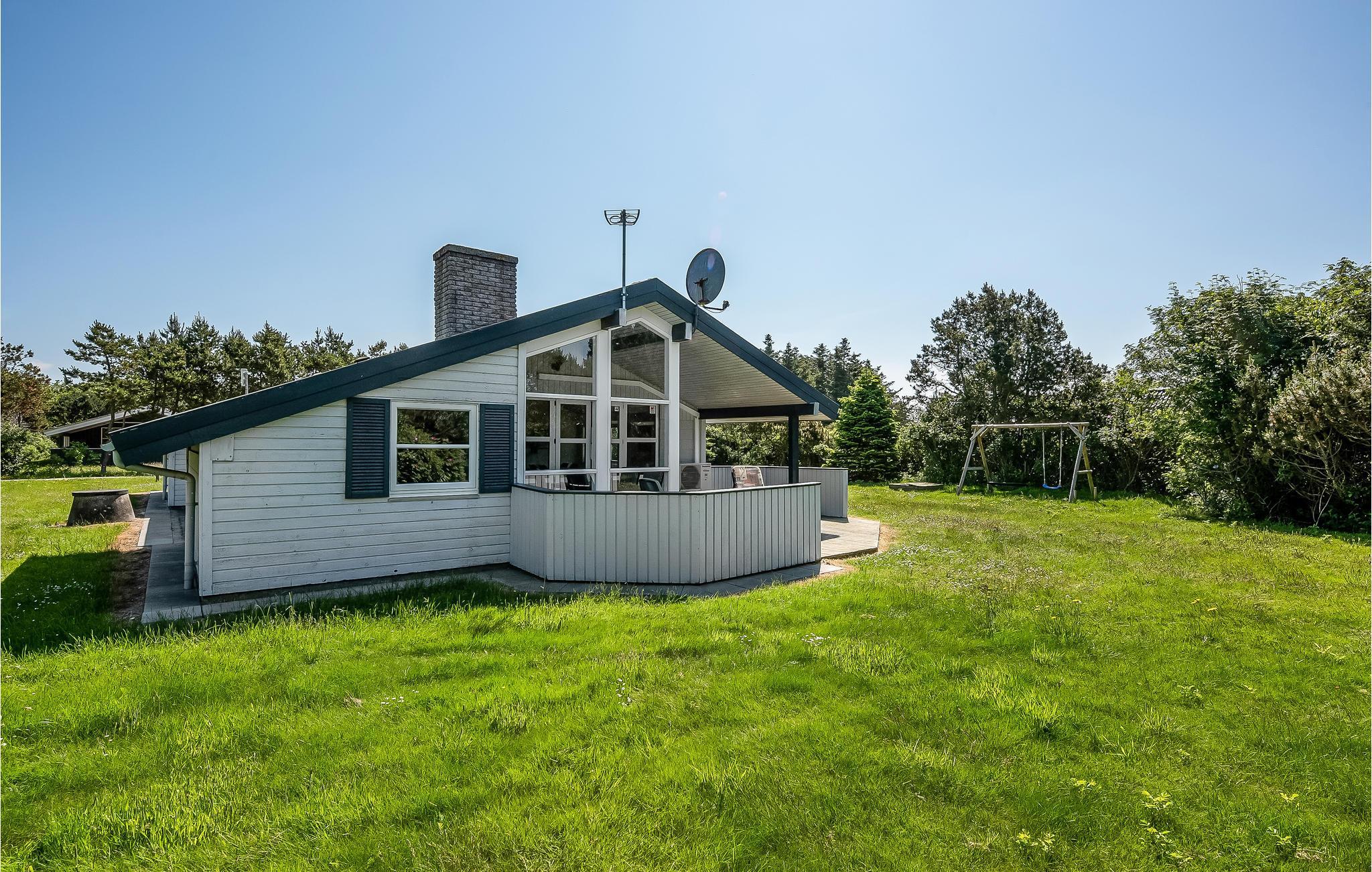 I det eftertragtede Bjerregård ved Vesterhavet ligger dette moderniserede og velholdte træferiehus på en naturgrund med græsplæne.