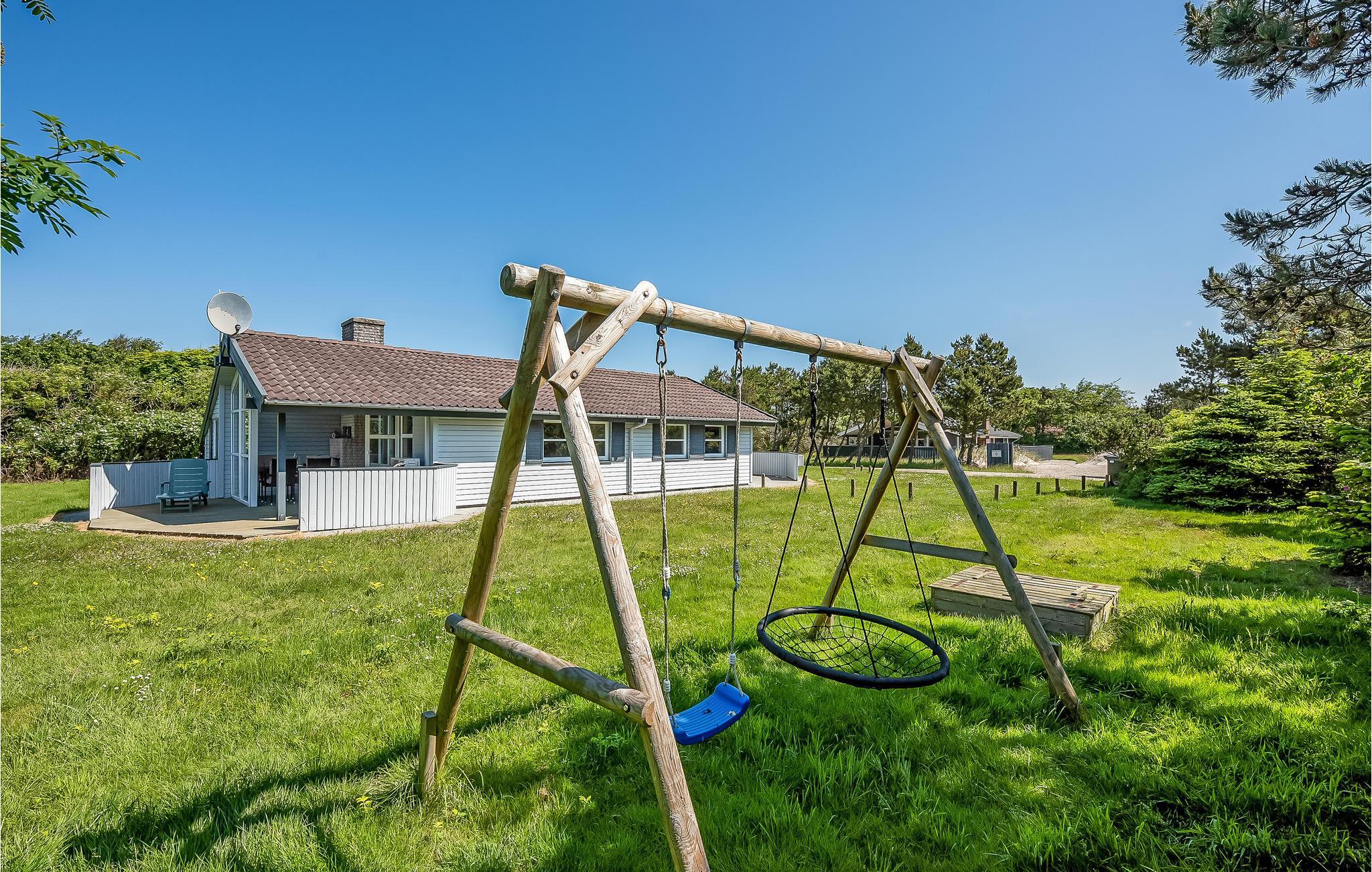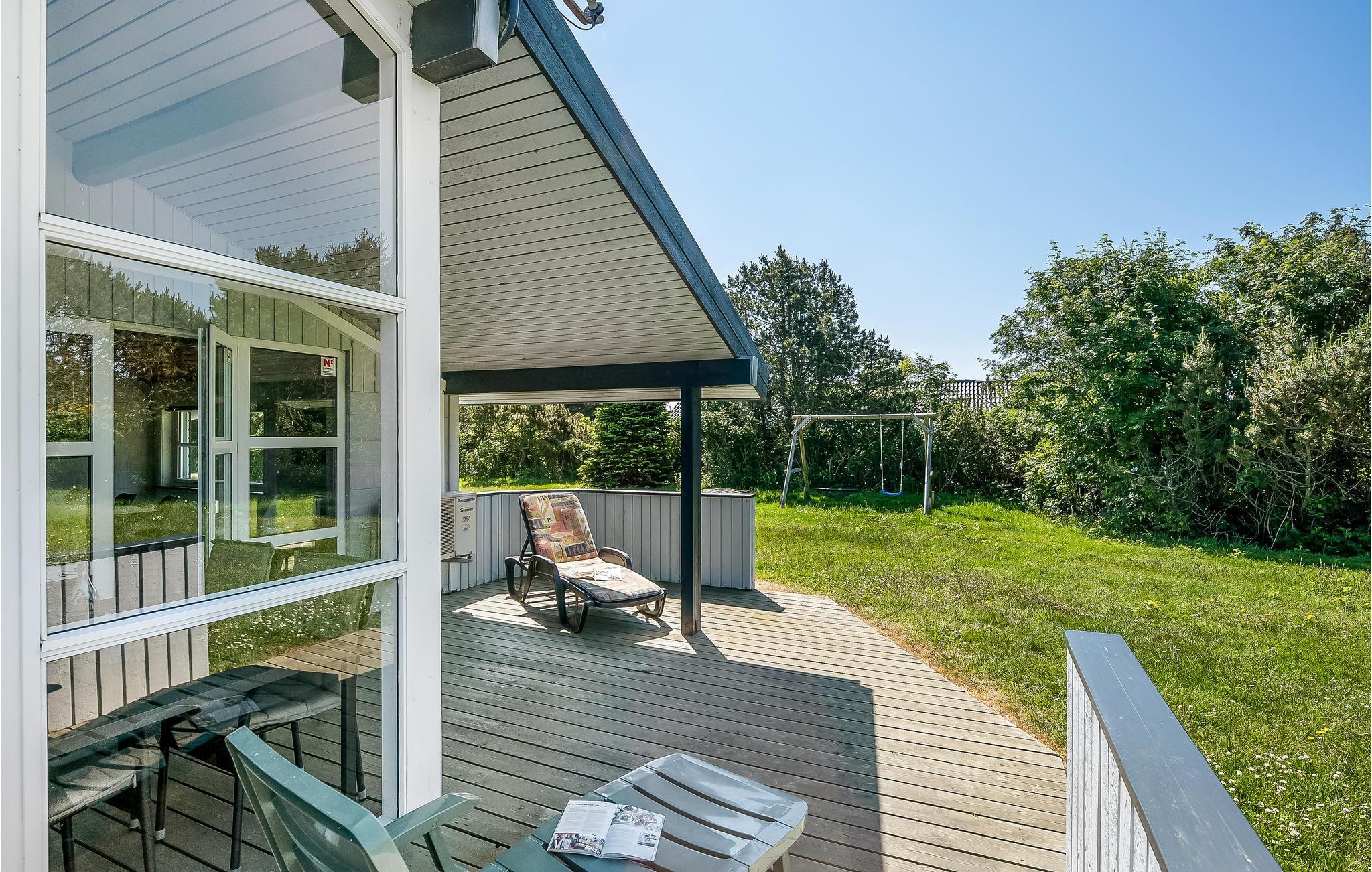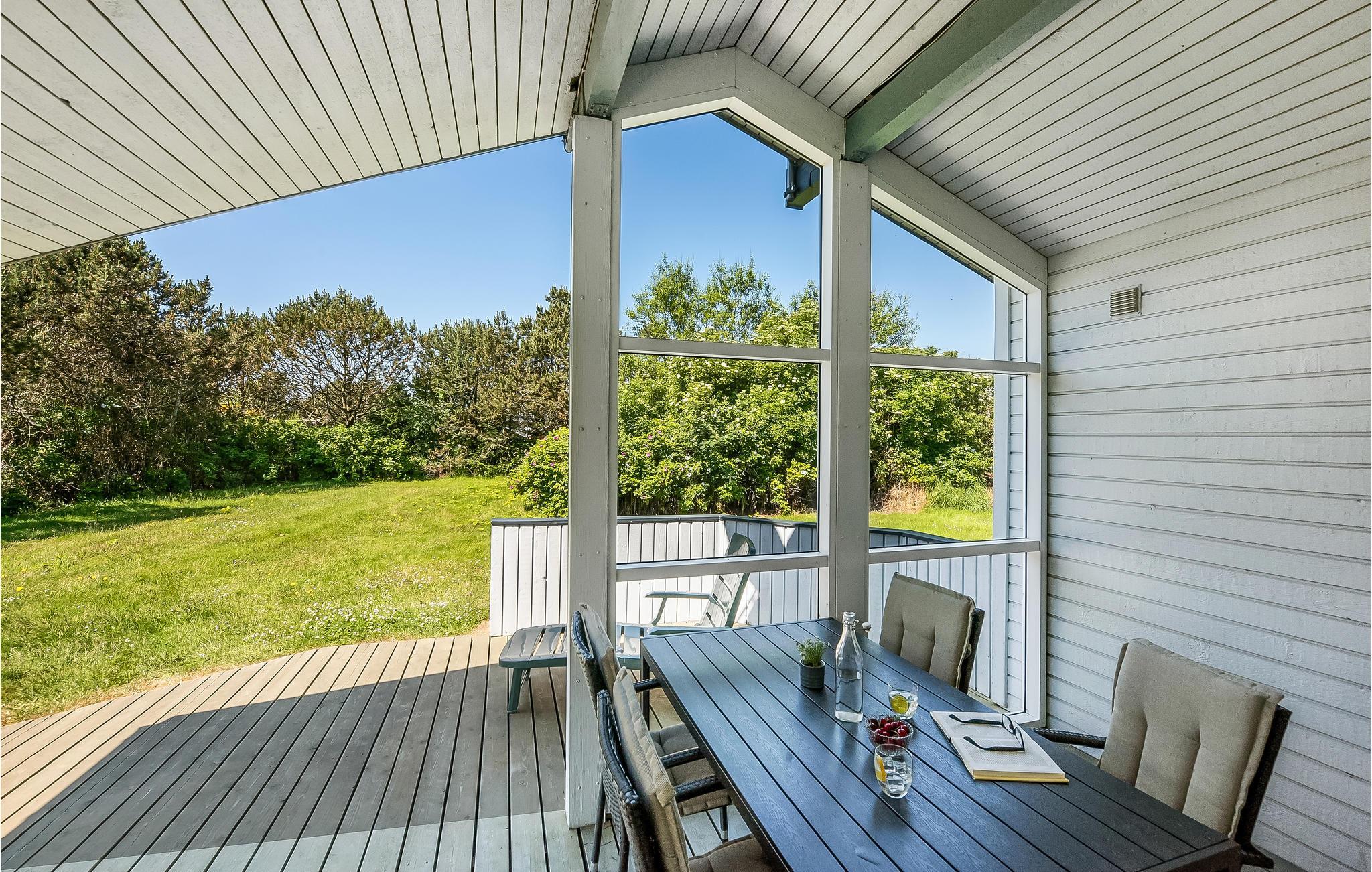I det eftertragtede Bjerregård ved Vesterhavet ligger dette moderniserede og velholdte træferiehus på en naturgrund med græsplæne.