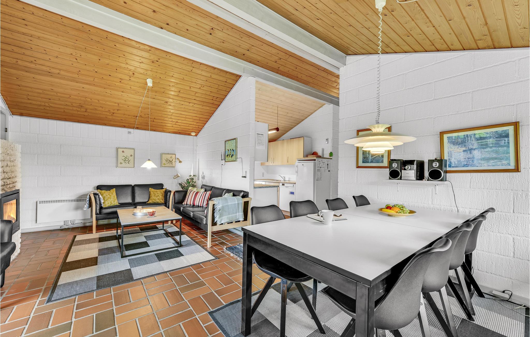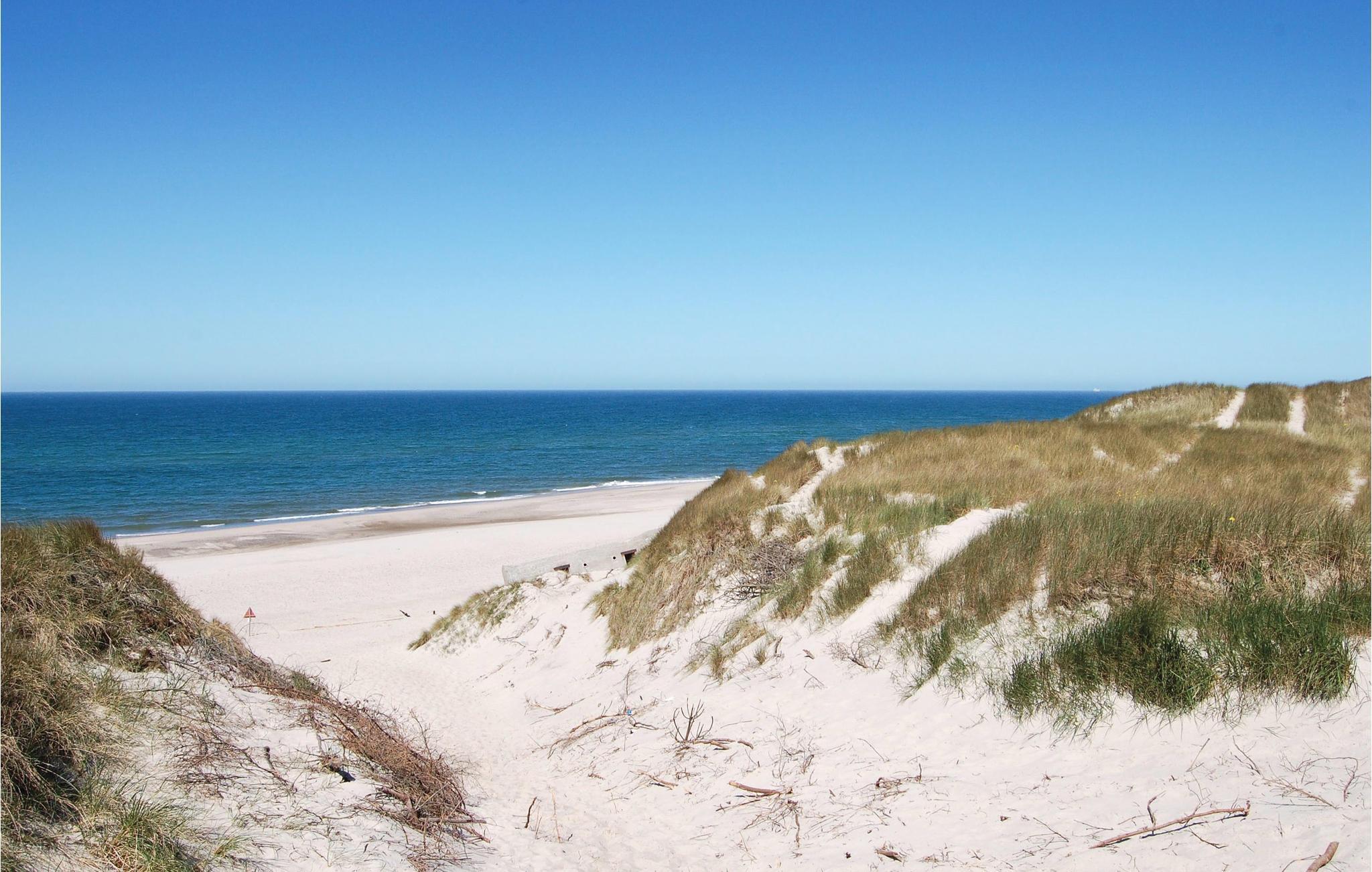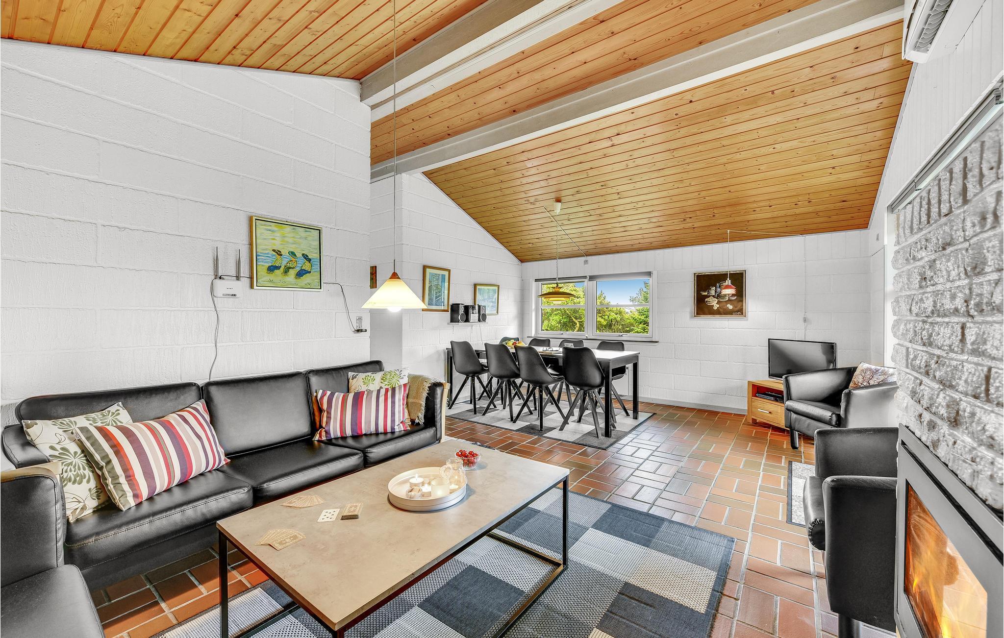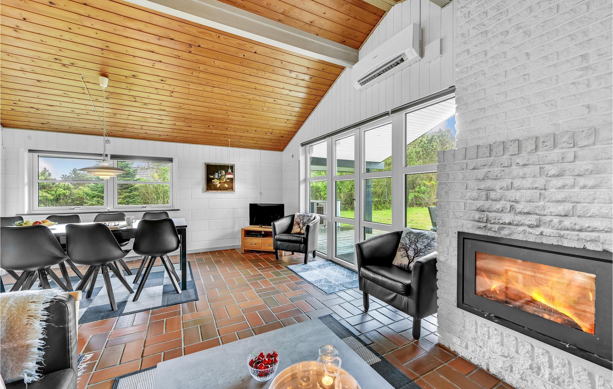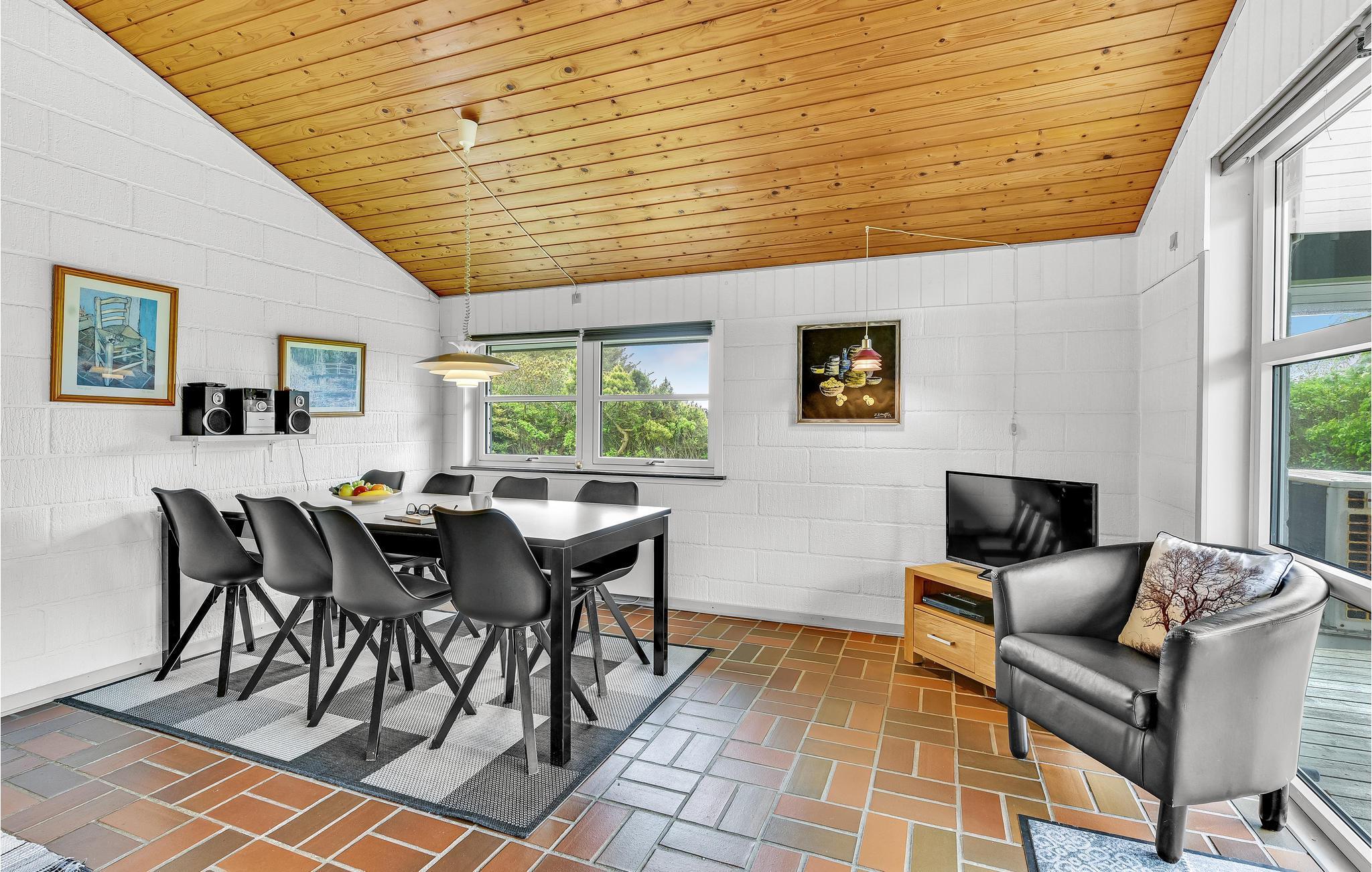 Bjerregård er kendt for sine høje klitter i umiddelbar nærhed af Vesterhavet. Efter en dejlig vandretur er der mange muligheder for hyggelige stunder i dette feriehus, f.eks. foran tv'et og pejsen.