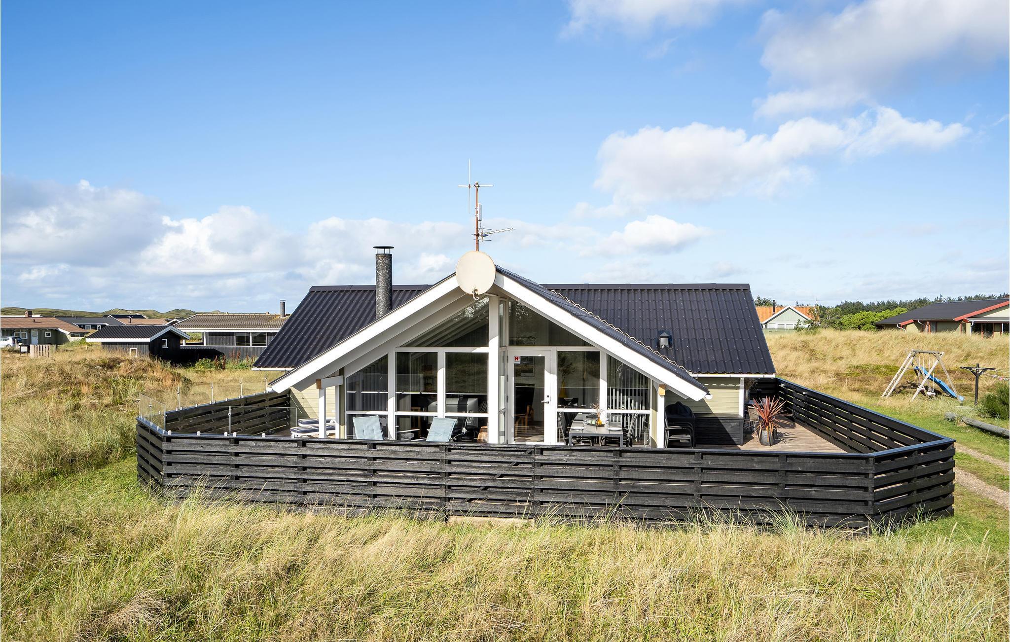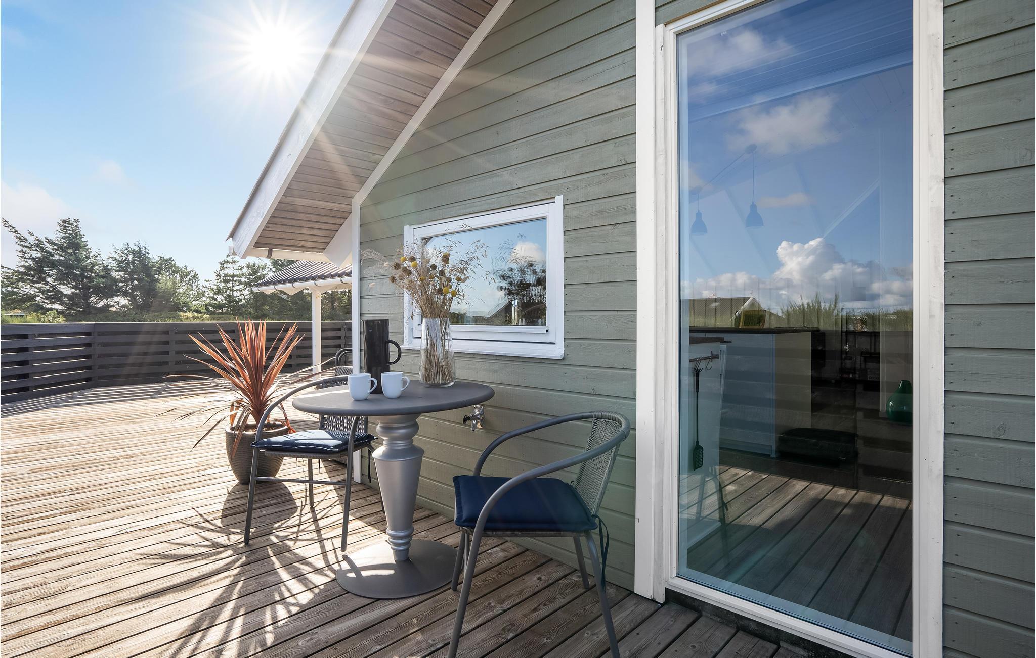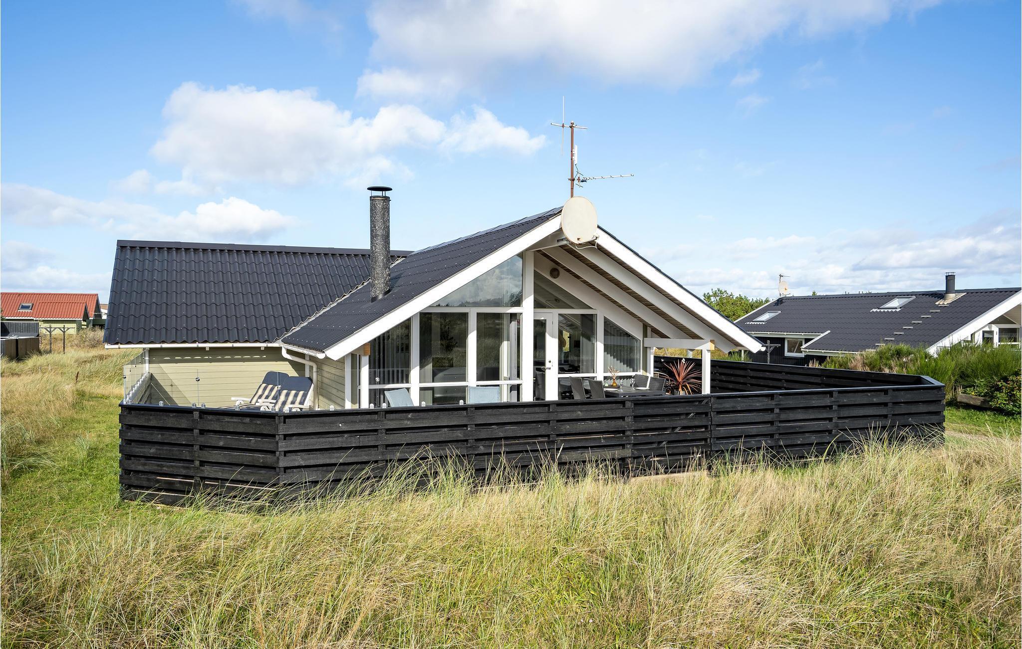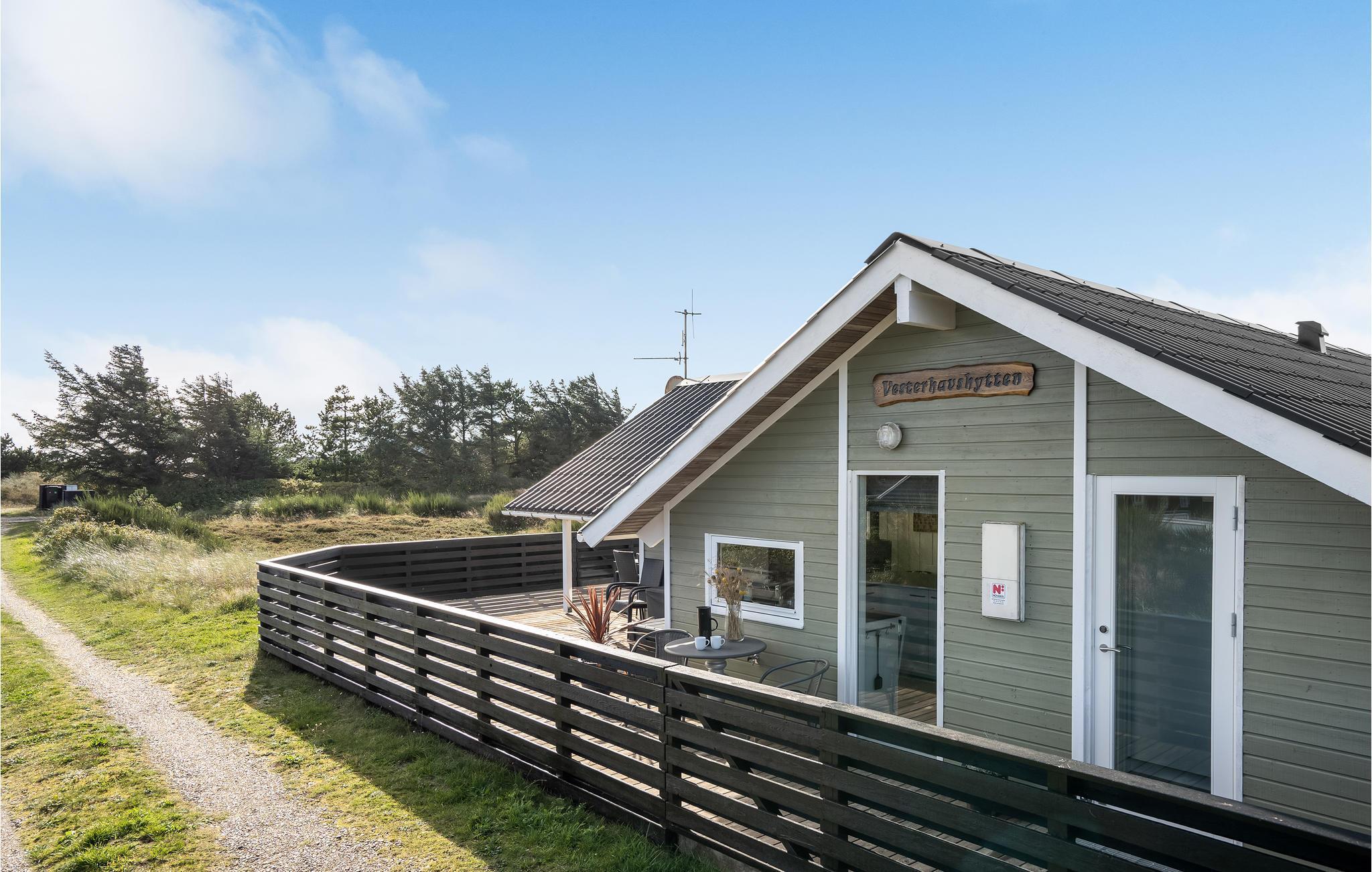 Charmerende feriehus nær Vesterhavet med terrasse, brændeovn og moderne faciliteter for en afslappende ferie.
