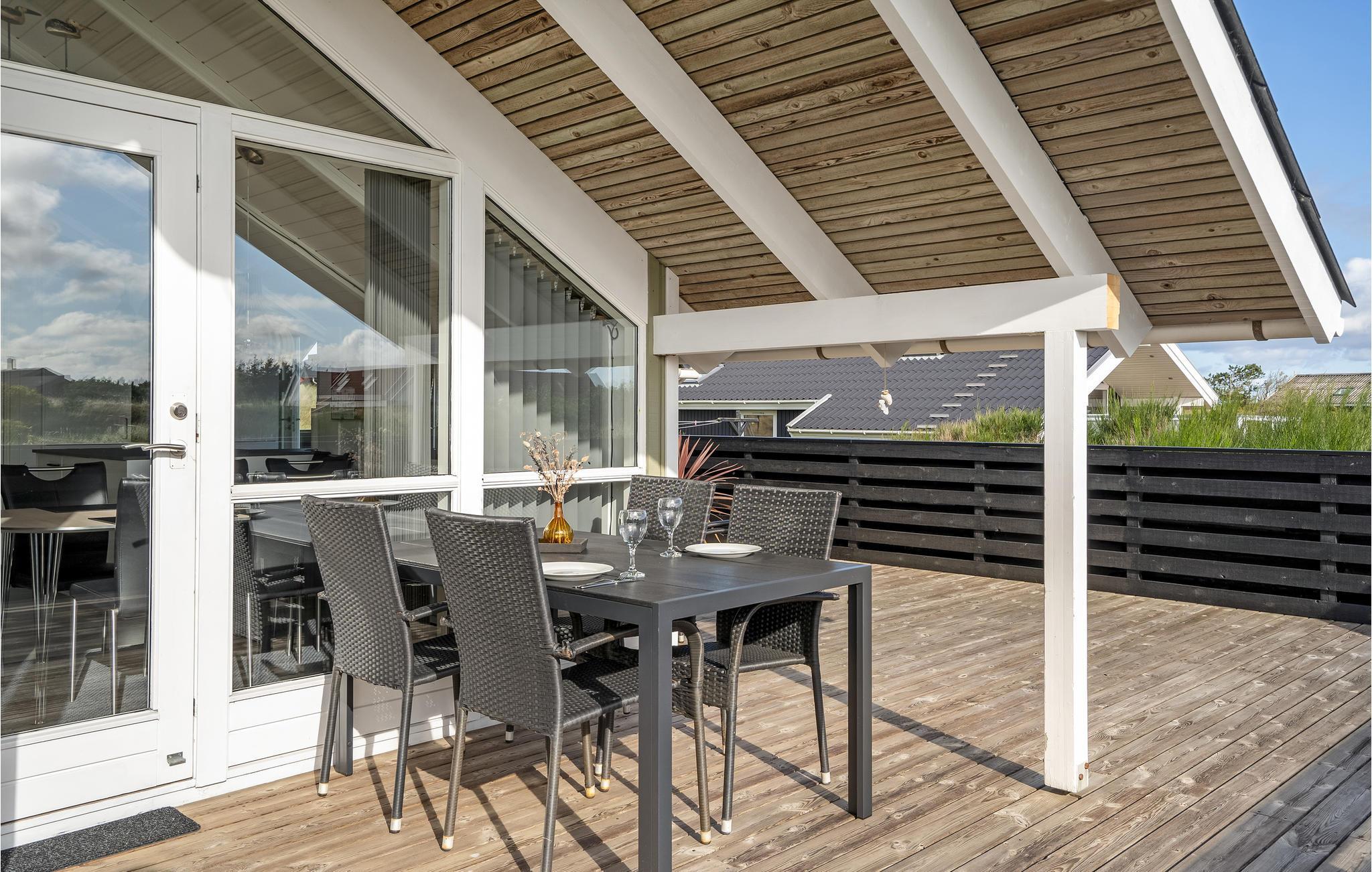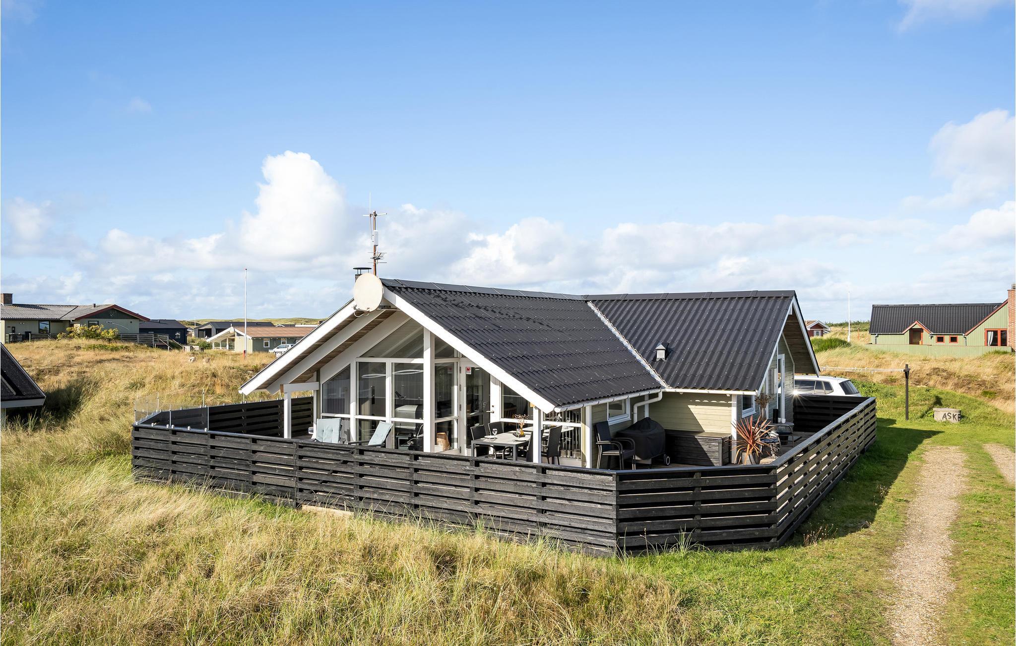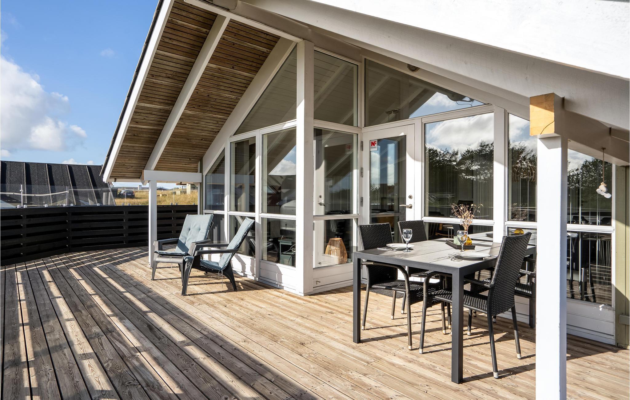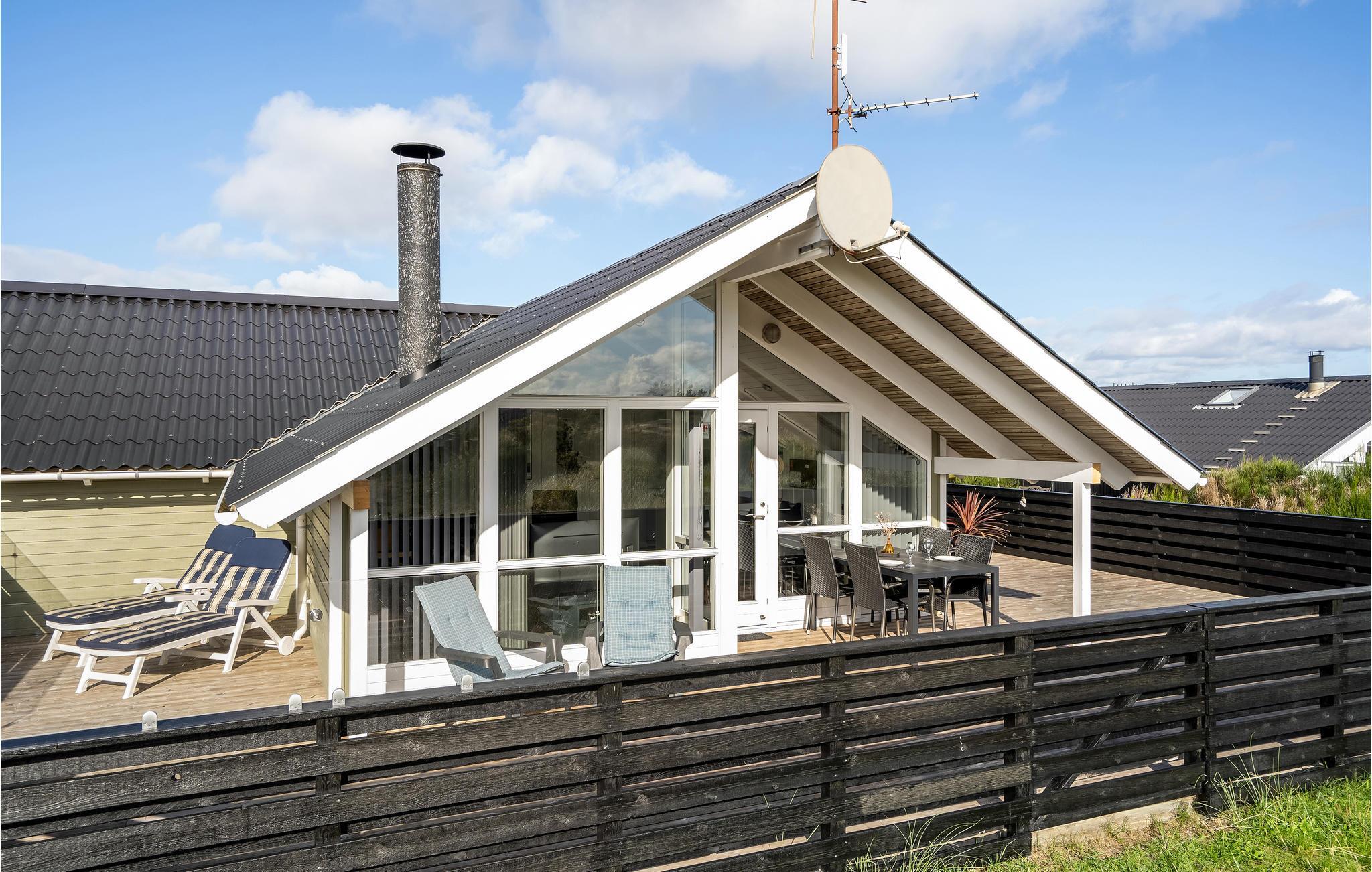 Charmerende feriehus nær Vesterhavet med terrasse, brændeovn og moderne faciliteter for en afslappende ferie.