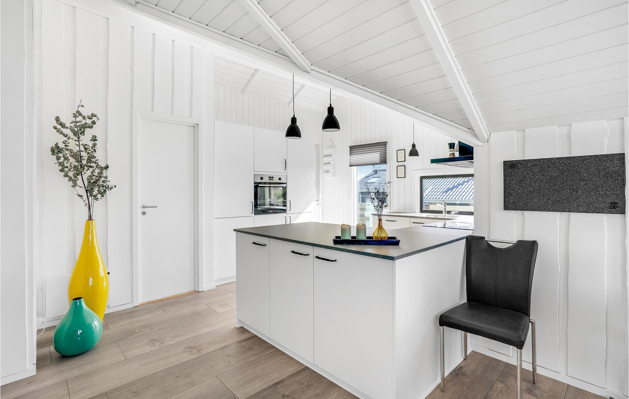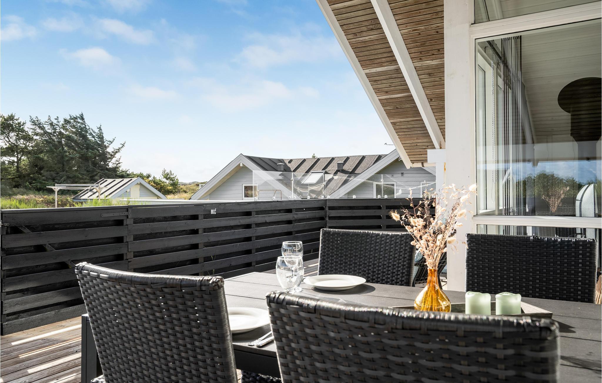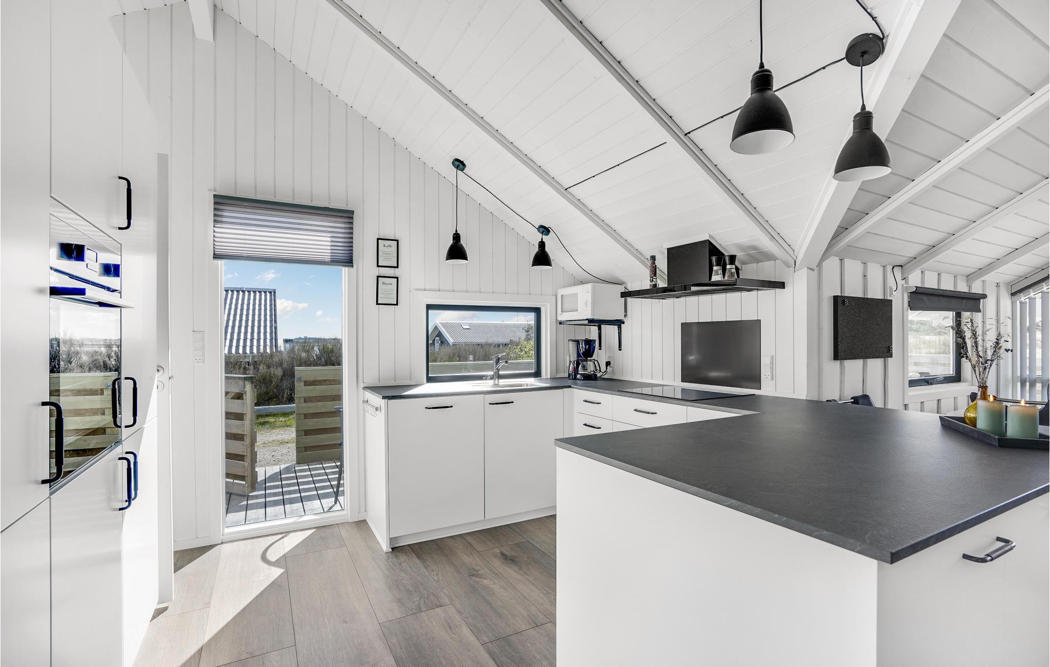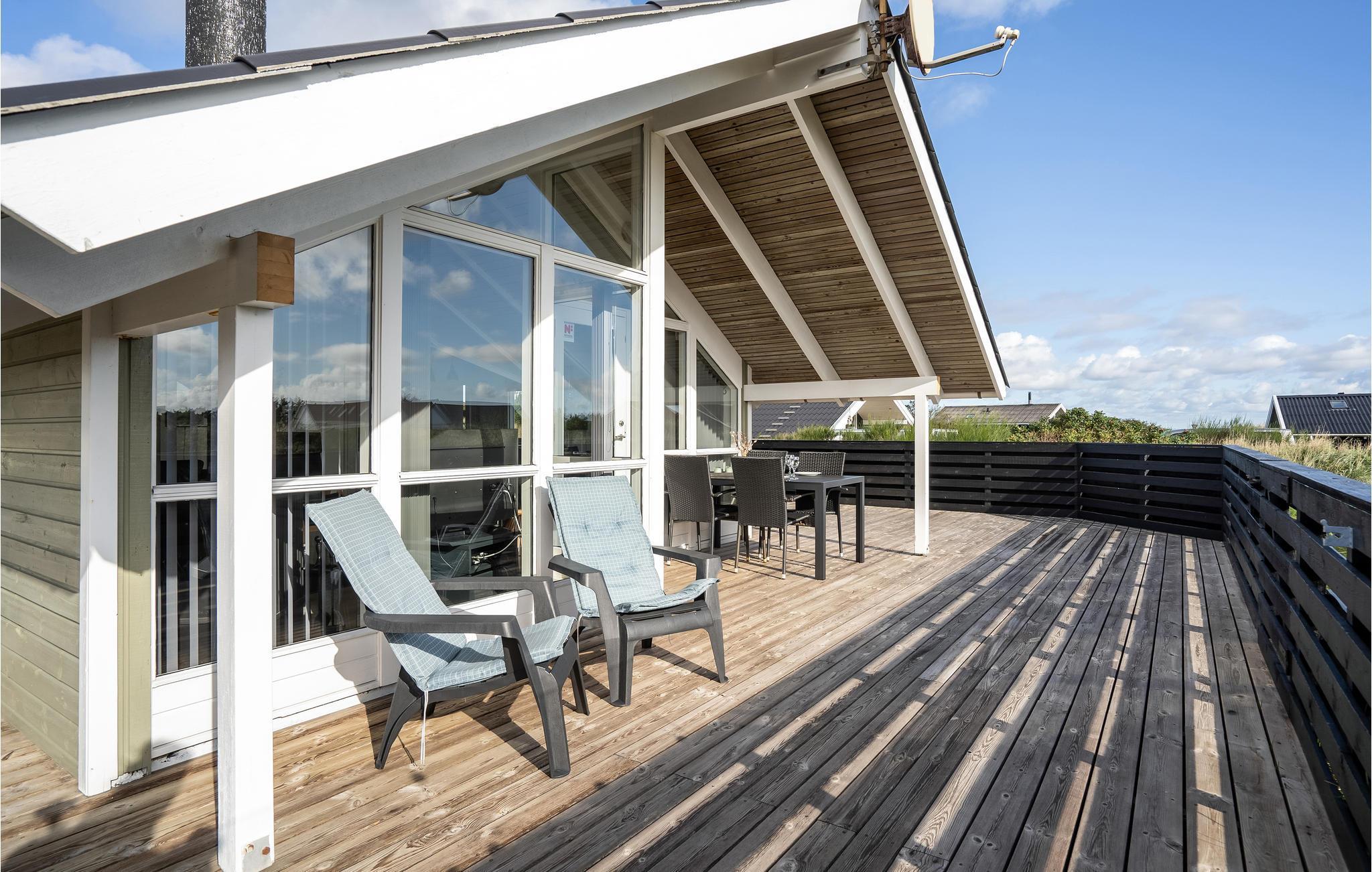 Charmerende feriehus nær Vesterhavet med terrasse, brændeovn og moderne faciliteter for en afslappende ferie.