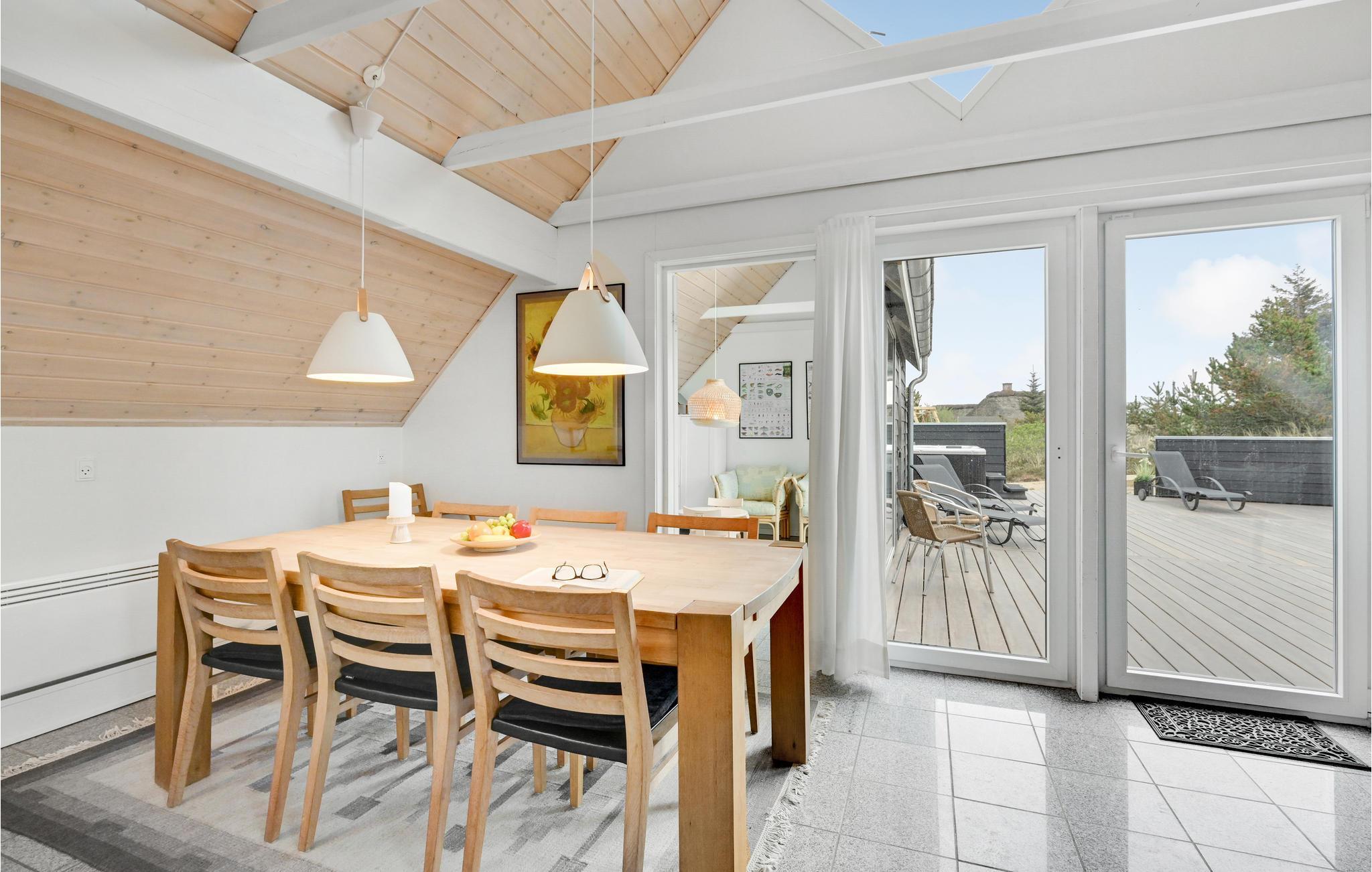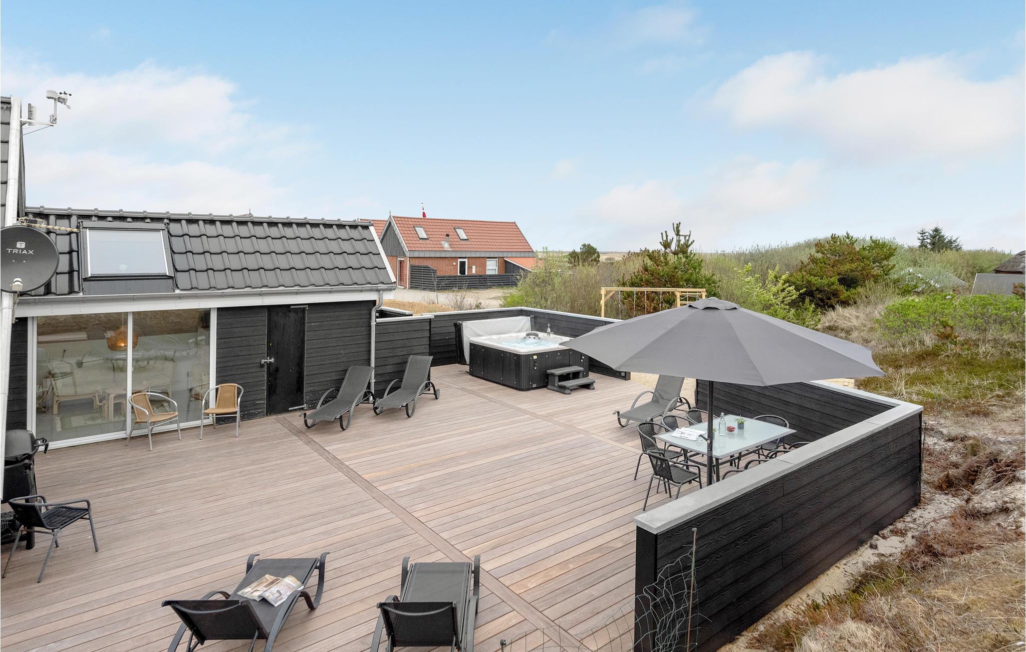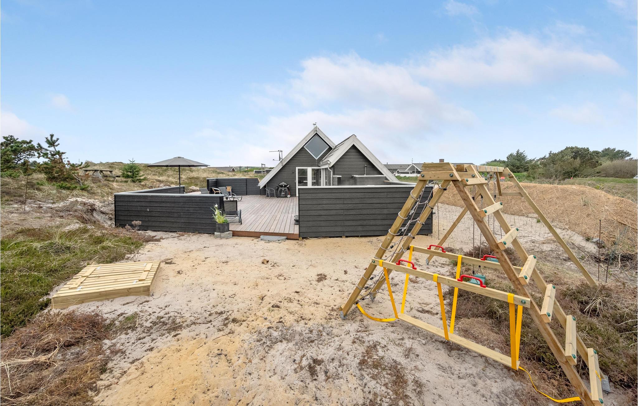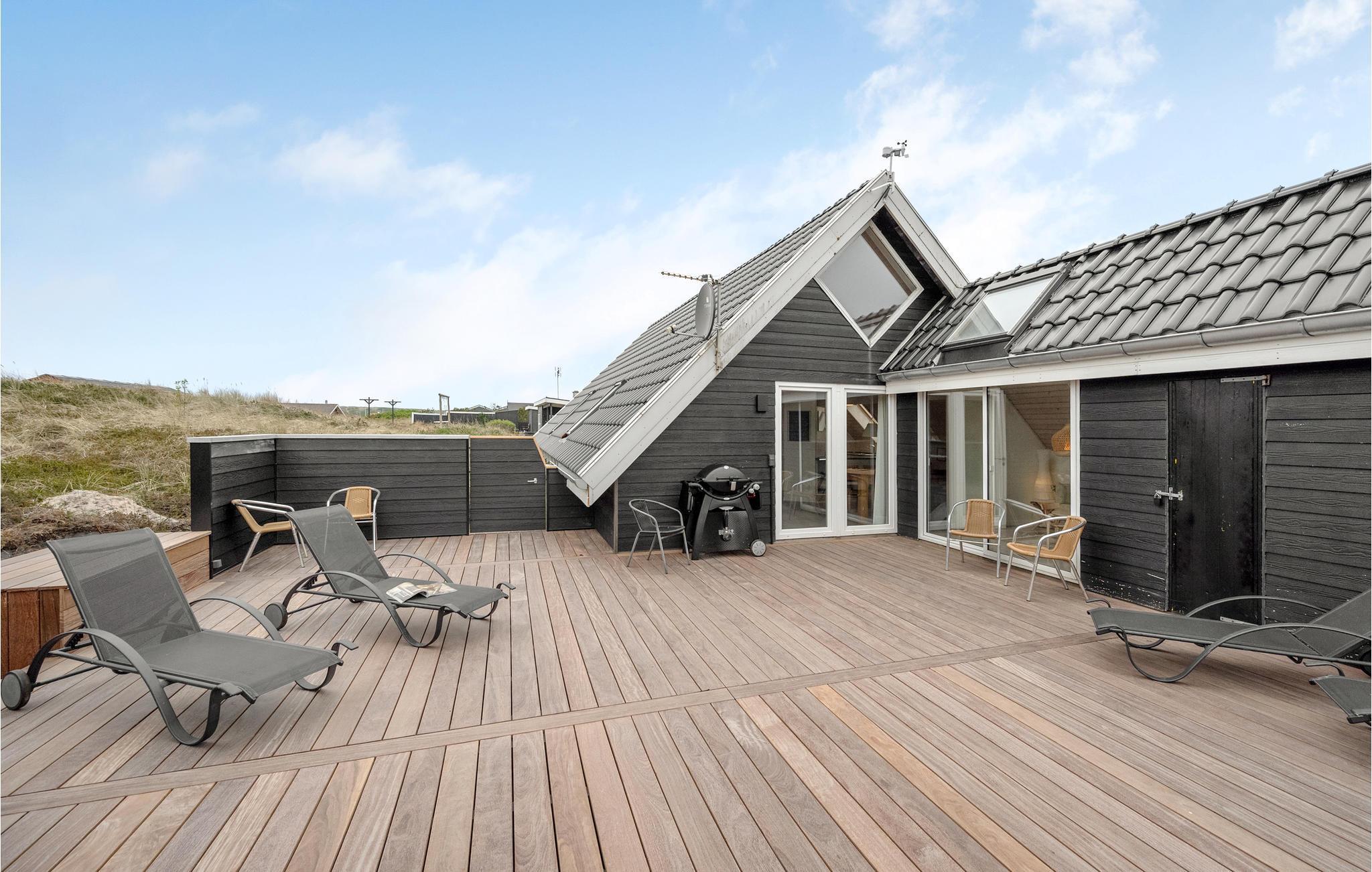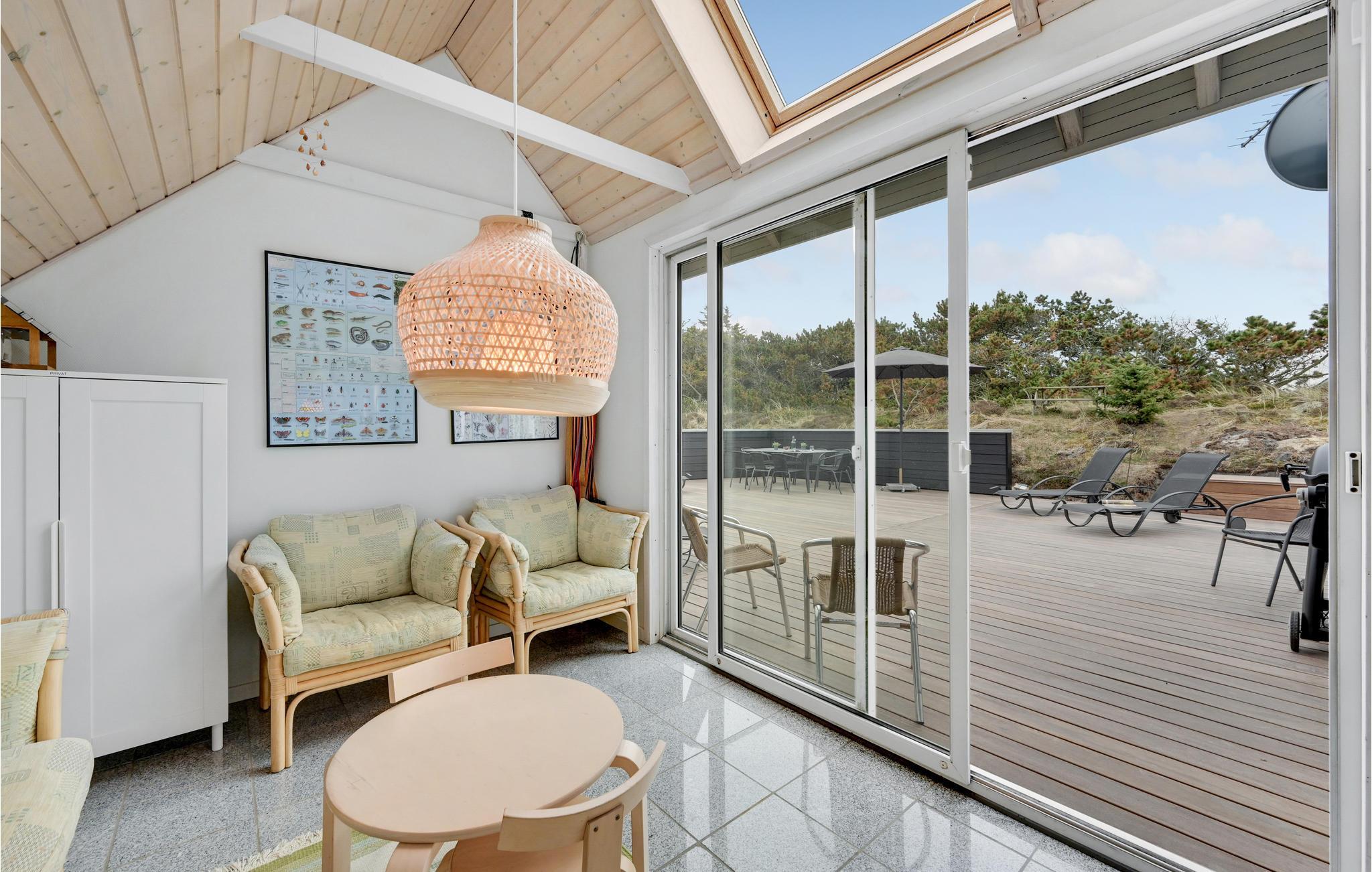 Hyggeligt og energivenligt feriehus beliggende kun 550 m fra stranden og det skønne Vesterhav. Huset har træloft til kip i køkken, stue og på hemsen. Mod sydøst er der en delvist afskærmet terrasse, hvor der er et dejligt udsyn til den kuperede, lyngklædte naturgrund. Terrassen støder direkte op til den meget anvendelige udestue, hvor der er et godt lysindfald. Besøg også fiskerihavnen i Hvide Sande, hvor I finder flere gode butikker og fiskerestauranter. Området byder på mange aktiviteter bl.a lystfiskeri, windsurfing og vandski (på en af Danmarks få kabeltrukne baner). Til sidst men ikke mindst, indbyder den dejlige natur til lange traveture ved stranden eller i det uberørte hedelandskab.