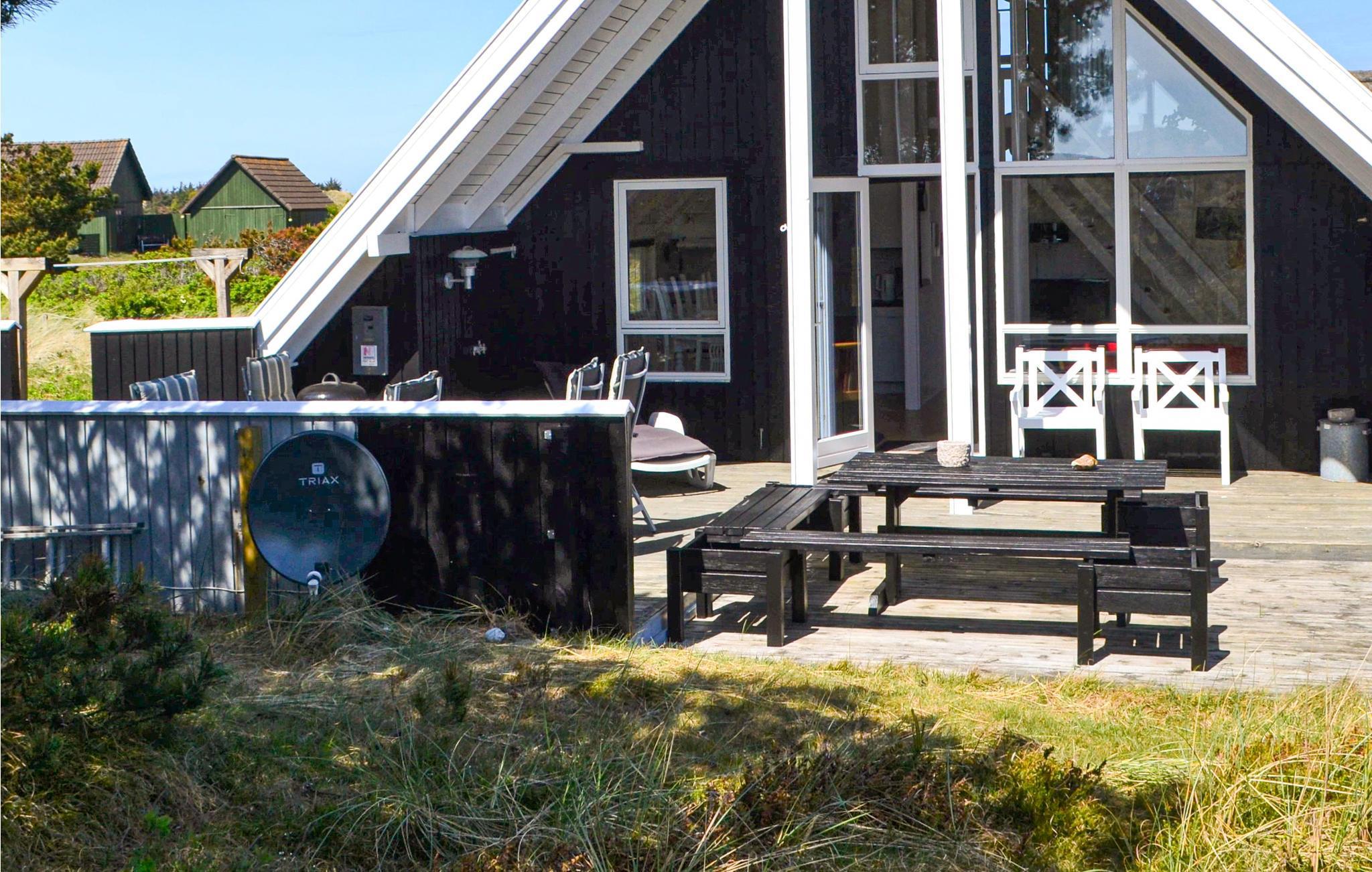 Drømmer I om ægte vestkyststemning, er dette sommerhus det perfekte valg. Her får I nemlig mulighed for at nyde et lyst og hyggeligt hus på naturgrund. De autentiske omgivelser fremkalder følelsen af ro og fred, så snart I ankommer, og I har derfor mulighed for at nyde hinandens selskab. Terrassen er godt afskærmet, så I ofte kan finde læ fra den velkendte vesterhavsvind. 100 m nord for huset ligger et stort fredet klitområde, som virkelig er velegnet til vandreture. Når dagens aktiviteter skal fordøjes, kan I slappe af foran den hyggelige brændeovn, som giver stemning i hele husets køkkenalrum, hvor familien kan samles om måltider og hyggelige aktiviteter.