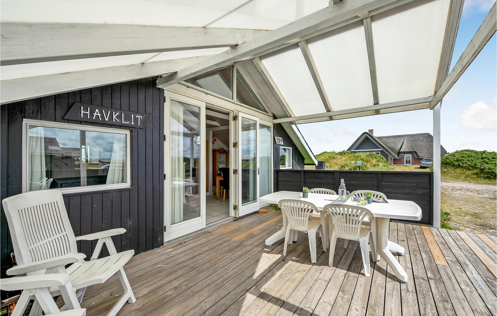 Dette lyst og venligt indrettede feriehus ligger kun få minutters gang fra Vesterhavet, de høje klitter og den lange brede sandstrand, som året rundt indbyder til dejlige oplevelser for hele familien. Det flotte køkken er integreret i stuen, hvorfra der er direkte udgang til en stor, lukket og delvist overdækket terrasse med masser af plads til hele familien. Der er ikke langt til Ringkøbing Fjord som byder på både spændende naturoplevelser og et utal af vandaktiviteter, blandt andet et af Danmarks mest populære windsurfing områder. I Hvide Sande finder I desuden et stort udbud af butikker, restauranter og selvfølgelig den aktive fiskerihavn.