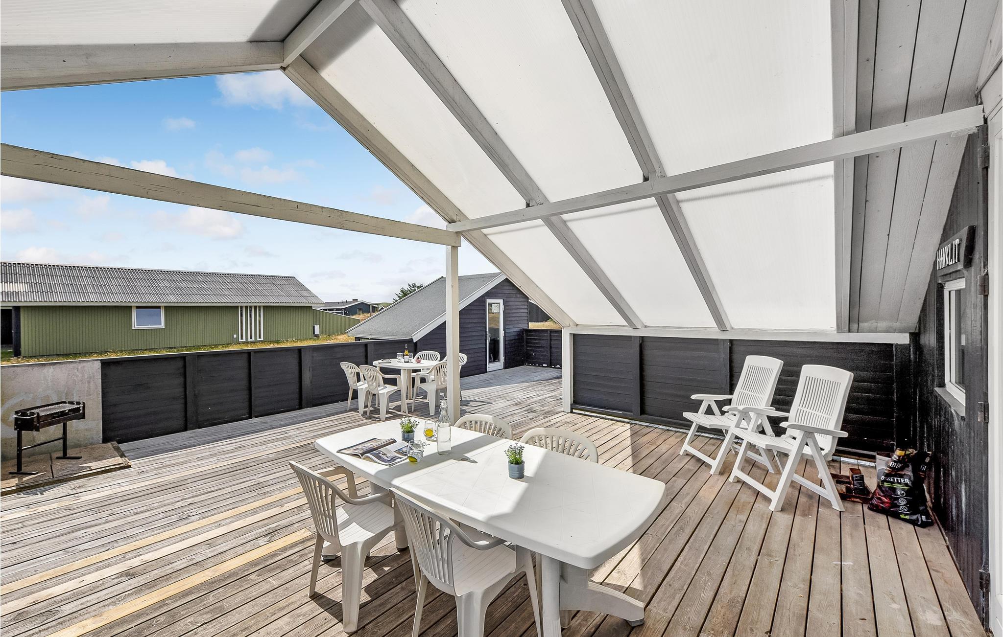 Lyst og venligt feriehus tæt på Vesterhavet med stor terrasse og familievenlige faciliteter.