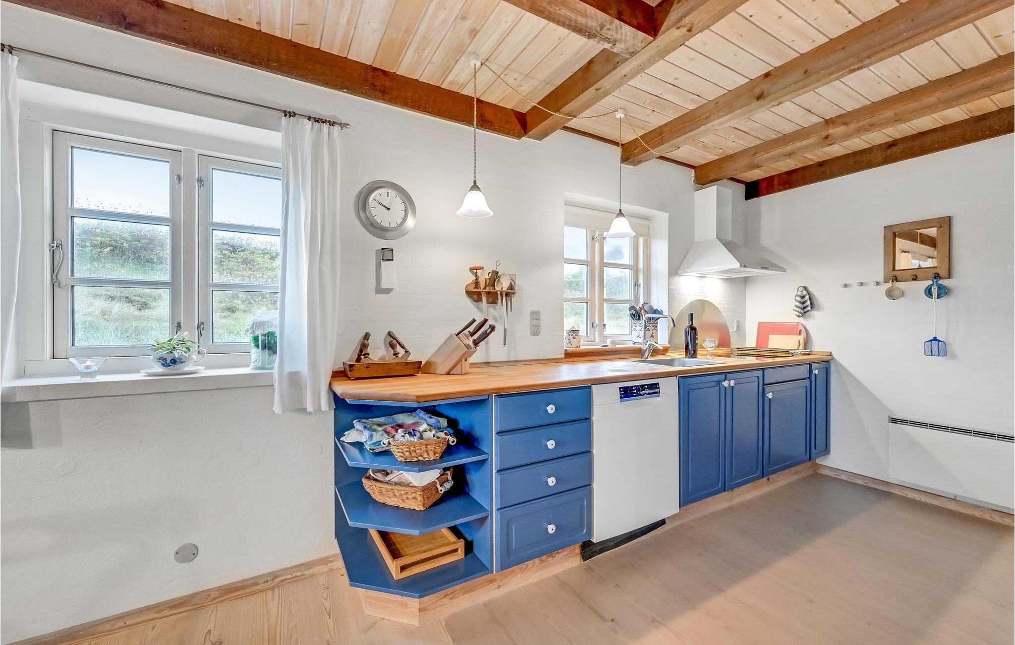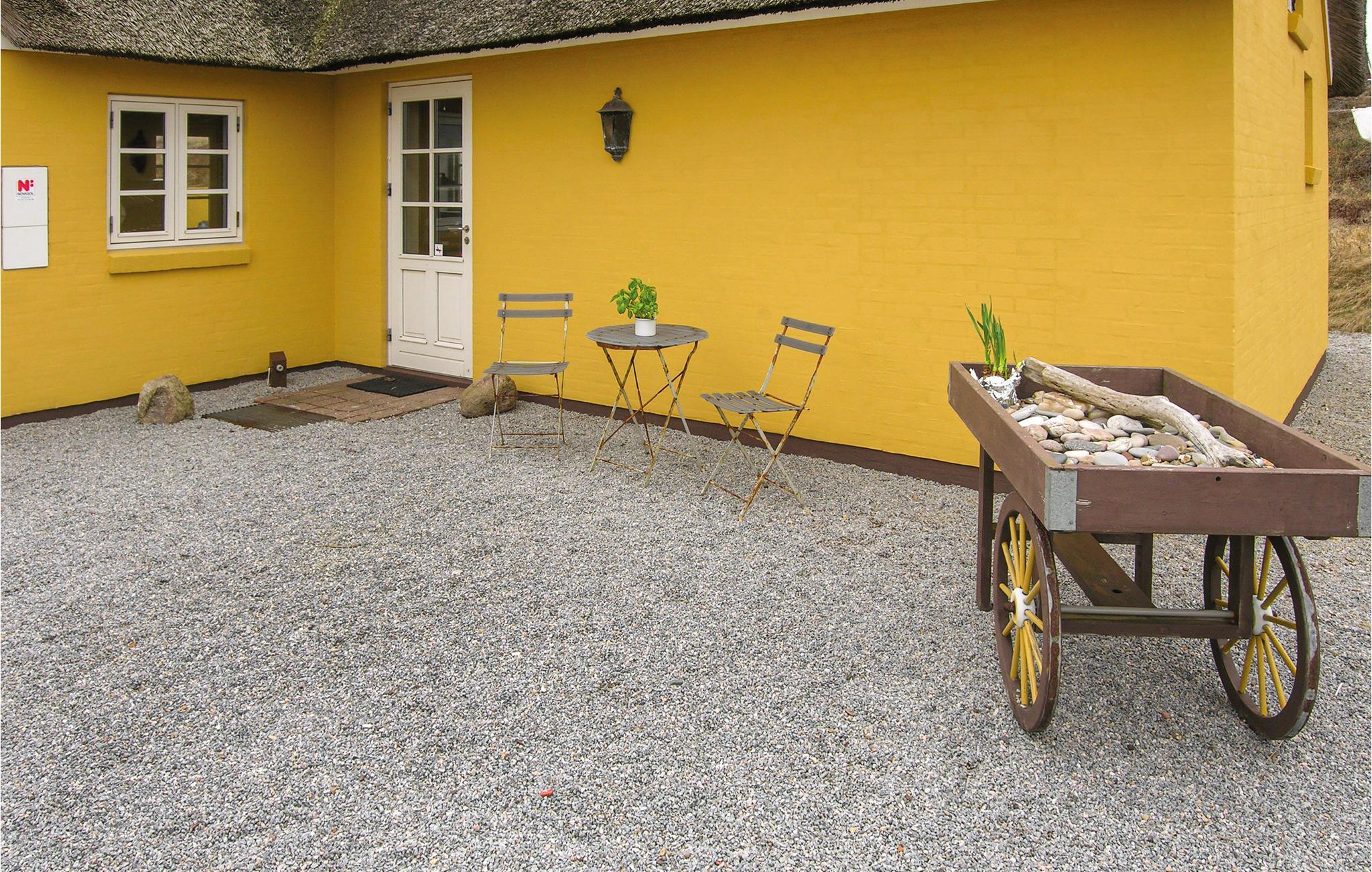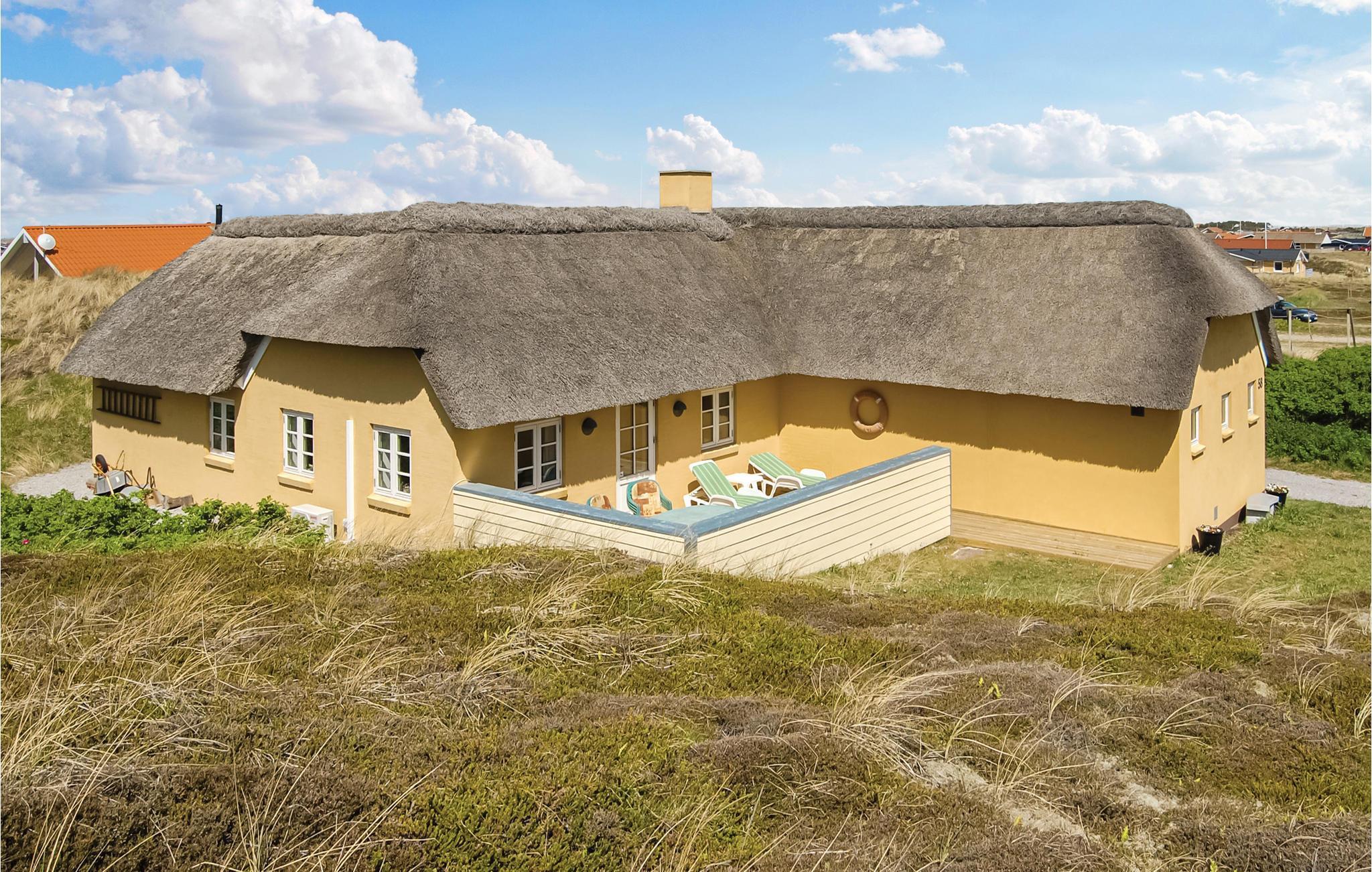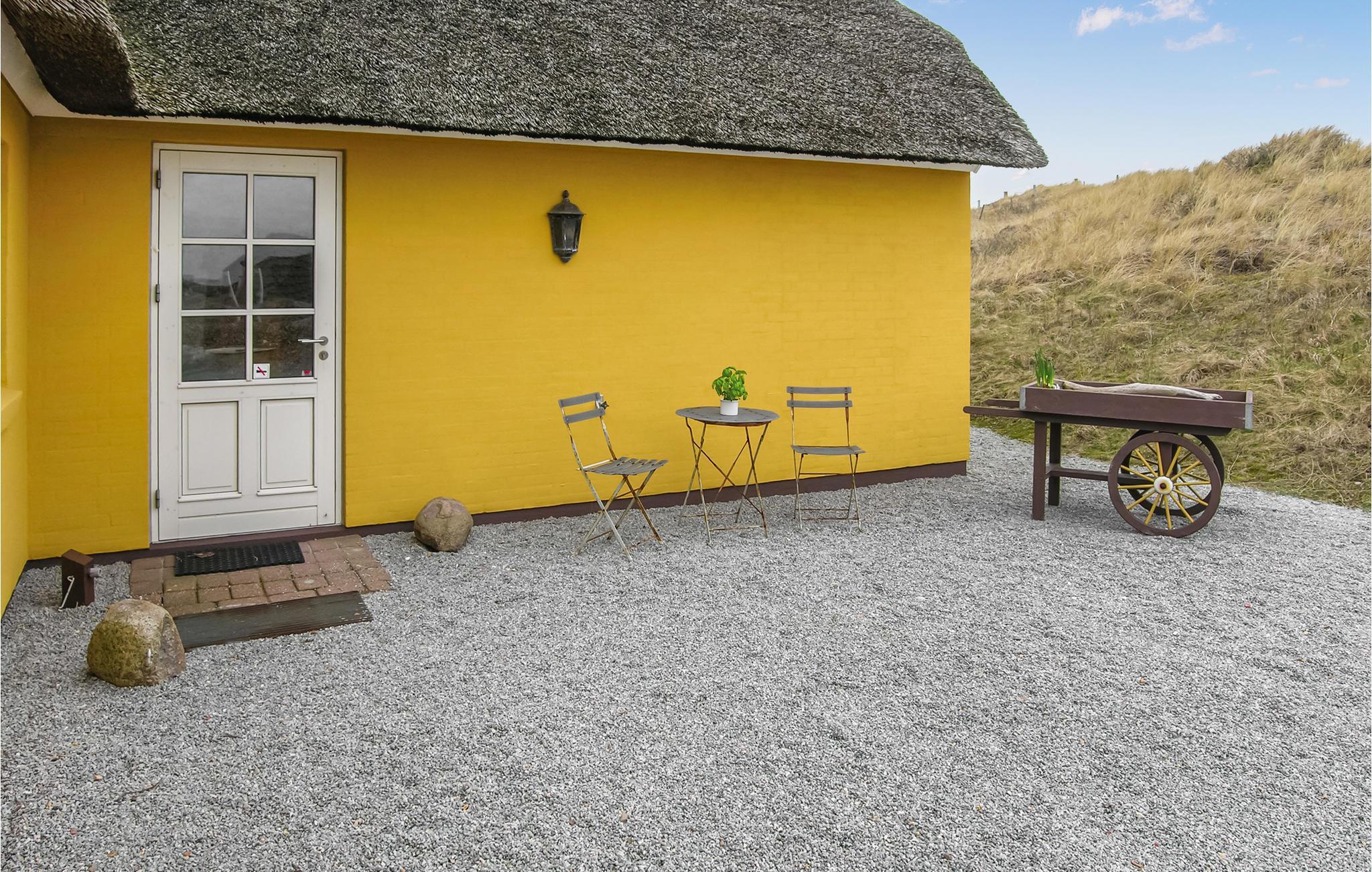 Velkommen til dette utroligt flotte, stråtækte murstenshus, der ligger i dejlige omgivelser og beskyttet af to klitter. Indretningen fremstår moderne, men dog holdt i den gamle stil for at bevare husets særpræg. Alt emmer af kvalitet og charme med træ- og klinkegulve, varme trælofter og et komfortabelt møblement, der gør det nemt at sænke skuldrene og slappe af med det samme, I ankommer. Nyd godt af husets moderne faciliteter og tilbered familiens livretter i det veludstyrede køkken, mens børnene hygger sig i aktivitetsrummet bordfodbold og et tv.