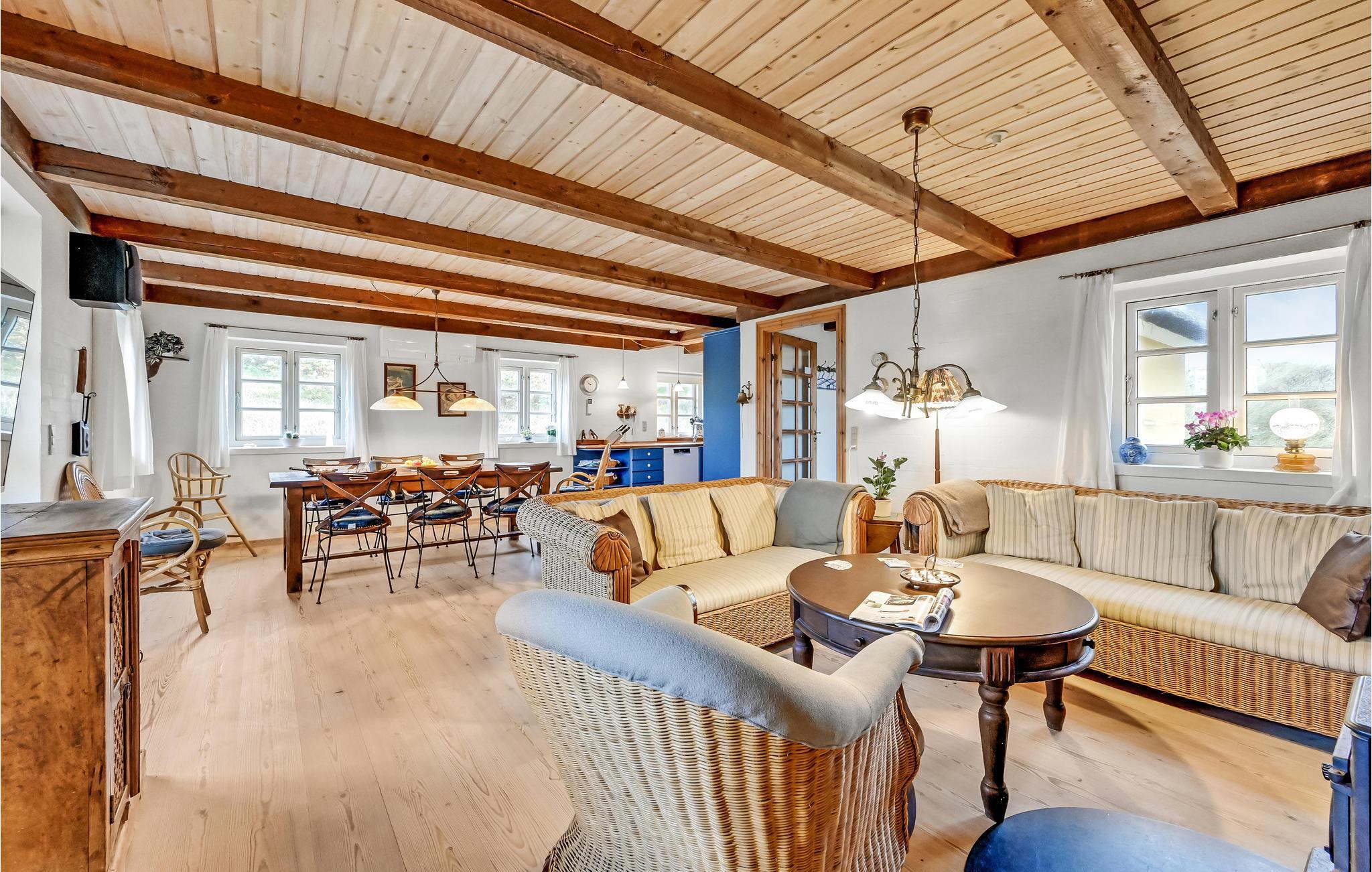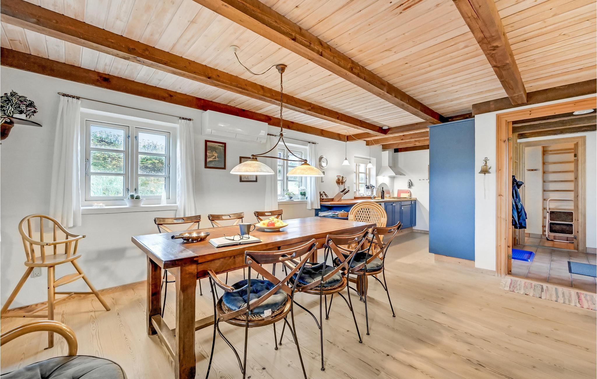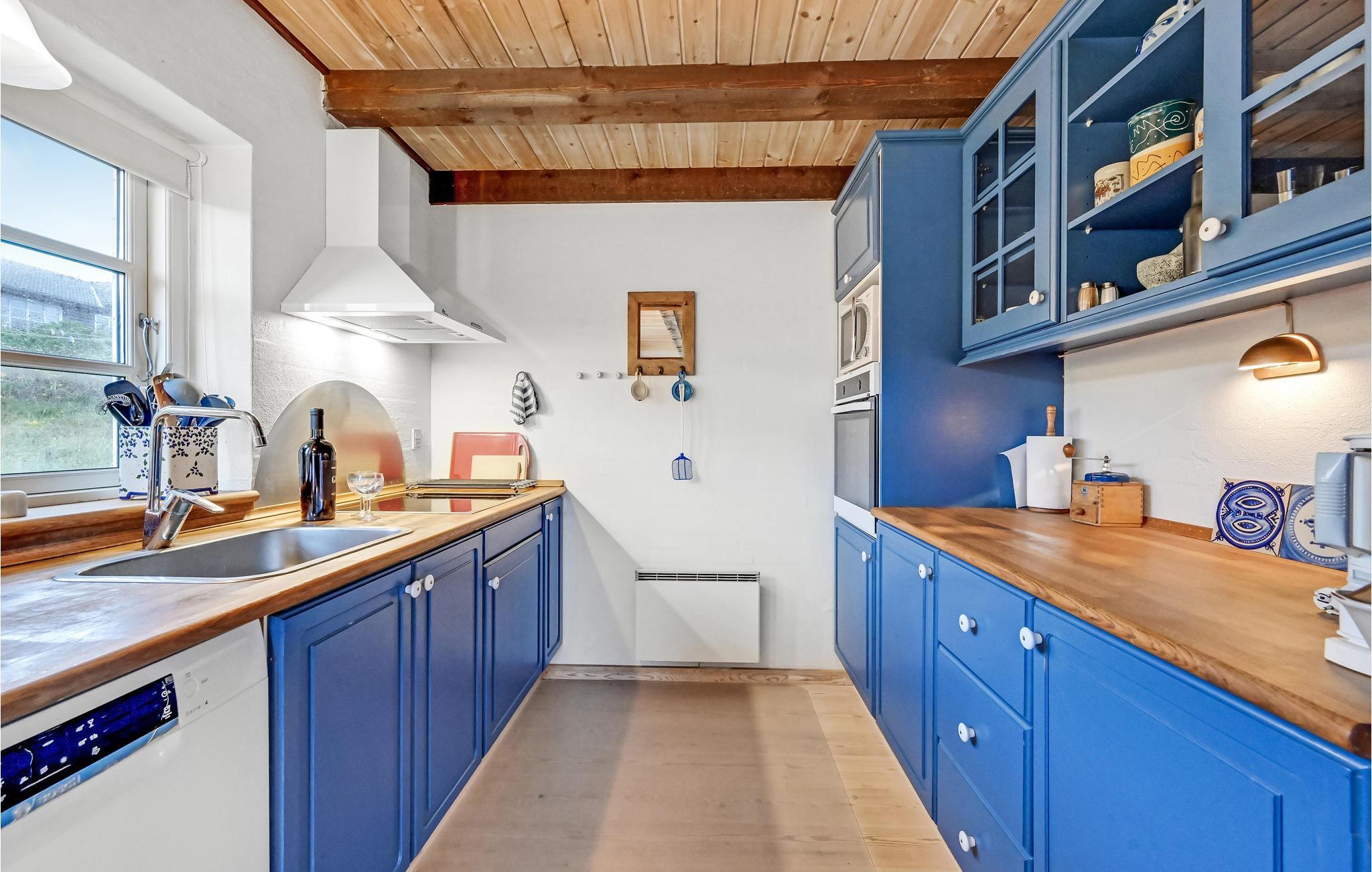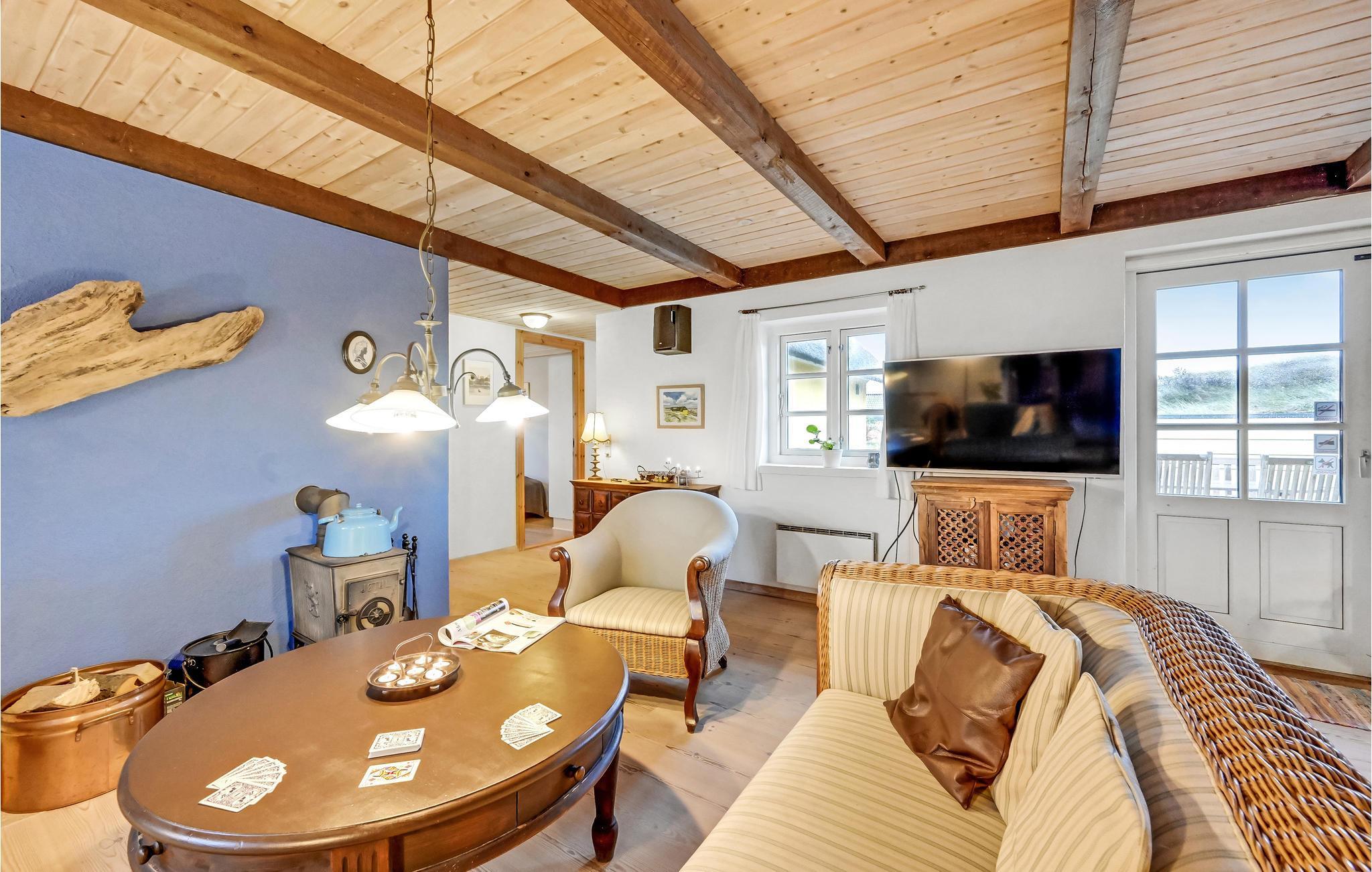 Velkommen til dette utroligt flotte, stråtækte murstenshus, der ligger i dejlige omgivelser og beskyttet af to klitter. Indretningen fremstår moderne, men dog holdt i den gamle stil for at bevare husets særpræg. Alt emmer af kvalitet og charme med træ- og klinkegulve, varme trælofter og et komfortabelt møblement, der gør det nemt at sænke skuldrene og slappe af med det samme, I ankommer. Nyd godt af husets moderne faciliteter og tilbered familiens livretter i det veludstyrede køkken, mens børnene hygger sig i aktivitetsrummet bordfodbold og et tv.