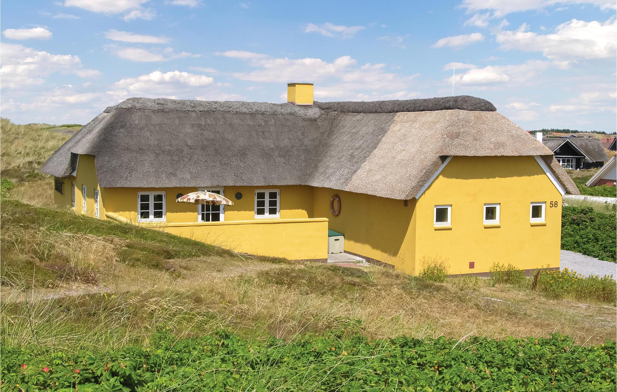 Oplev dette charmerende stråtækte hus ved Vesterhavet med moderne faciliteter og aktivitetsrum til børn.
