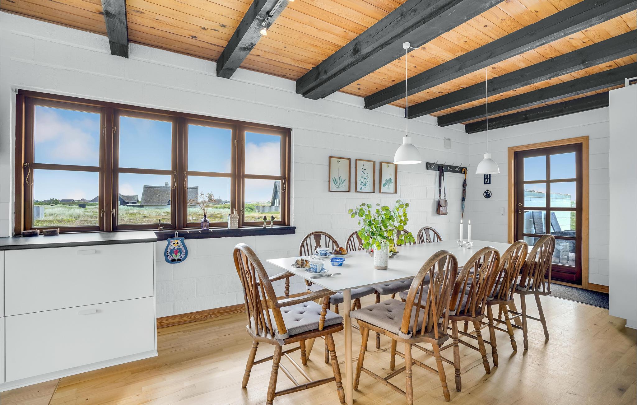 Dejligt stort feriehus med en enestående panoramaudsigt over det fredede klit og hedelandskab. Fra huset er der kort afstand til en forfriskende dukkert i Vesterhavets blå bølger. Midt i området ligger Hvide Sande, hvor I finder den eneste sluse i Ringkøbing Fjord. Hvide Sande er en rigtig ferieby med endeløse hvide sandstrande og dejlig feriestemning, specielt i sommerhalvåret. I Hvide Sande er der rigtig gode muligheder for fiskeri, windsurfing, vandre- og cykelture.