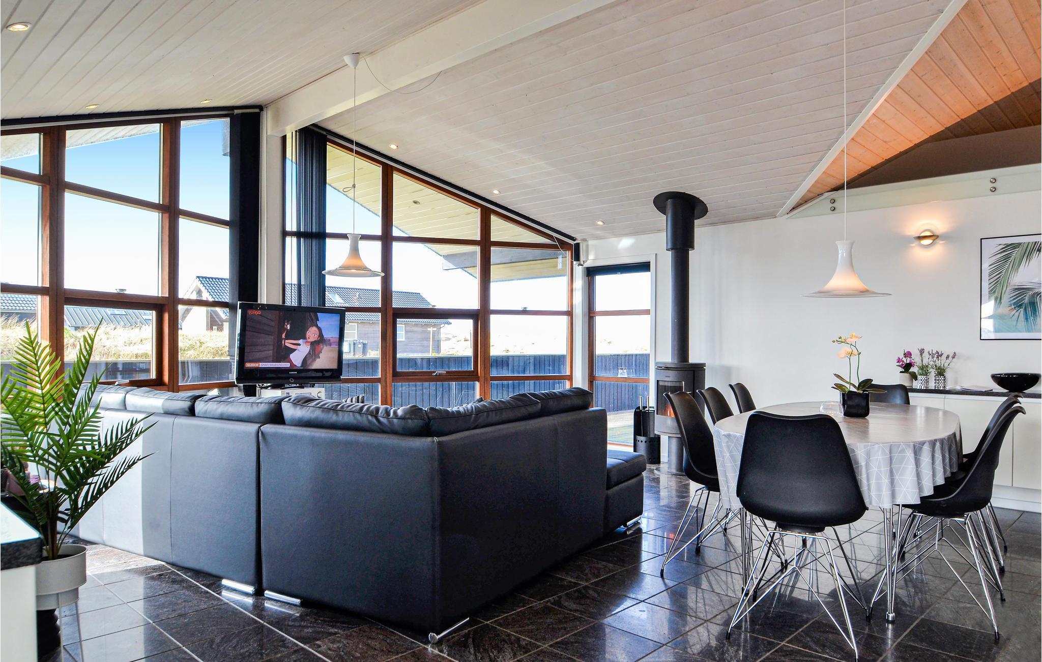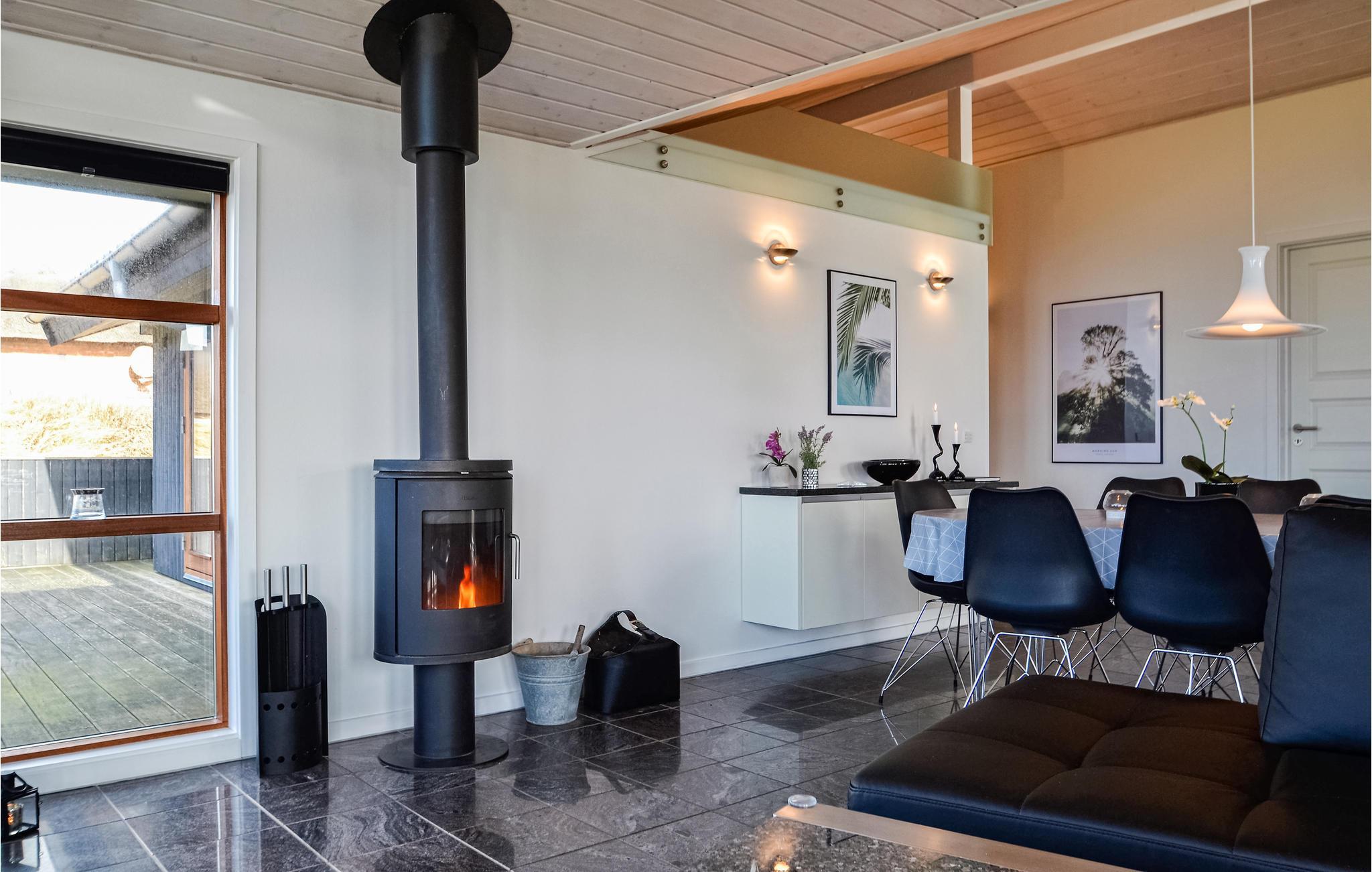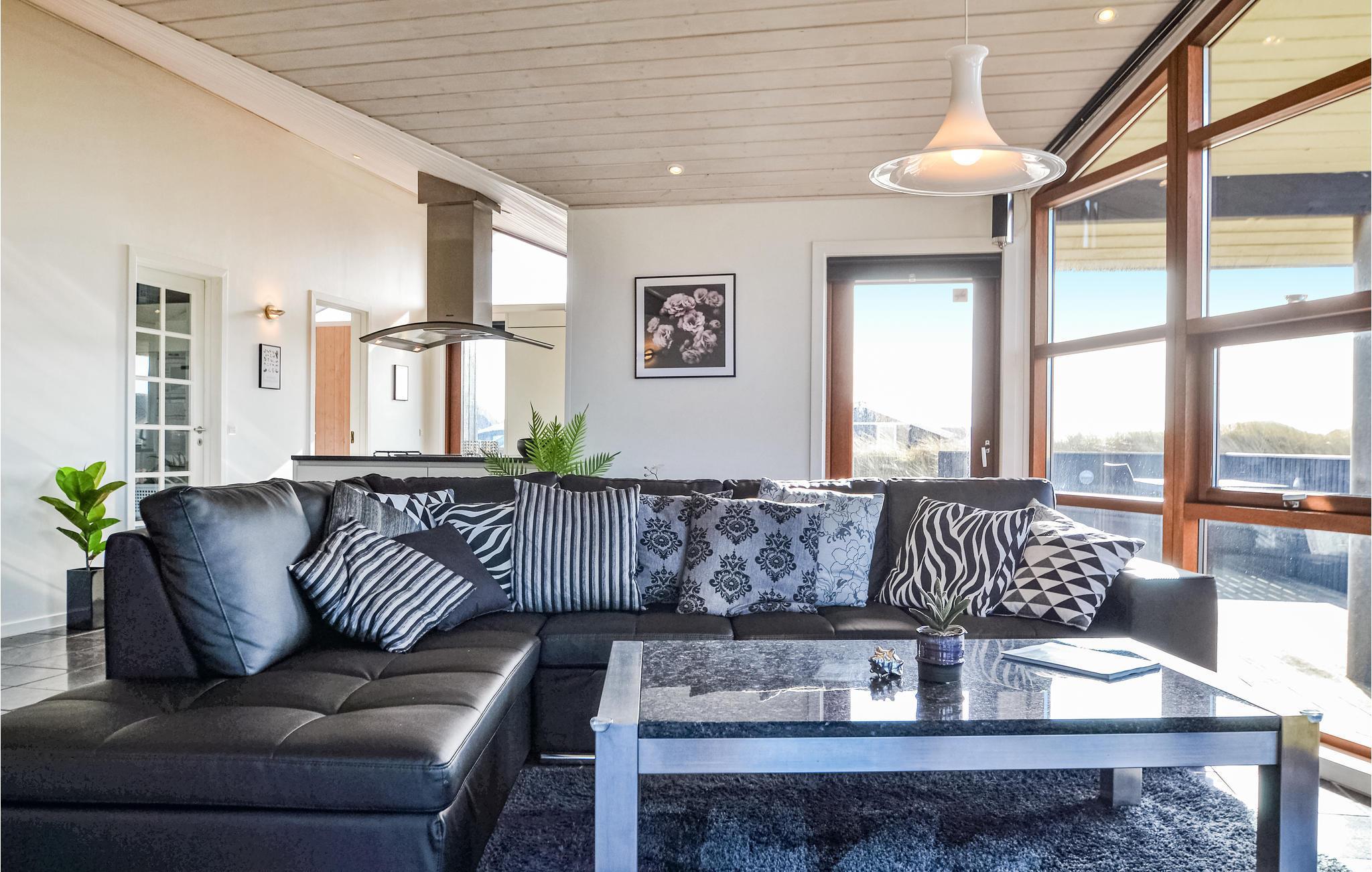 Huset er spændende og anderledes indrettet med vægt på kvalitet og detaljer. Der er plads til 8 personer fordelt i 4 soveværelser og to ekstra børn på hemsen. I hele huset er der lagt flotte klinkegulve med gulvvarme, og ellers opvarmes der med brændeovn eller energivenlig varmepumpe. Fra både husets stue og køkken er der en fantastisk udsigt mod klitterne i vest, og til det fredede klitområde nord for huset - ren afslapning og nydelse for hele familien.