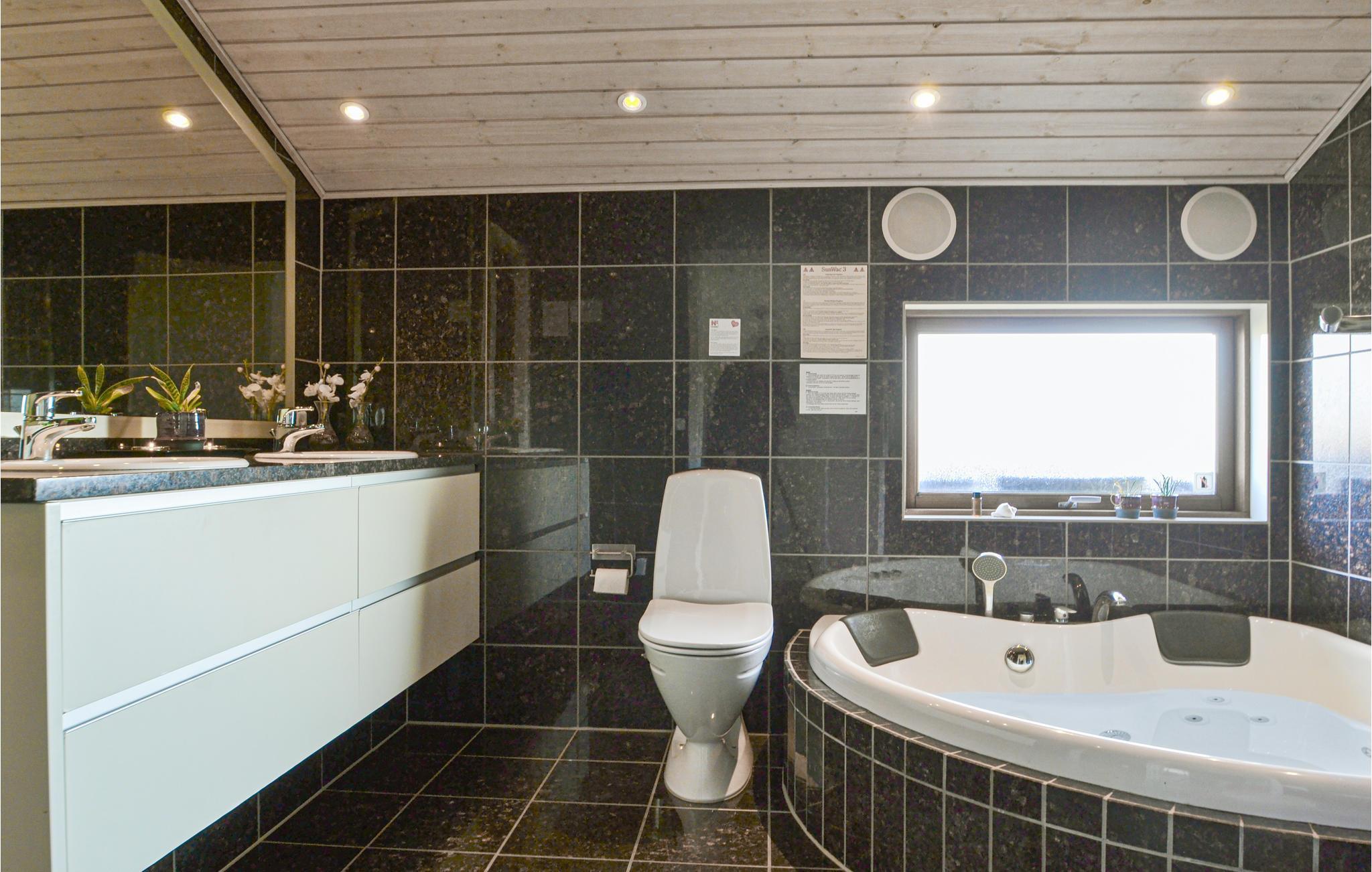 I det store eksklusive badeværelse med spabad og direkte adgang til sauna, er der installeret højtalere, så der kan nydes wellness med dejlig musik til. Udenfor strækker den store, lukkede terrasse sig hele vejen rundt om huset, hvoraf en lille del er overdækket; her er god mulighed for at finde en hyggekrog med læ, så terrasselivet kan opleves uanset årstid.