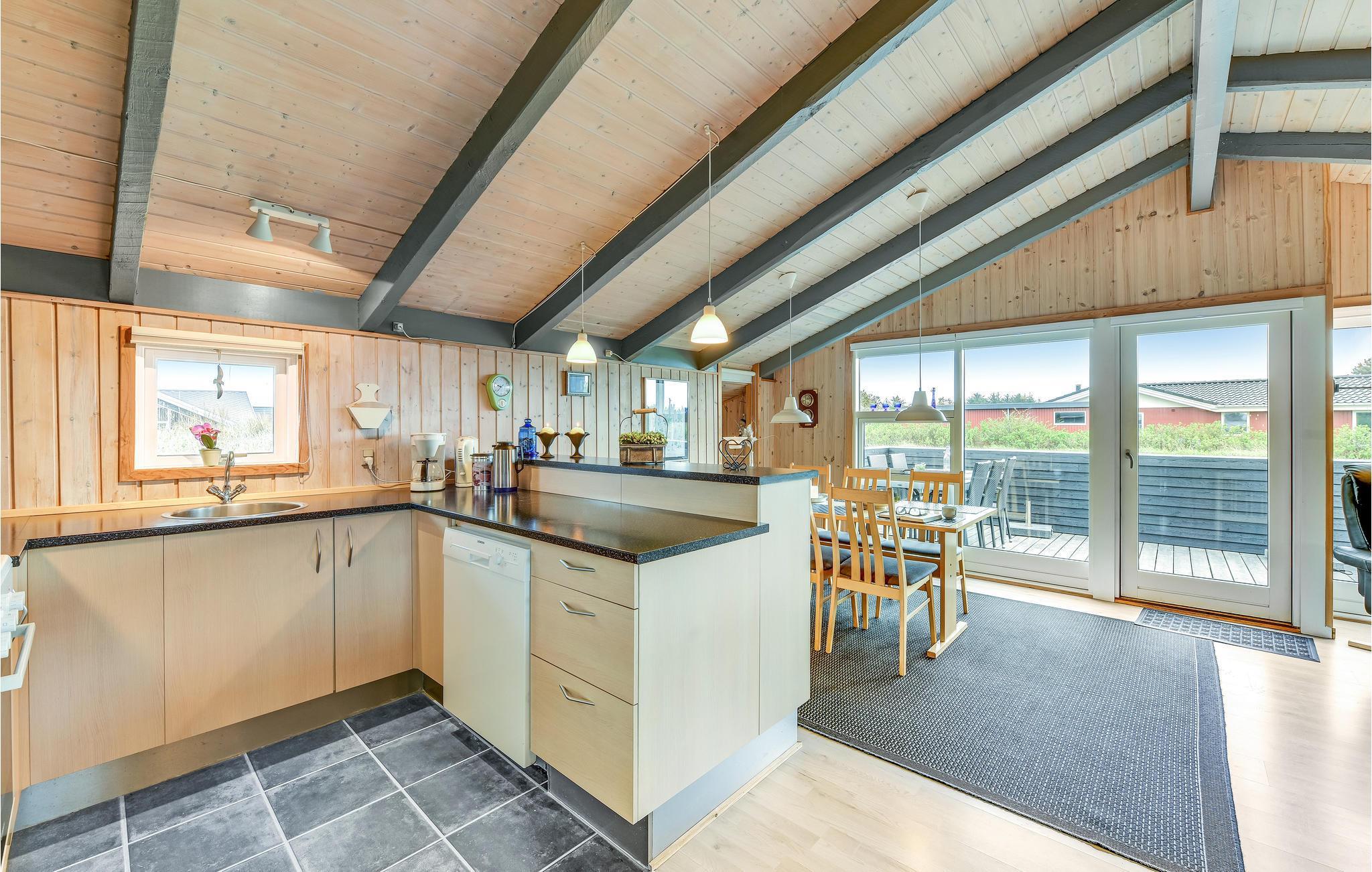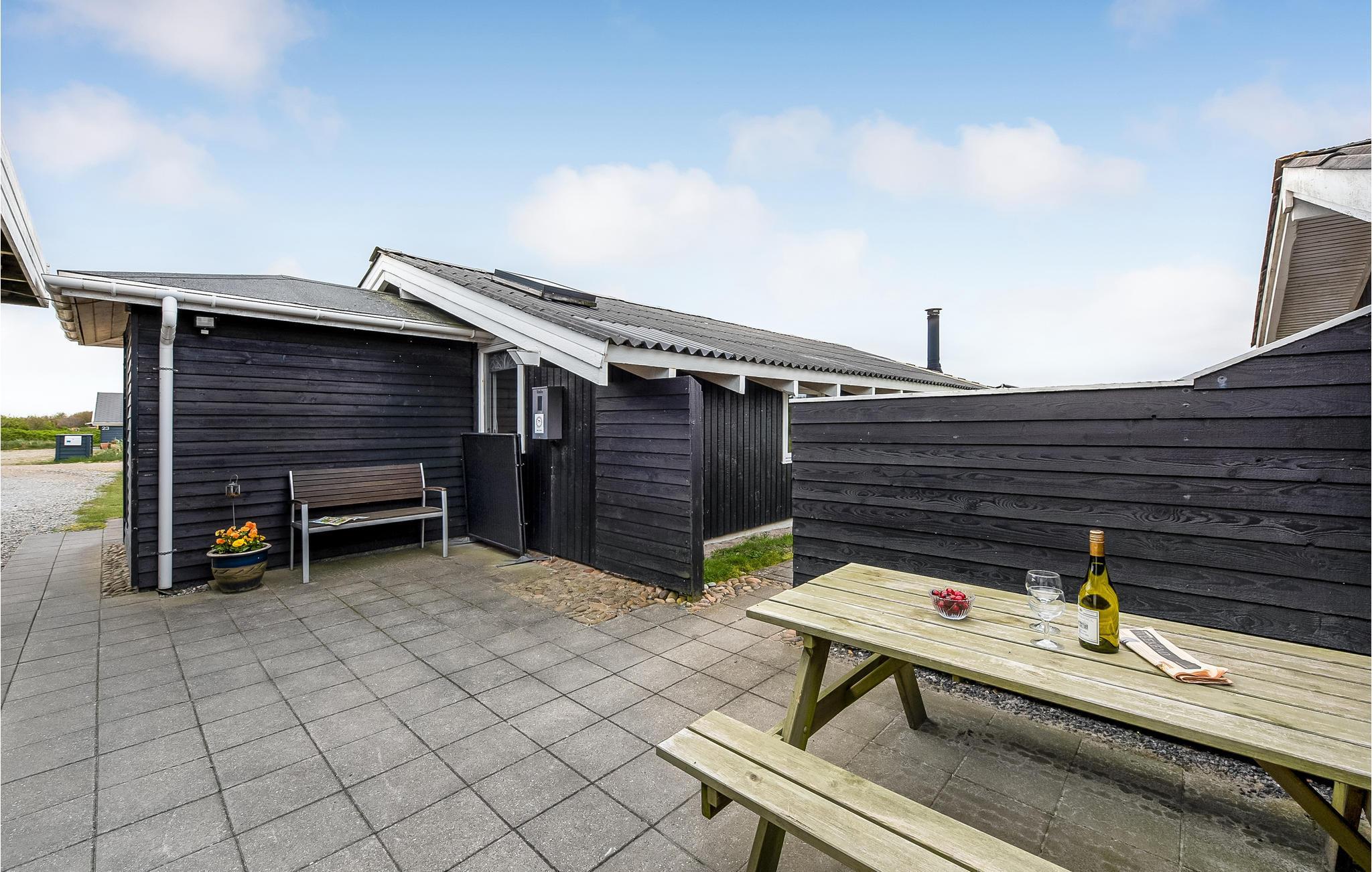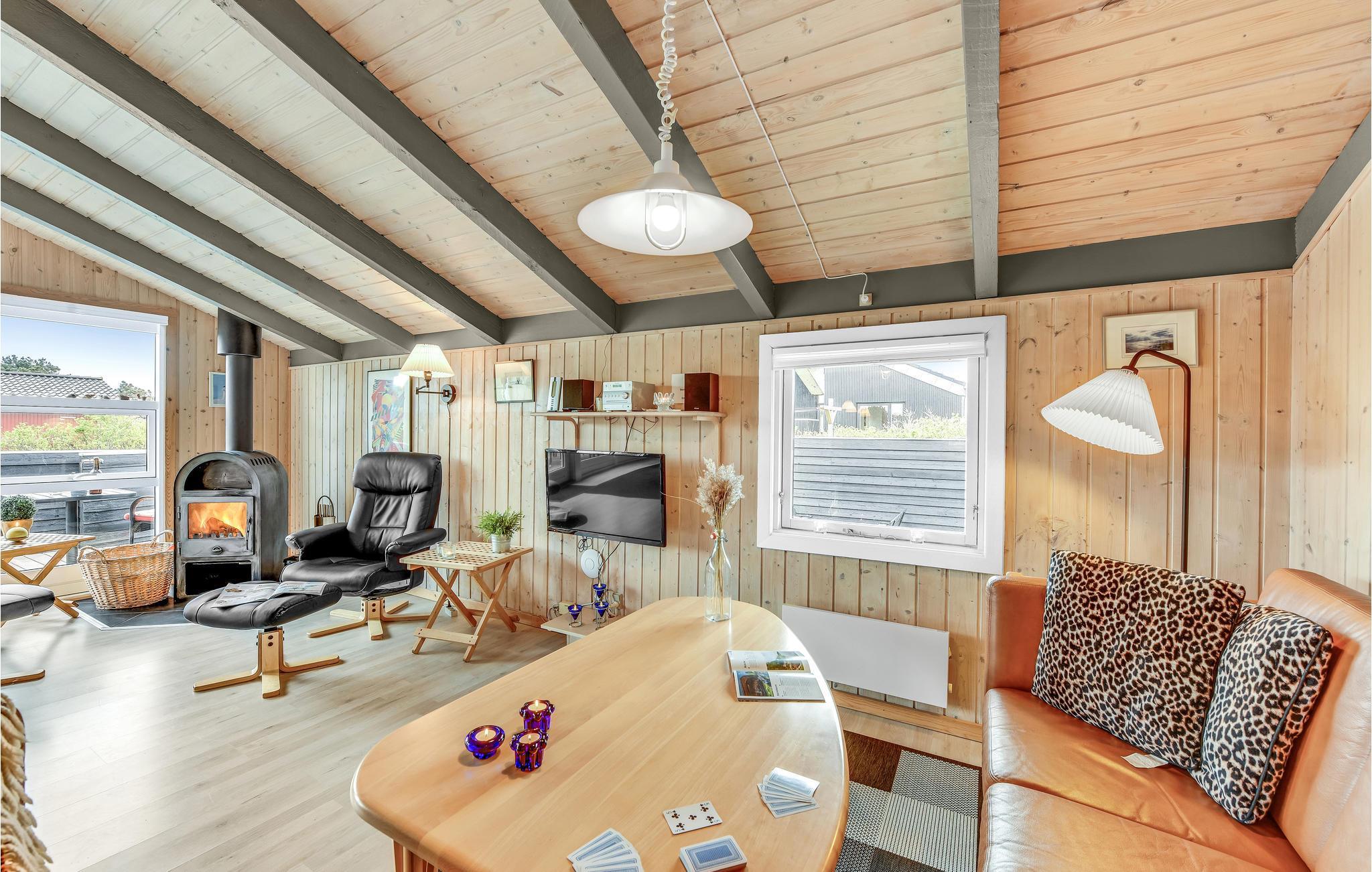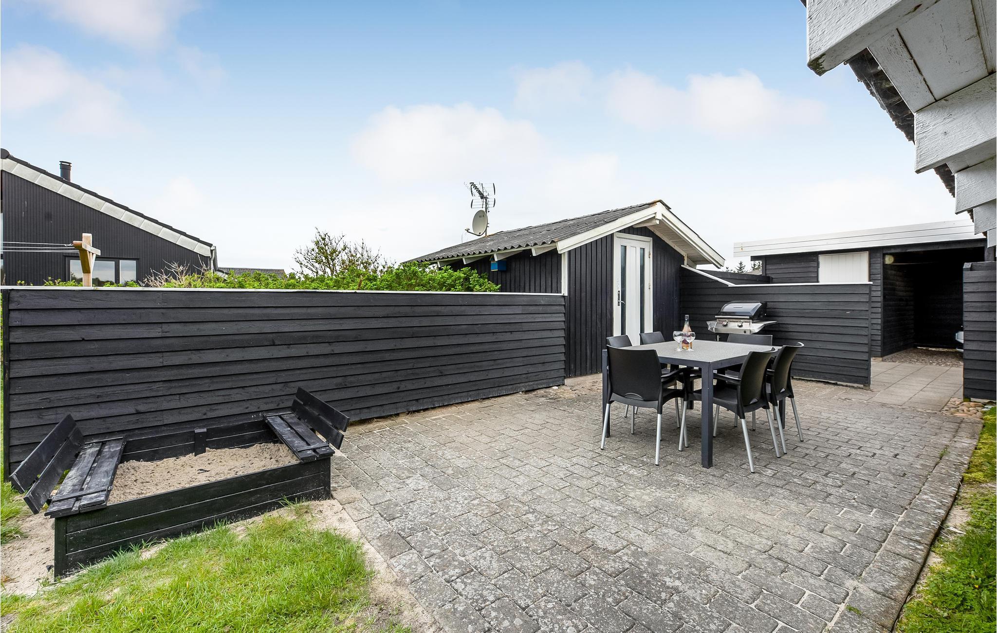 Charmerende træhus tæt på Vesterhavets hvide sandstrande i Hvide Sande med moderne faciliteter og åben terrasse.