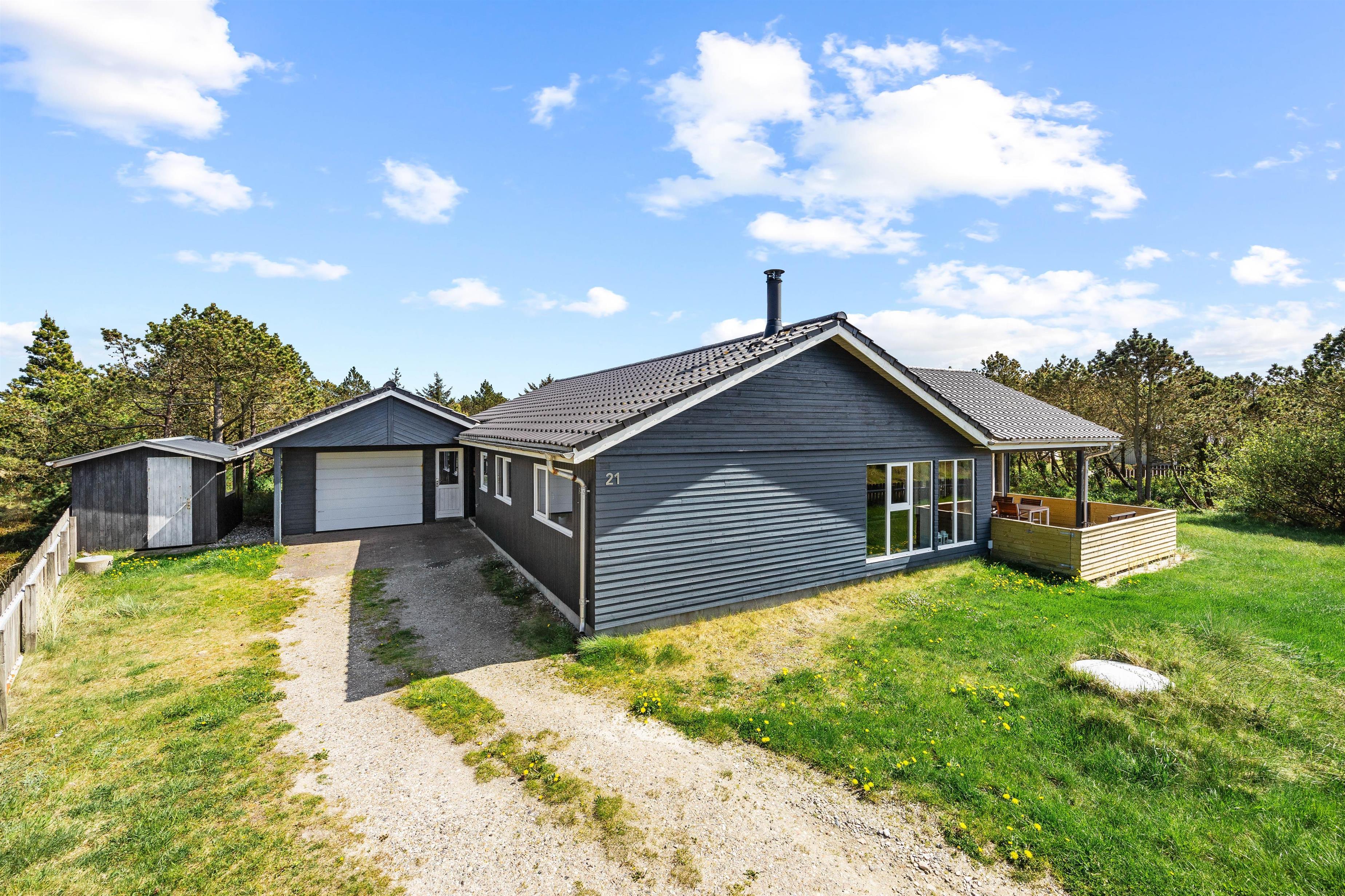 Bjerregårdsvej 21 er beliggende i et stort og roligt sommerhusområde. Herfra har I hverken langt til Vesterhavets salte bølger og sandstrande eller den lokale købmand. Købmanden sælger hver dag friskbagte rundstykker og nås let via de mange stier, der forbinder området – et naturskønt område perfekt til cykelture eller lange gåture.