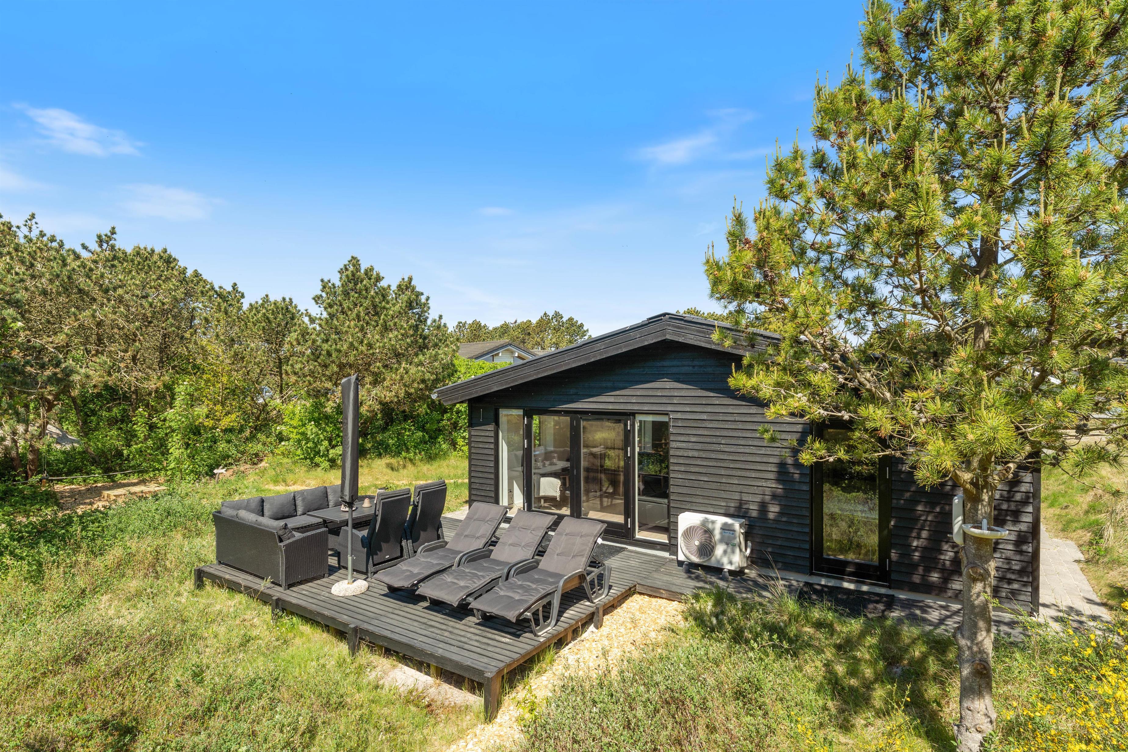 Det charmerende sommerhus på Bjerregårdsvej 69 er renoveret i 2023. Med beliggenhed på en afskærmet naturgrund og med under 1 km til Vesterhavet er sommerhuset ideelt til en familie eller et par venner, som ønsker at holde ferie sammen i rolige omgivelser. At være så tæt på havet, færdes ugeneret på naturgrunden eller hygge sig sammen omkring ilden i brændeovnen giver ægte feriestemning. Jeres hund er velkommen.