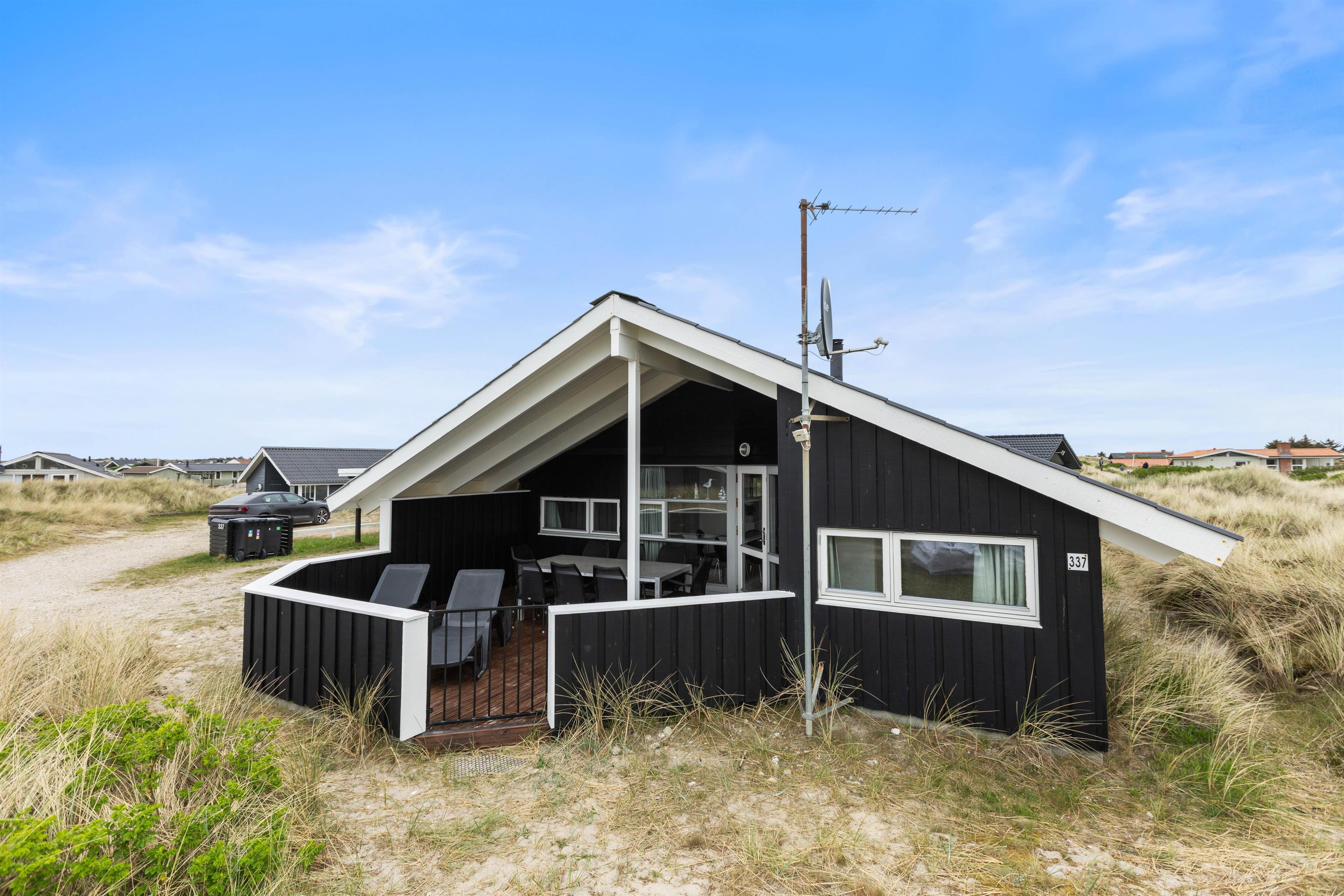 Bare 350 meter fra det brusende Vesterhav finder I dette dejlige sommerhus på Bjerregårdsvej 337. Her kan op til 6 personer og 1 hund nyde en afslappende ferie på en skøn naturgrund med god afstand til naboerne. Sommerhuset rummer både spabad og sauna, og på den overdækkede, lukkede terrasse har I en hyggelig krog, hvor I kan tilbringe de lyse sommeraftener med grill og udsigt til klitterne.