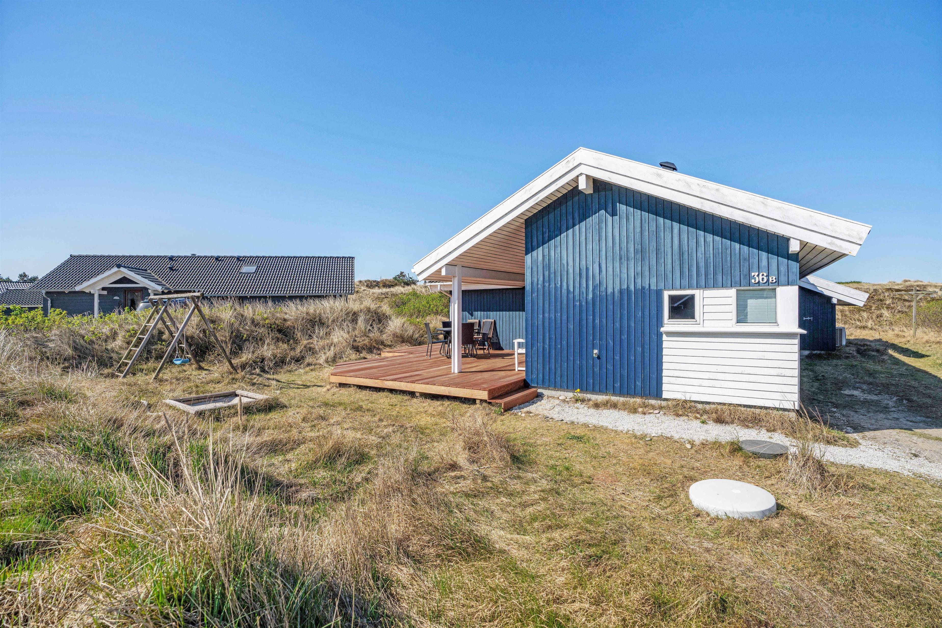Velkommen til Bjerregårdsvej 36 B - Et flot og velholdt sommerhus med dejlig fredelig beliggenhed på en naturgrund direkte ved klitterne. Sommerhuset har en dejlig fuldstændig uforstyrret og delvist overdækket terrasse og er placeret tæt op af en klit. Feriehuset er veludstyret med sauna, spa, opvaskemaskine og internet.