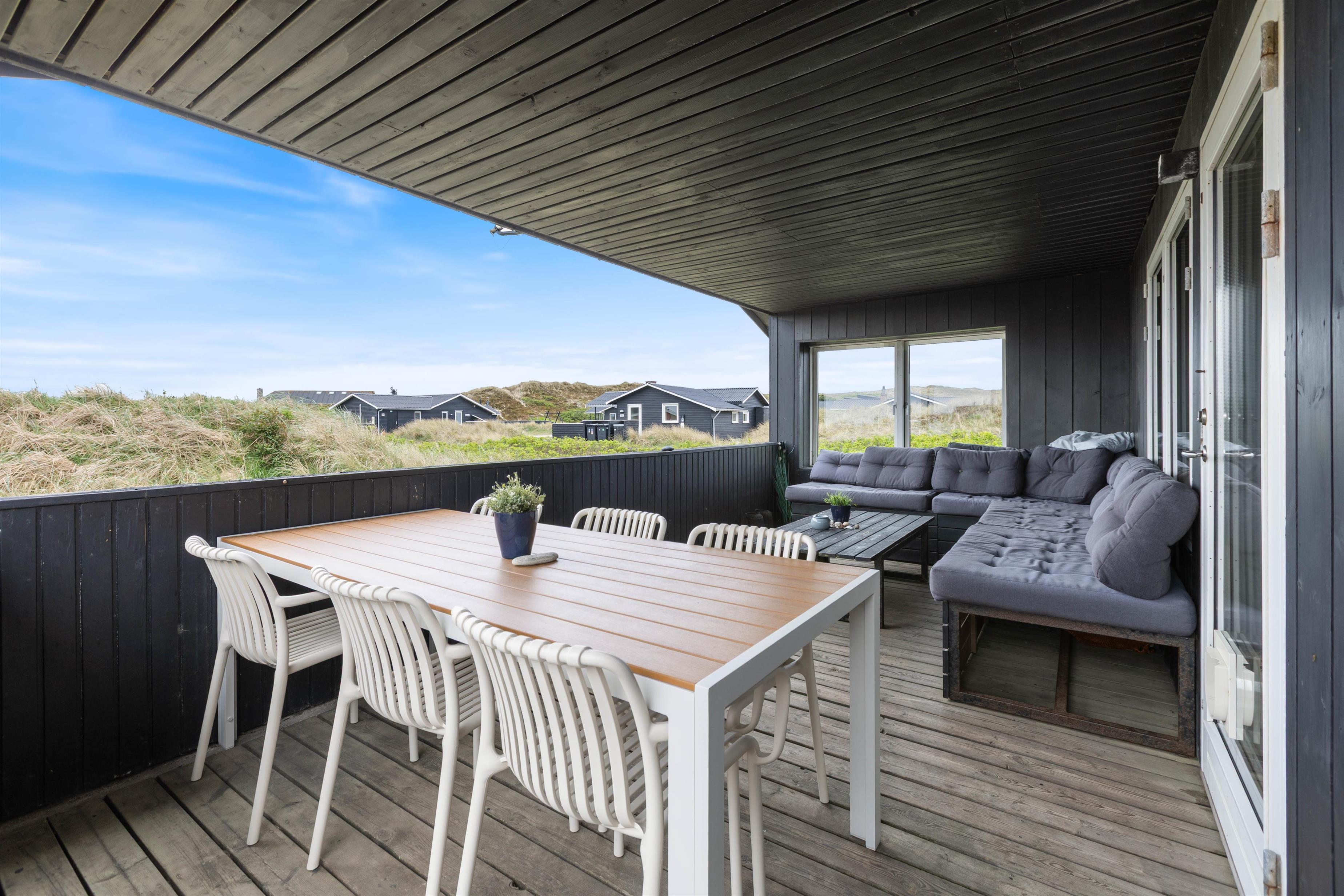 I kan også nyde feriehusets lækre terrasse, som både er overdækket og afskærmet, så I rigtig kan slappe af uden forstyrrelser. Terrassen er fyldt med hyggelige kroge, hvor I kan læne jer tilbage og mærke solens varme. Under den overdækkede del findes en ekstra lækker hyggekrog, nemlig loungeområdet. Her kan I samles efter en lækker grillmiddag og afslutte dagen med gode snakke, lækre snacks, spil og måske en god drink? Imens kan hundene trisse frit rundt på den lukkede terrasse.