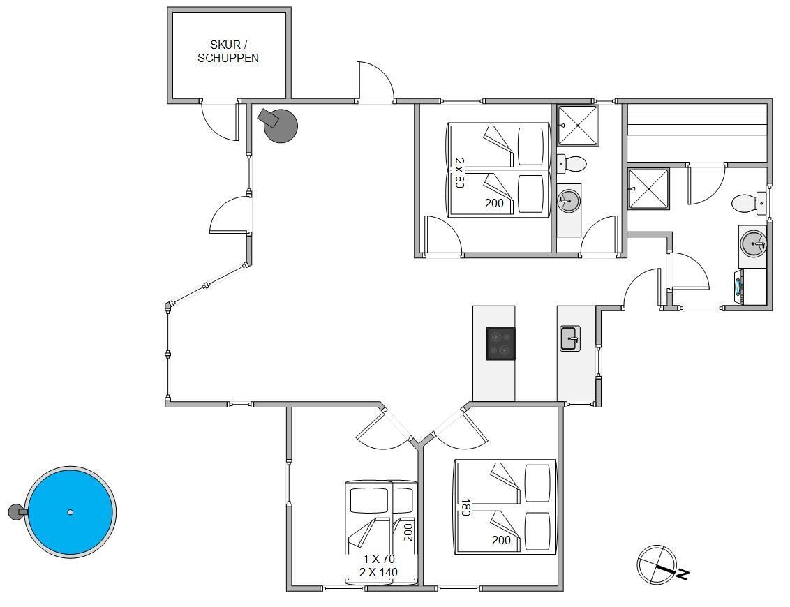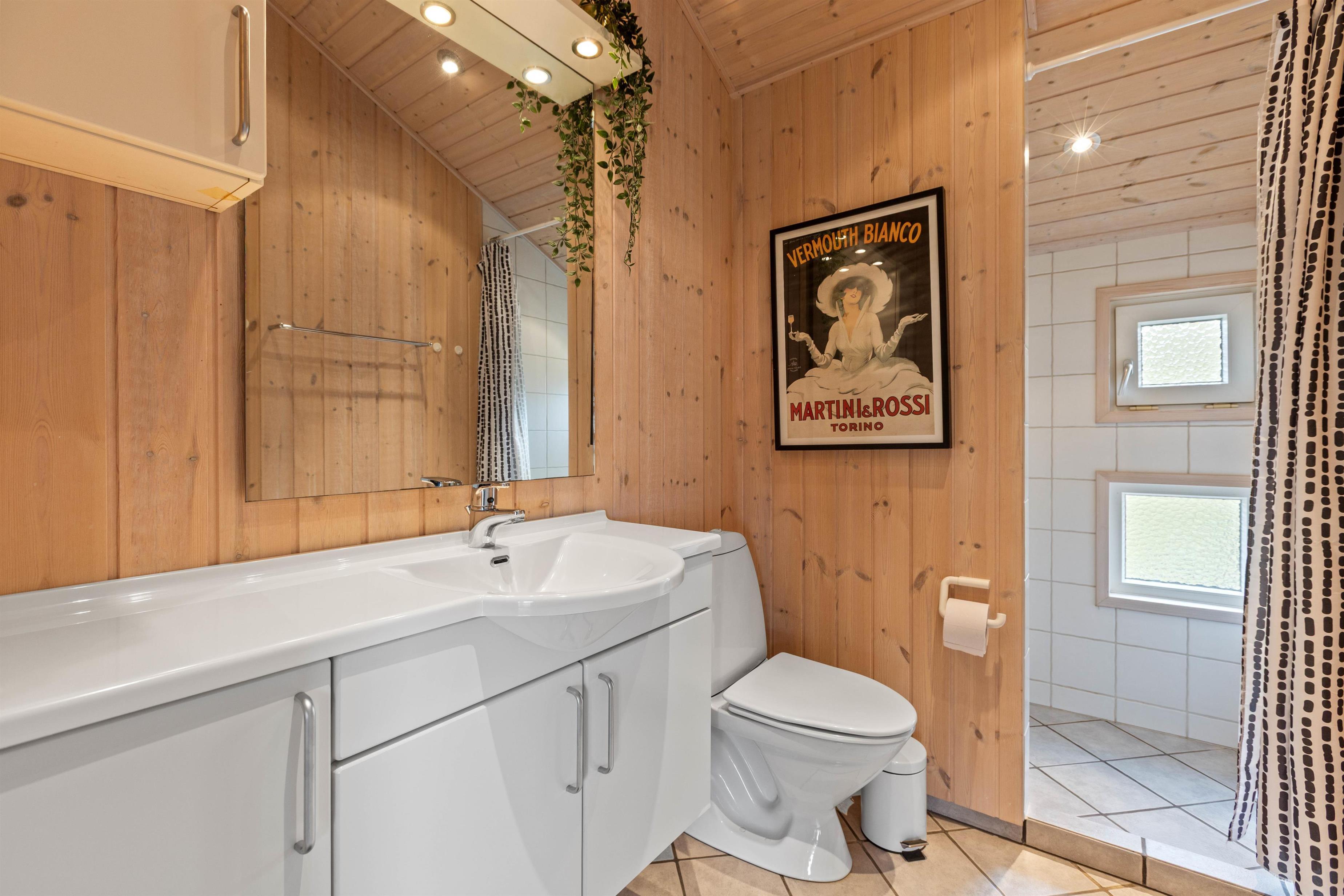 Sommerhuset er veludstyret med masser af praktiske faciliteter. Med 2 badeværelser slipper I til hver en tid for lange toiletkøer, og når de huslige pligter skal ordnes, hjælper opvaskemaskinen, vaskemaskinen og tørretumbleren til.