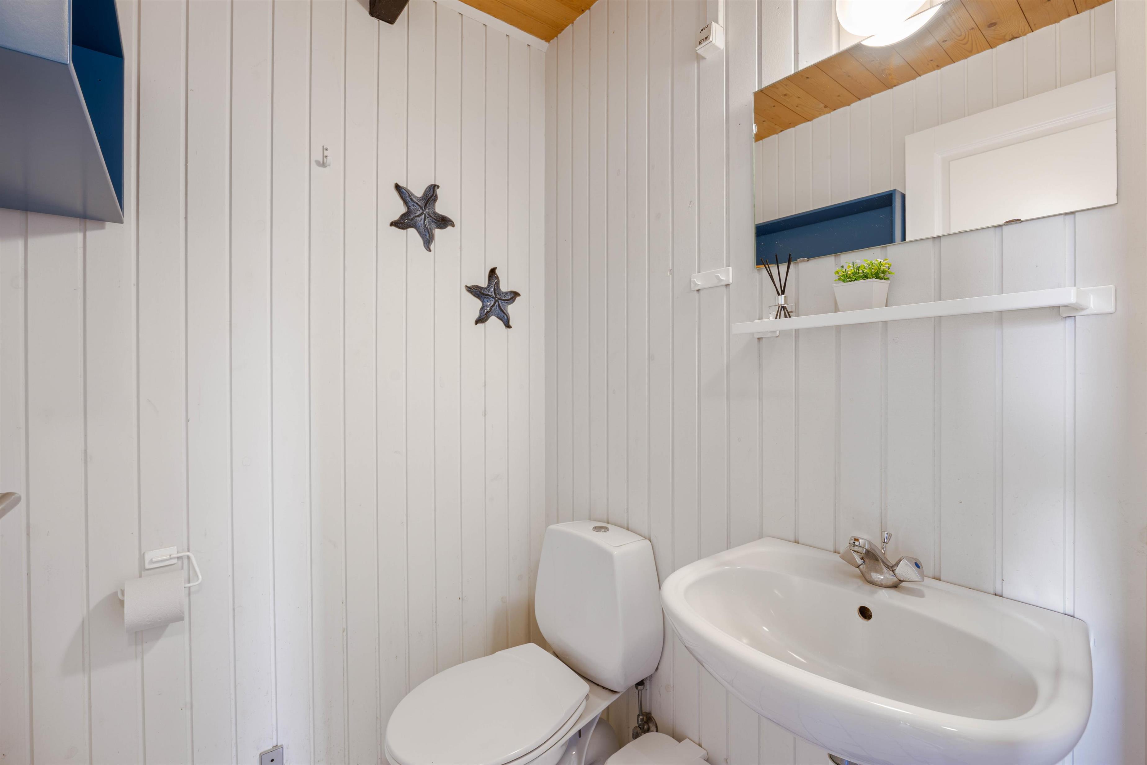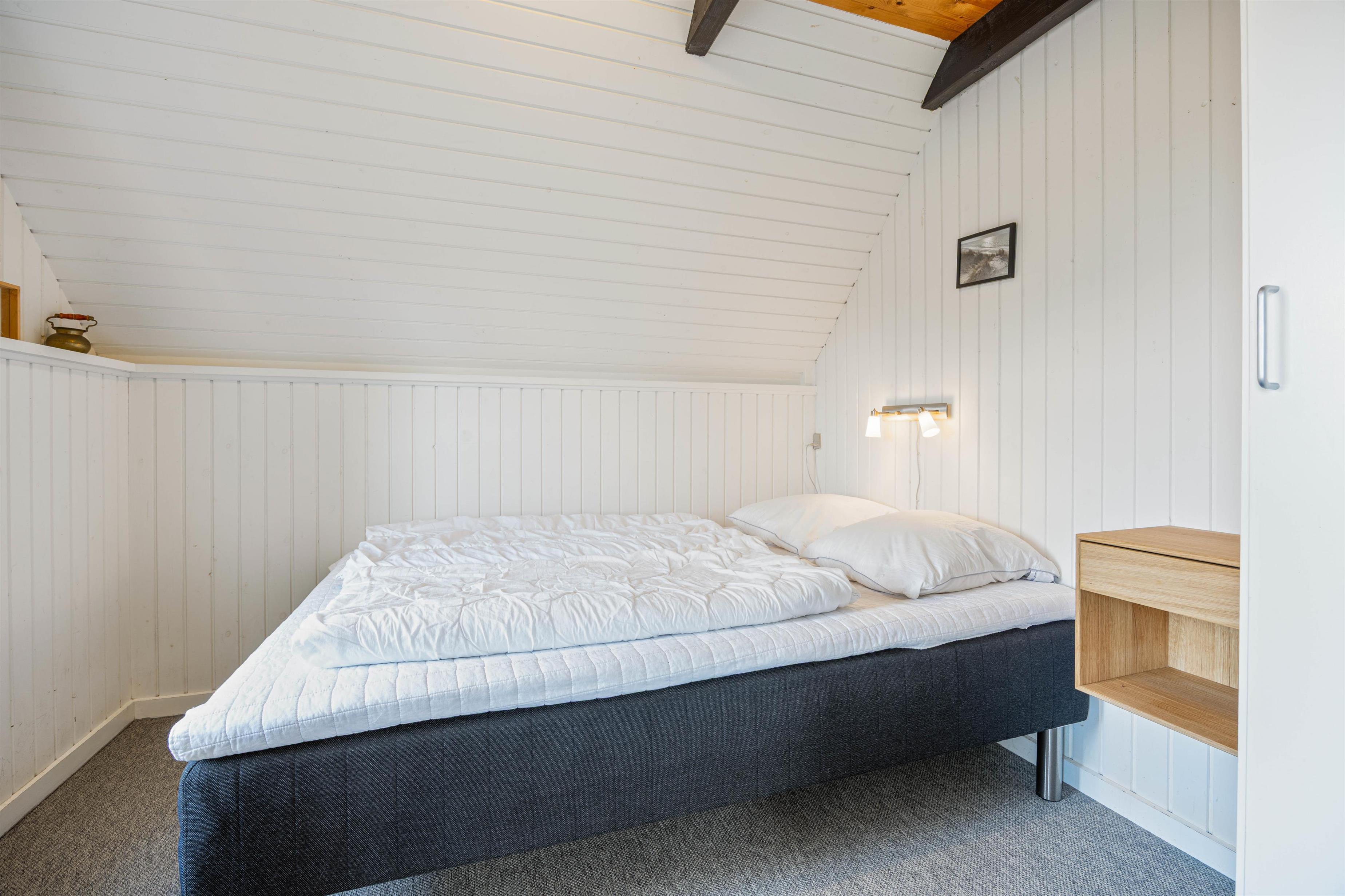 På Risbusken 6 er der mulighed for at komme helt ned i gear. Badeværelset, der er udstyret med gulvvarme, har også en varm sauna og en tømmespa, perfekt efter en dag fyldt med aktiviteter. Desuden er også et gæstetoilet og med tre komfortable soverum er der plads til op til seks gæster. På værelserne er der gulvtæppe, ét værelse har en 140x200 seng og de to andre er indrettet med to enkeltsenge.