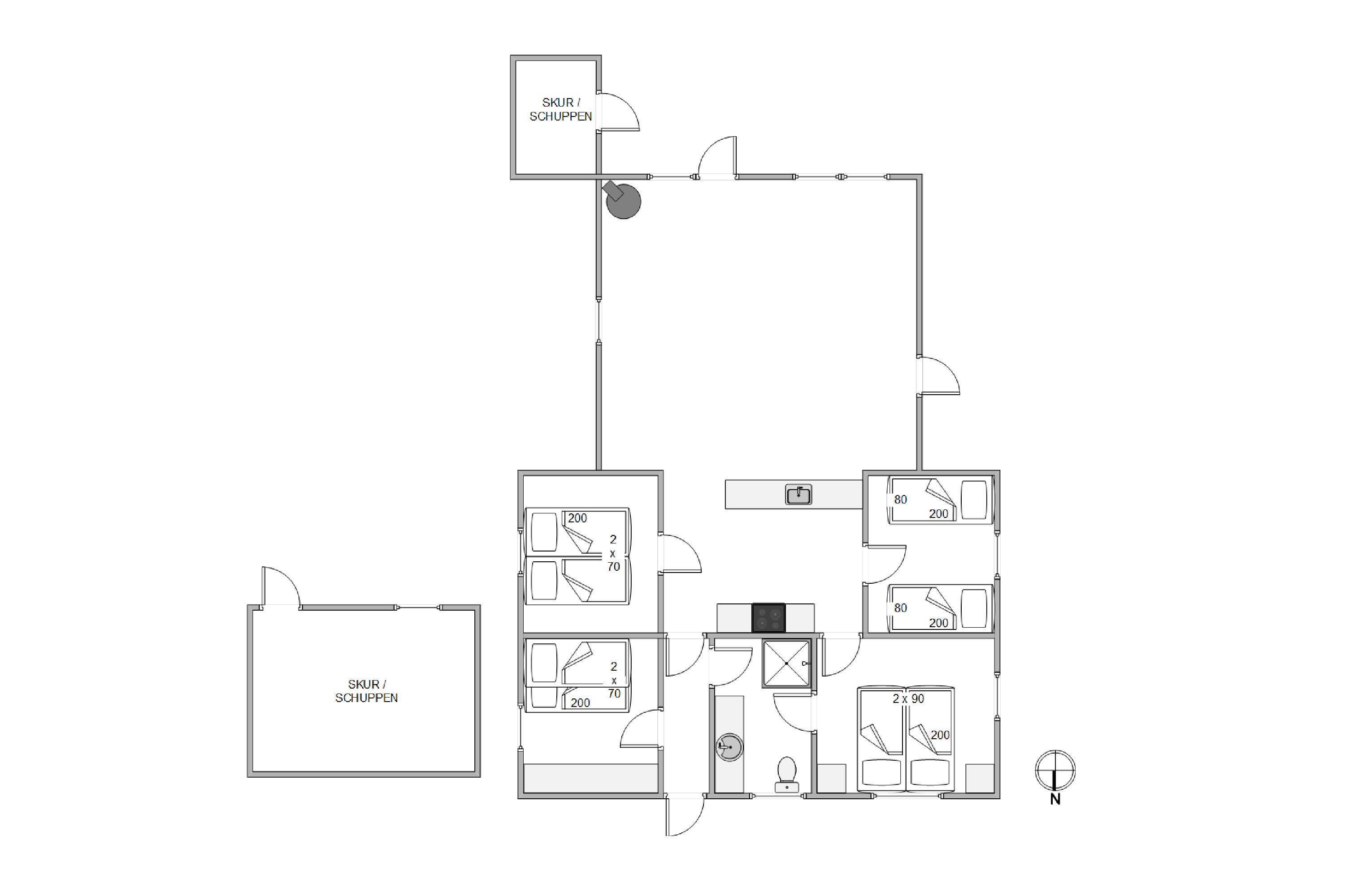 Dette charmerende sommerhus til 6 personer er opført i træ og emmer af ægte dansk sommerhusferie. Det åbne køkkenalrum med udsyn over den hyggelige stue med brændeovn har et rigtig flot lysindfald fra ovenlysvinduet. Feriehuset er indrettet med 8 sovepladser fordelt på 4 soverum. To af soveværelserne er udstyret med dobbeltseng, og til børnene finder I det fine børneværelse med 2 enkeltsenge, samt et andet værelse med 2 enkeltsenge.