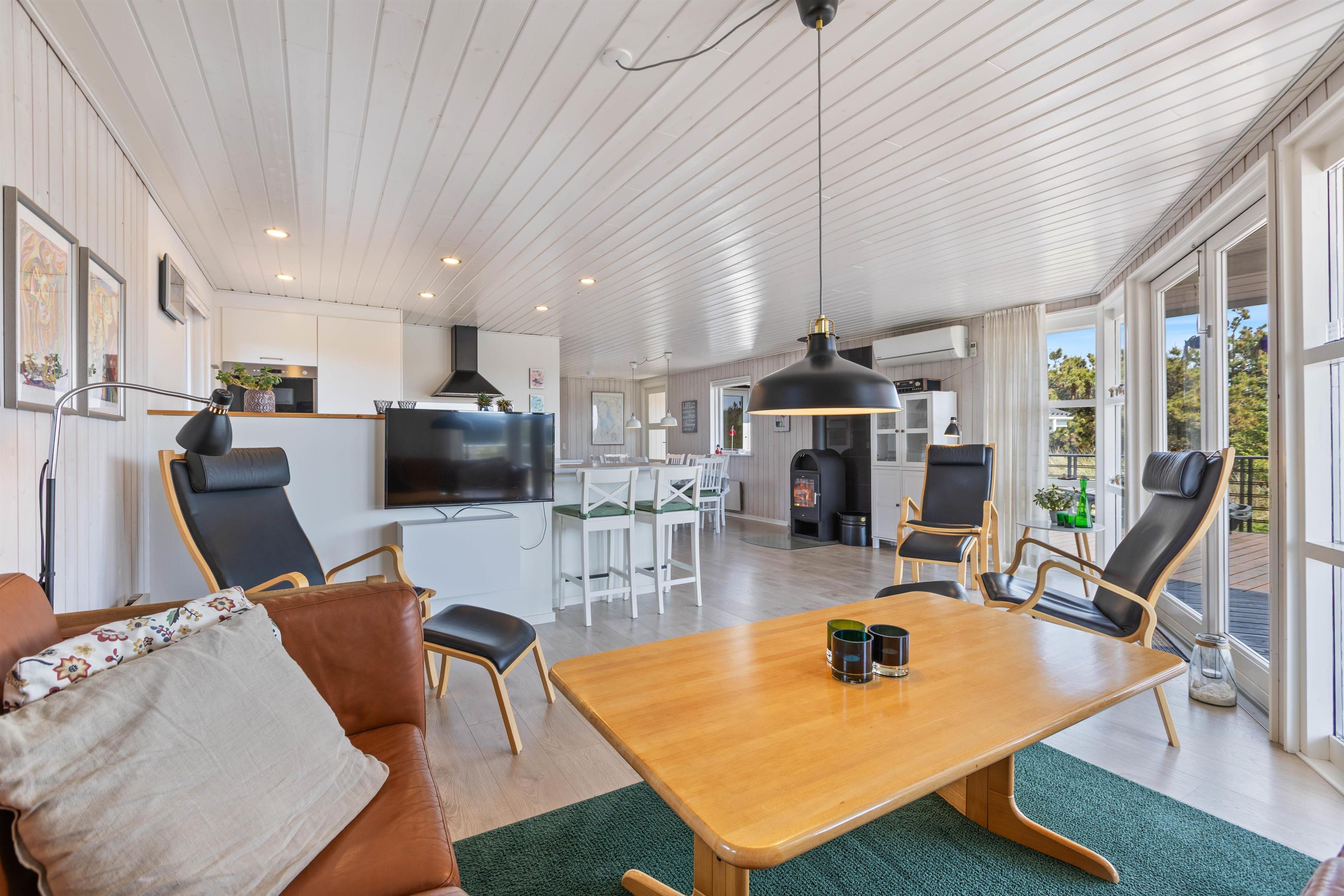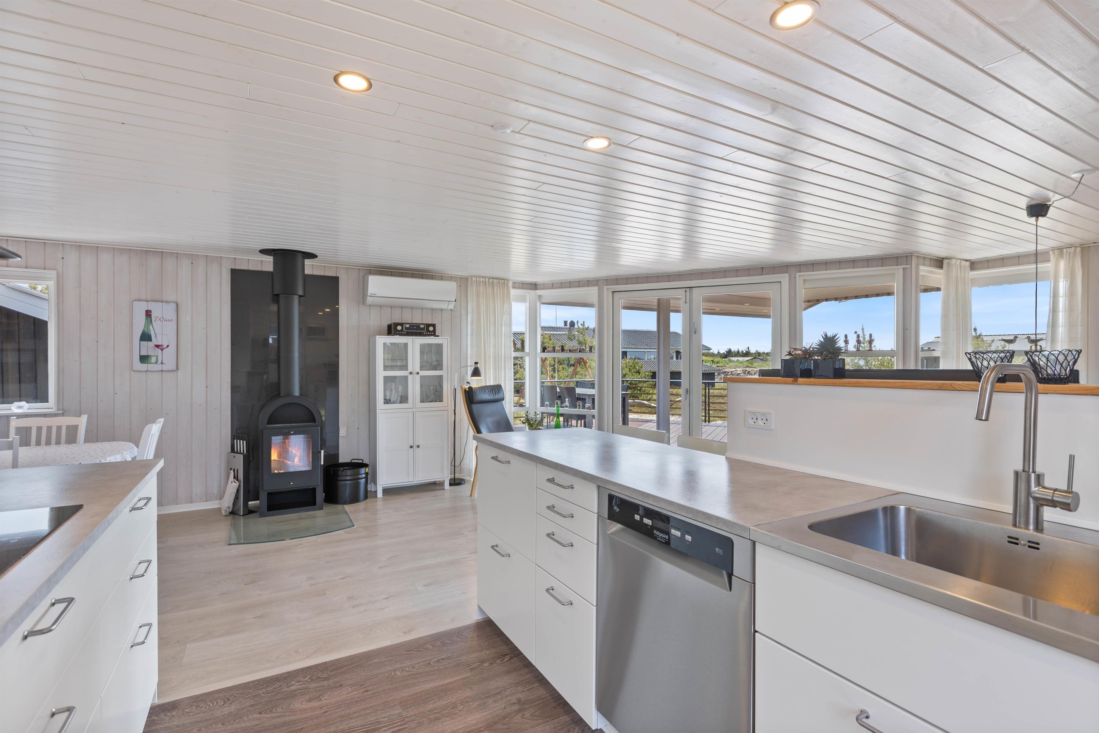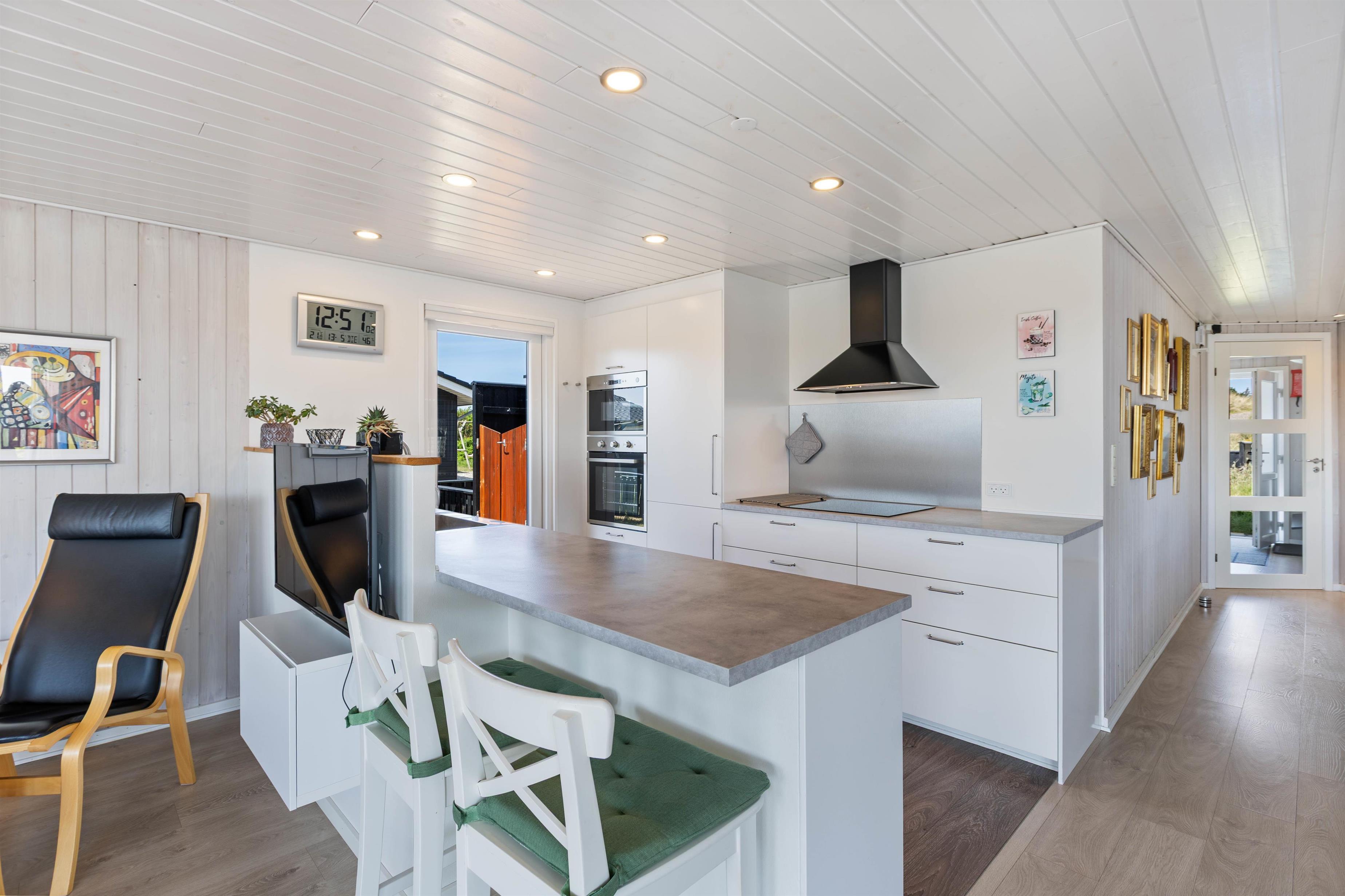 Feriehuset er lyst og rummeligt indrettet, så du har de helt rette omgivelser til ferien. Der er et dejligt, åbent køkken, der indbyder til madlavning i fælleskab, og efterfølgende kan du slappe af i stuen, mens opvaskemaskinen klarer opvasken. Sommerhuset har en Chromecast, så I kan hygge jer med en god film, som I streamer fra jeres egne enheder.