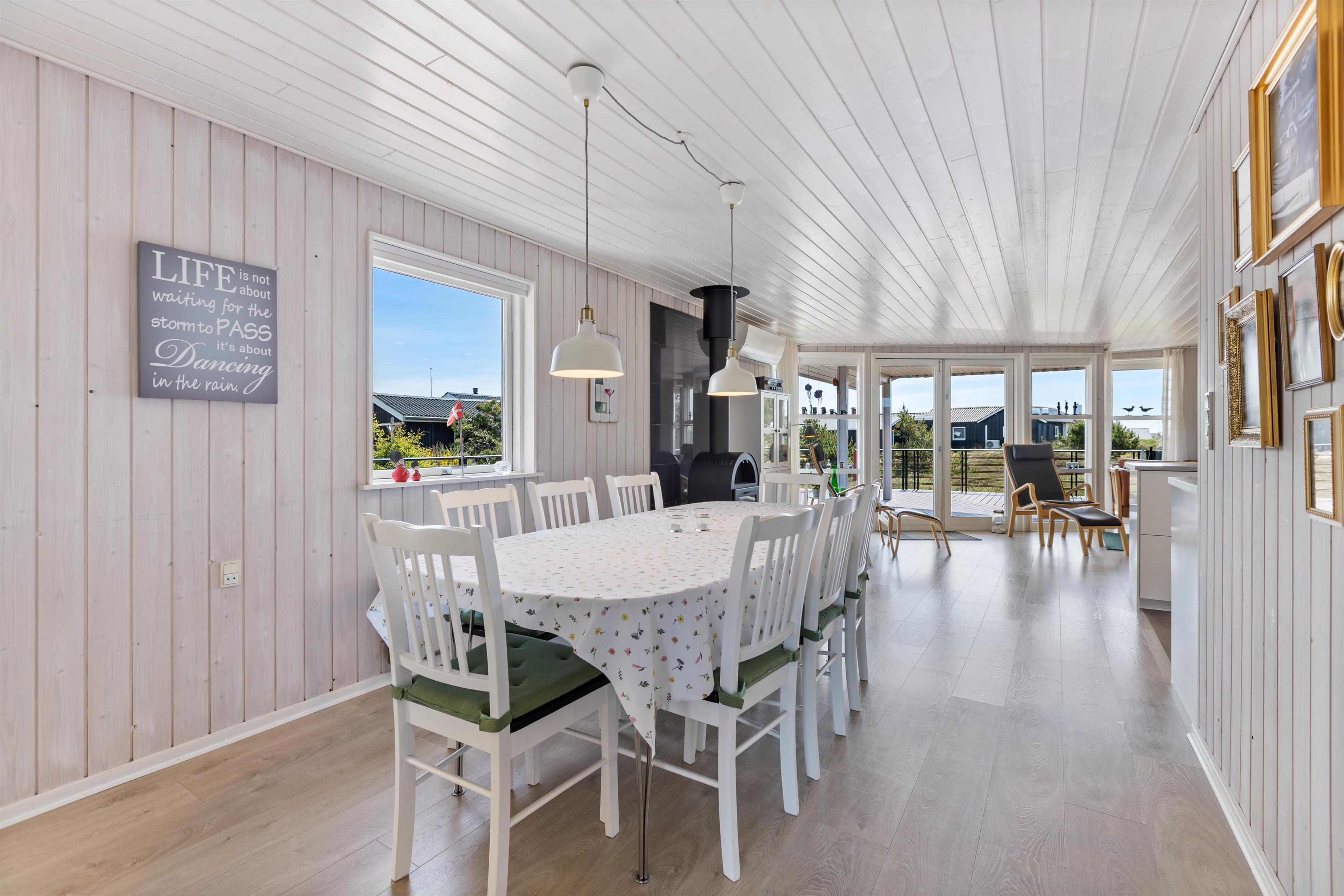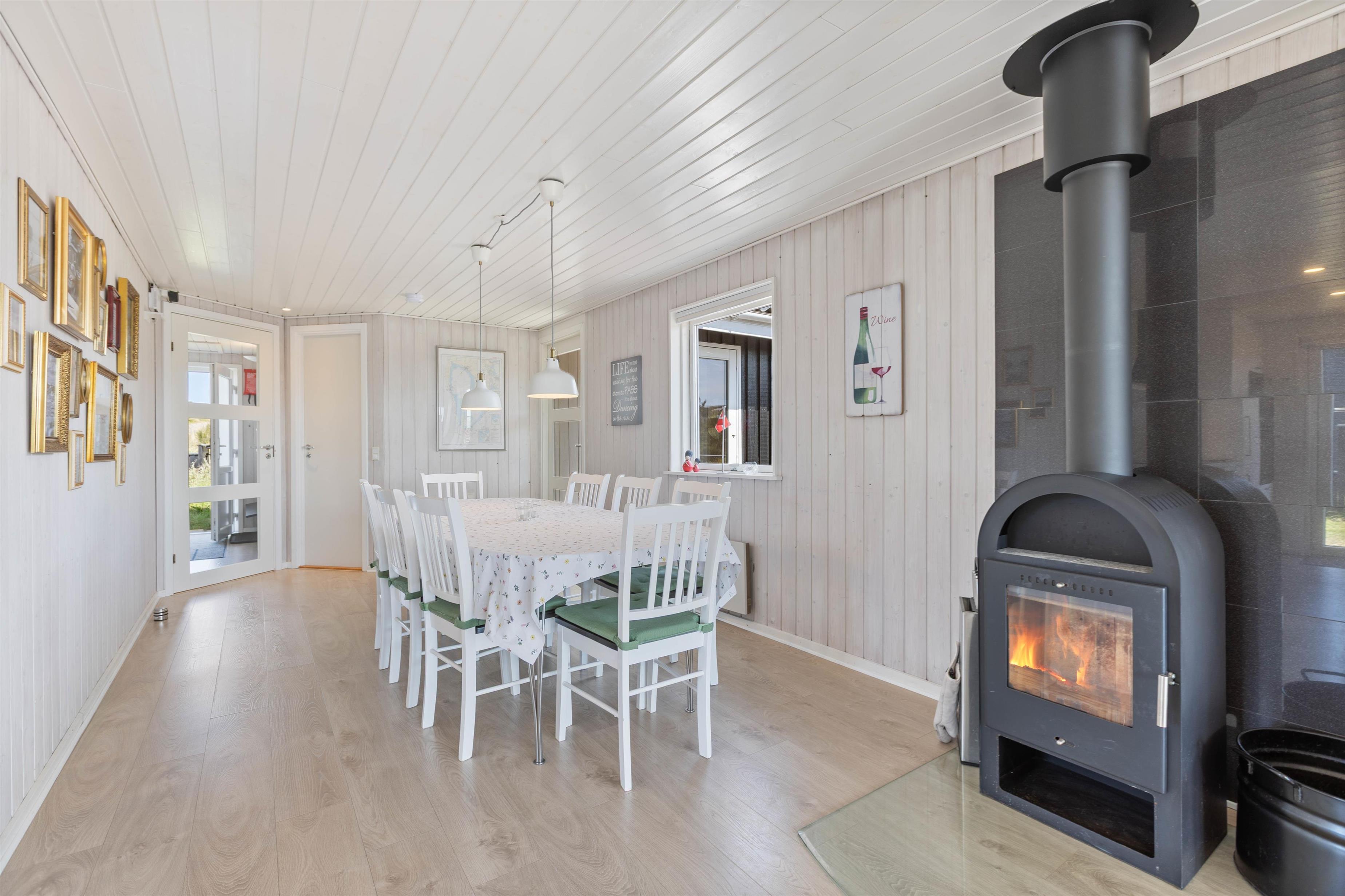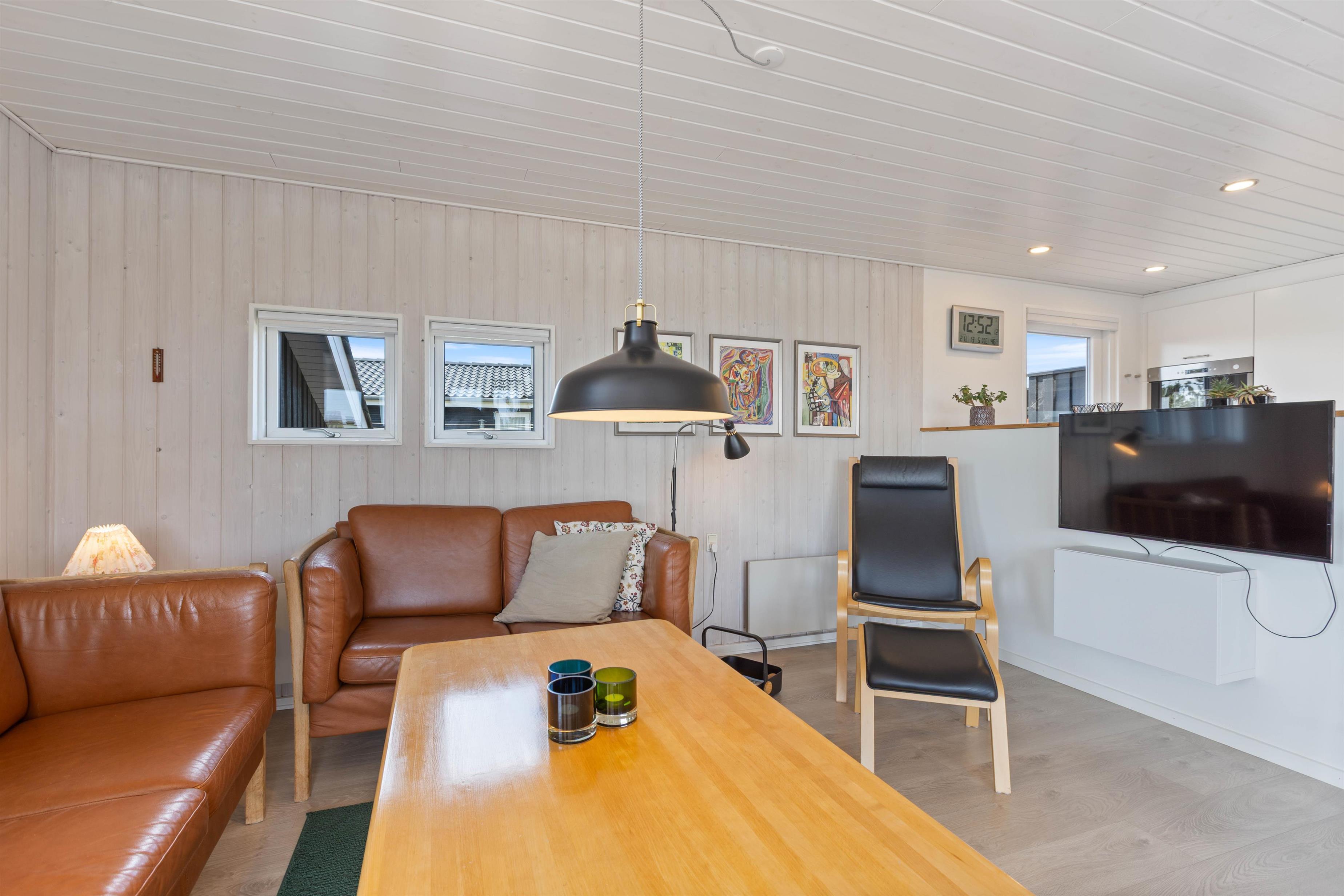 Feriehuset er lyst og rummeligt indrettet, så du har de helt rette omgivelser til ferien. Der er et dejligt, åbent køkken, der indbyder til madlavning i fælleskab, og efterfølgende kan du slappe af i stuen, mens opvaskemaskinen klarer opvasken. Sommerhuset har en Chromecast, så I kan hygge jer med en god film, som I streamer fra jeres egne enheder.