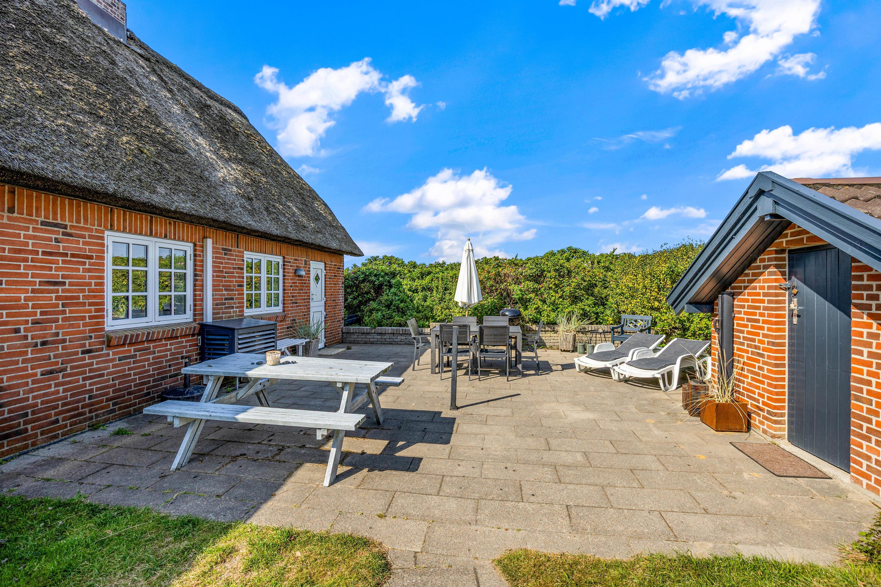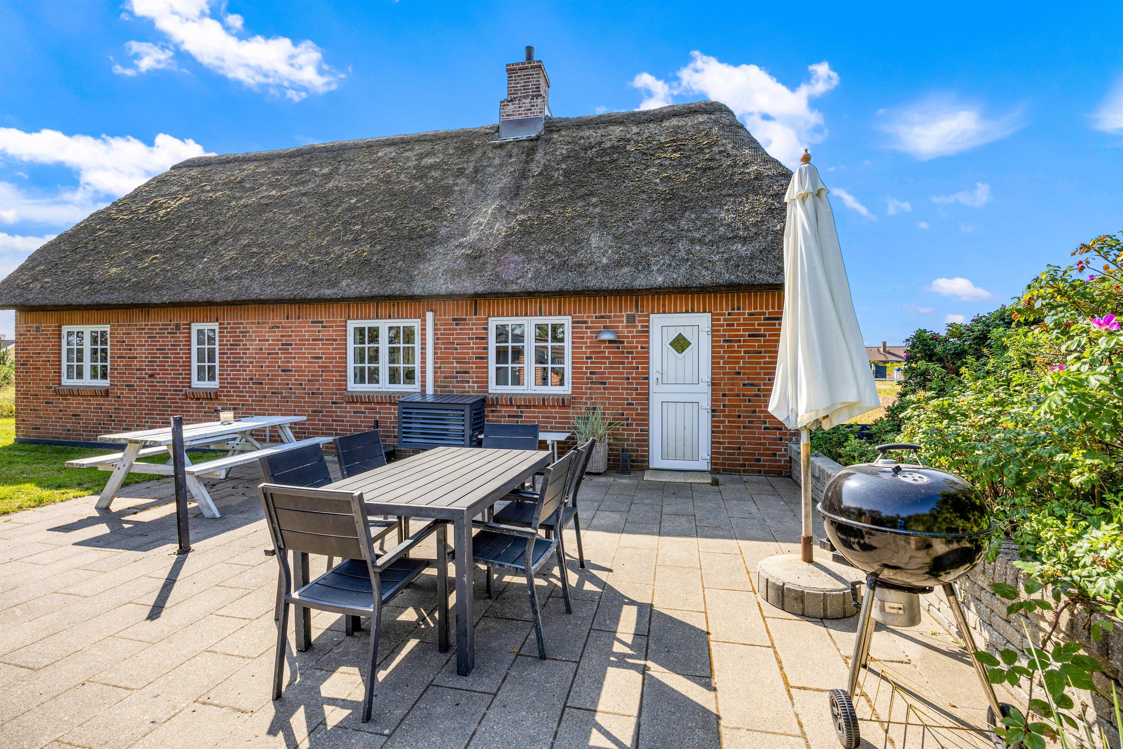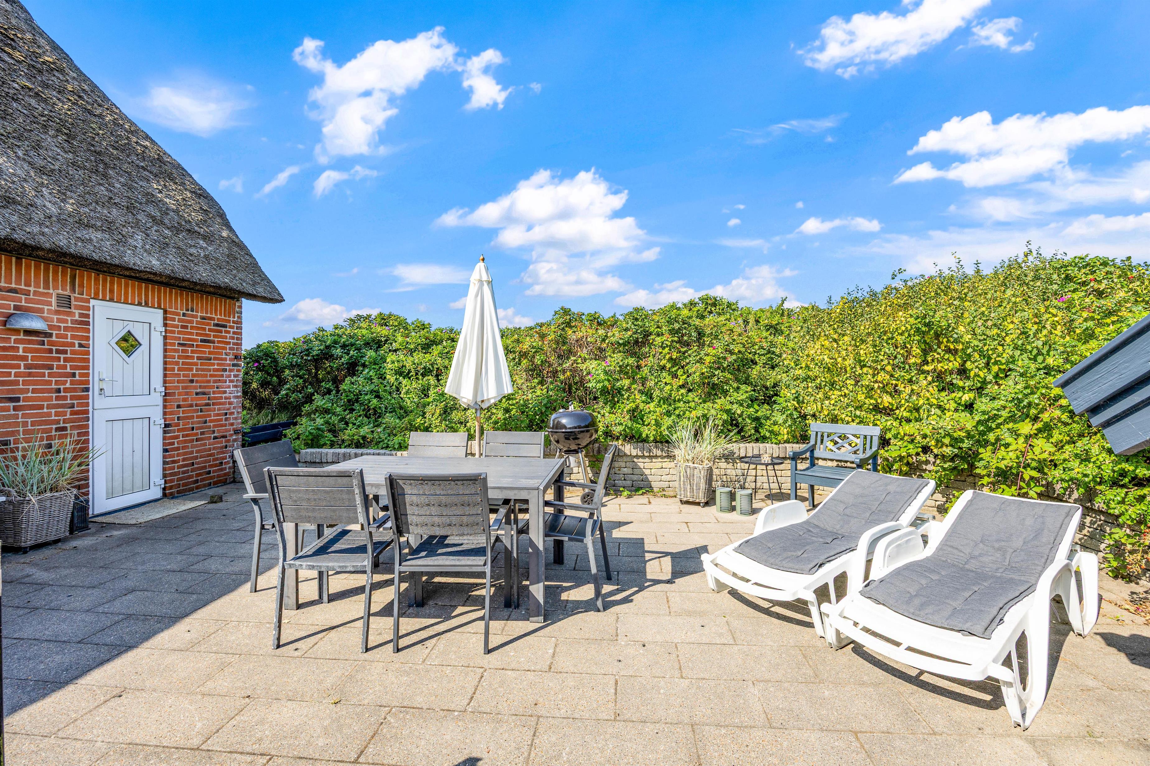Den smukke ejendom med afskærmet terrasse på Bilbergsvej 14 tilbyder dig afslapning i timevis i den friske vesterhavsluft. Nyd din kaffe, imens du slapper af i de komfortable havemøbler. Du kan altid finde en læfuld plet her, midt i det jyske klitlandskab.