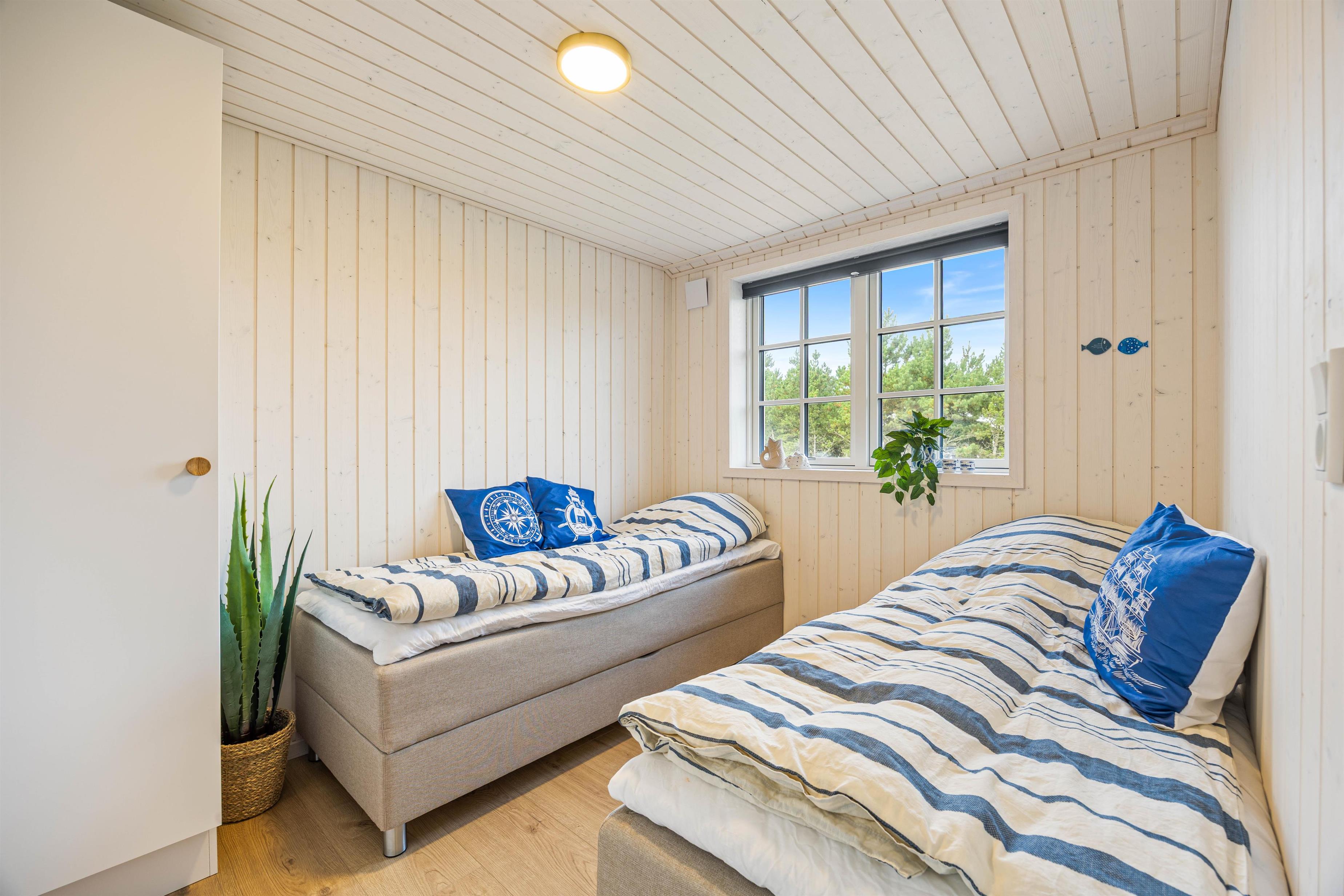 De fire soveværelser rummer i alt otte komfortable senge – to dobbeltsenge og fire enkeltsenge – med opbevaringsplads til børnenes legetøj. Yderligere sovepladser findes på hemsen, i den hyggelige alkove (135 × 220 cm) samt på sovesofaen i aktivitetsrummet, hvilket giver fleksible muligheder for større grupper.