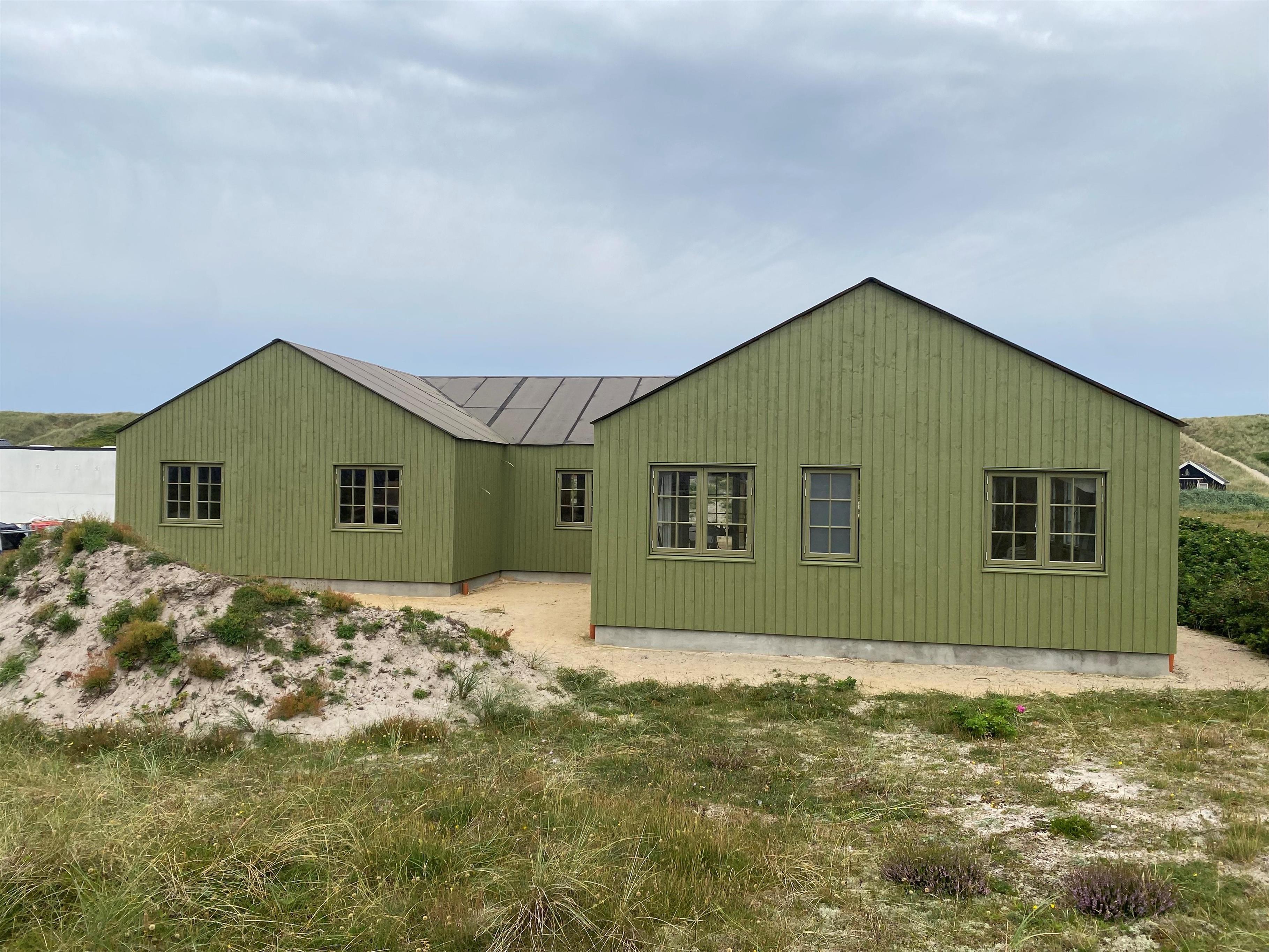 Velkommen til et moderne og indbydende sommerhus fra 2026 med alt, hvad I behøver for en afslappende og aktiv ferie ved Vesterhavet. Her kan op til 18 personer og 2 hunde nyde ferien blot 200 meter fra stranden. Med sin grønne facade falder sommerhuset i ét med det naturskønne område og skaber en harmonisk forbindelse til den omkringliggende natur. Sommerhuset er 240 m² stort og byder på luksuriøse faciliteter og fantastisk beliggenhed med kort afstand til indkøbsmulighed og natur.