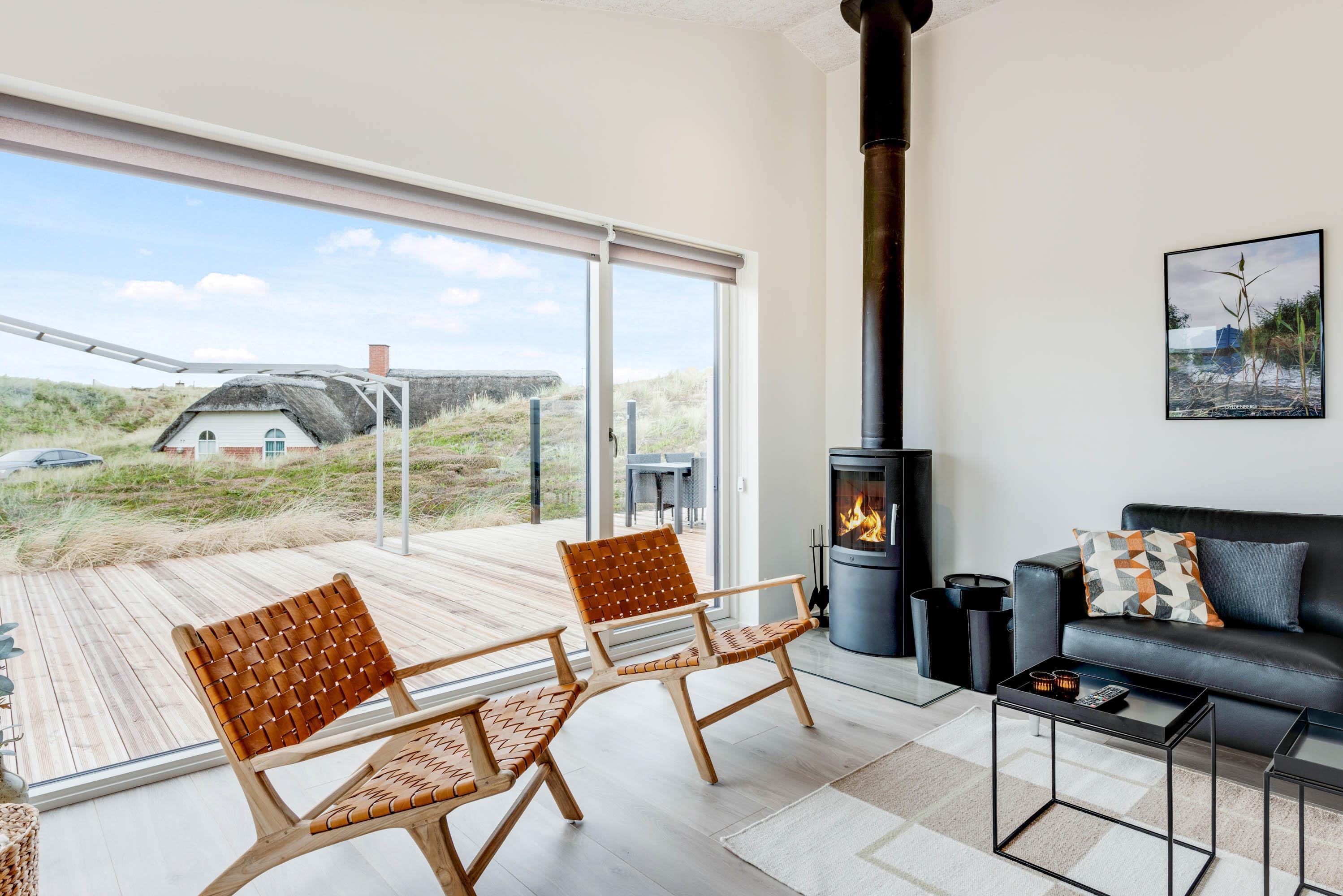 Også udvendigt får I de lækreste omgivelser. Bilbergsvej 79 byder på en skøn udestue, så I kan nyde den friske havluft og den fantastiske udsigt selv i regn og blæst, og der er selvfølgelig også sørget for gode havemøbler og liggestole til de varme sommerdage. Er I mere til en dukkert i Vesterhavet, er stranden kun i en afstand af 400 meter væk fra feriehuset.