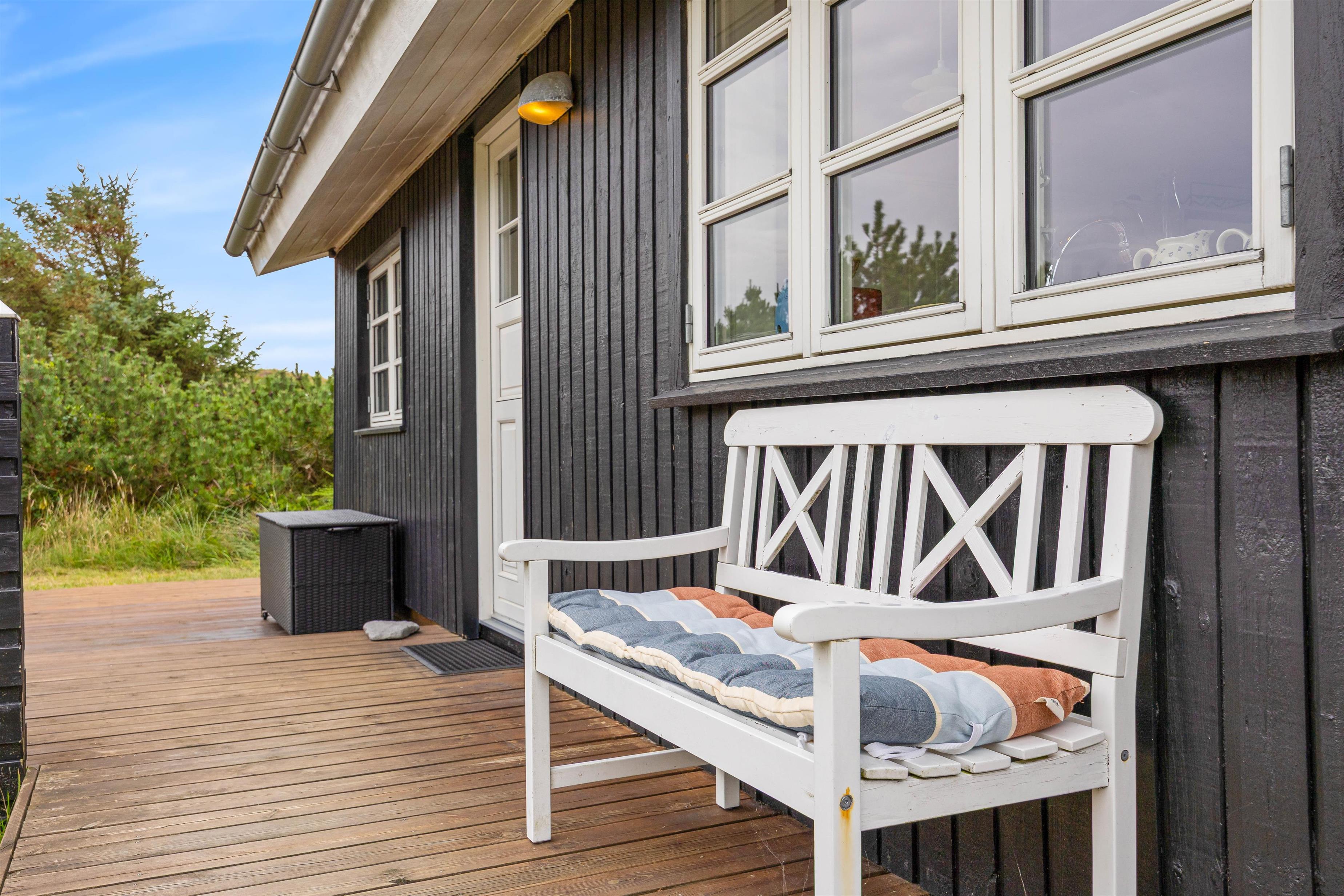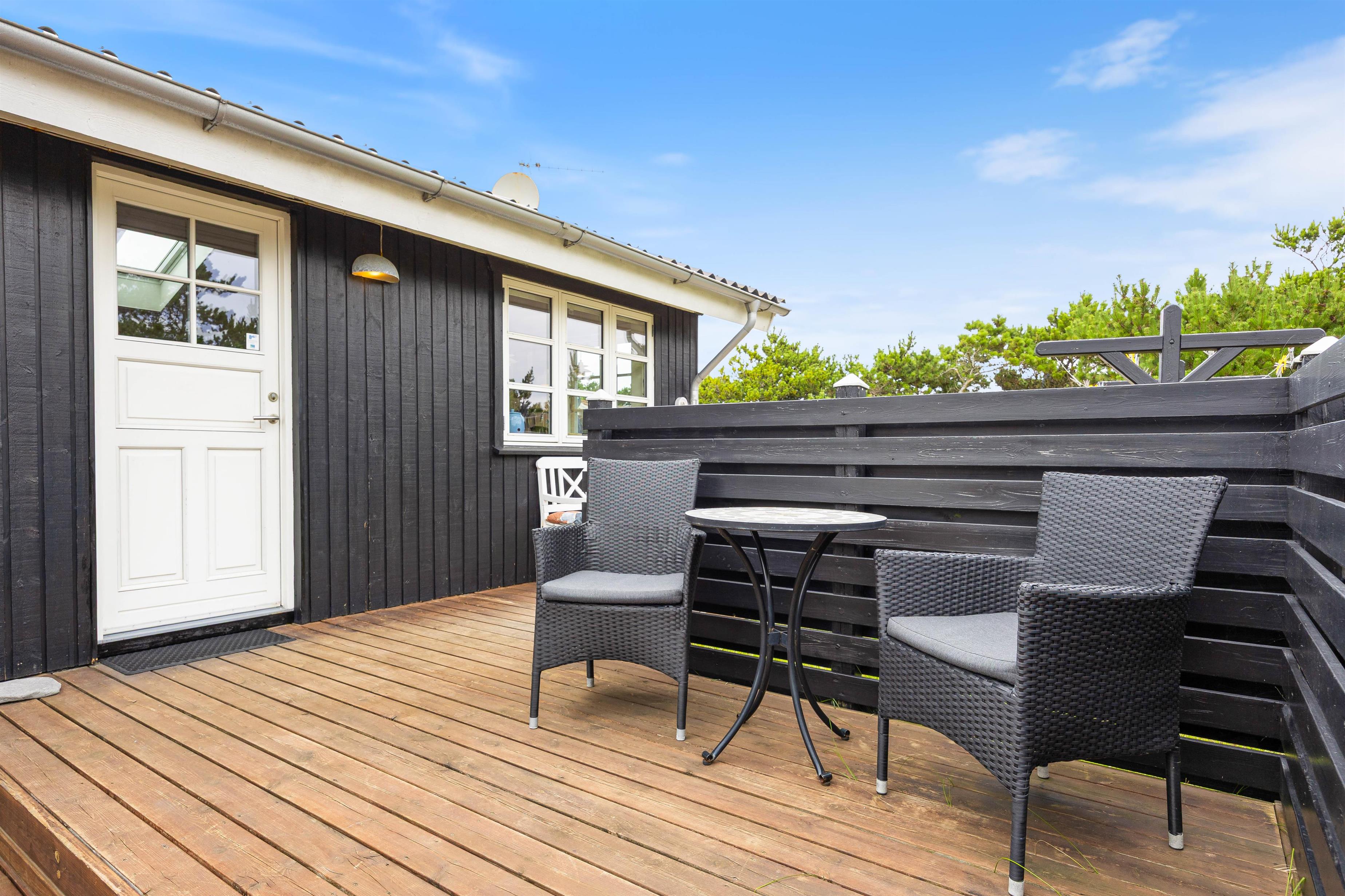 På Bjerregårdsvej 191 finder du et charmerende sommerhus, der er indrettet med sans for detaljerne i en smuk og personlig stil. Feriehuset er omgivet af en dejlig træterrasse, som indbyder til afslapning og solbadning dagen lang.