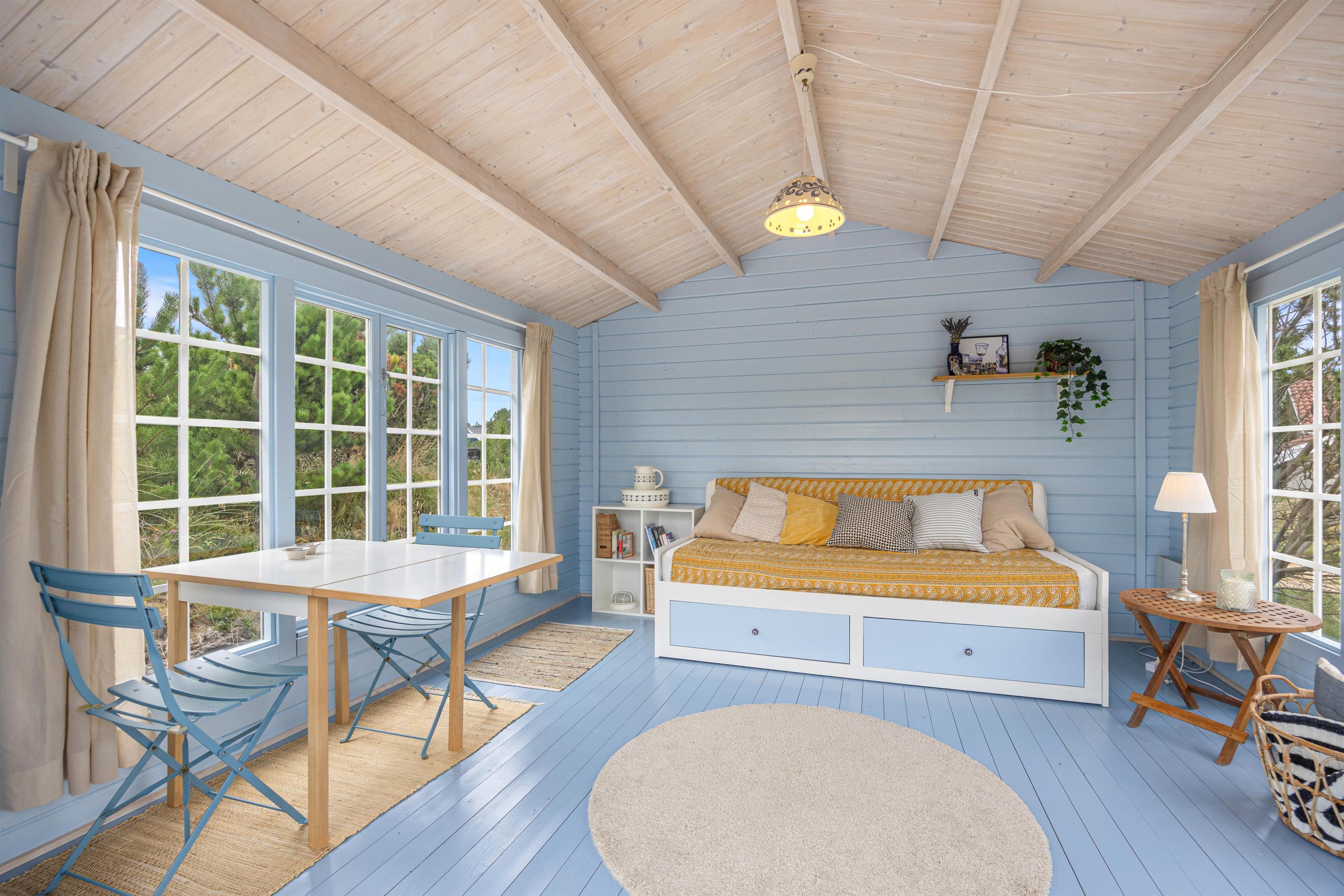 Som en ekstra bonus er der et hyggeligt anneks i flotte farver, indrettet med et lille bord, et par stole og en sovesofa – perfekt som ekstra opholdsrum eller til en rolig stund med en bog.