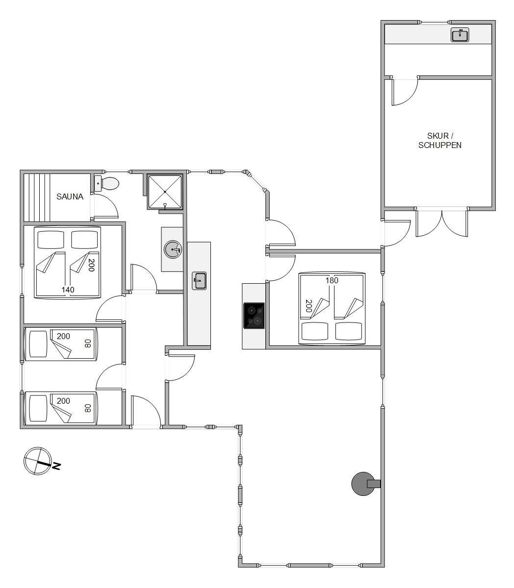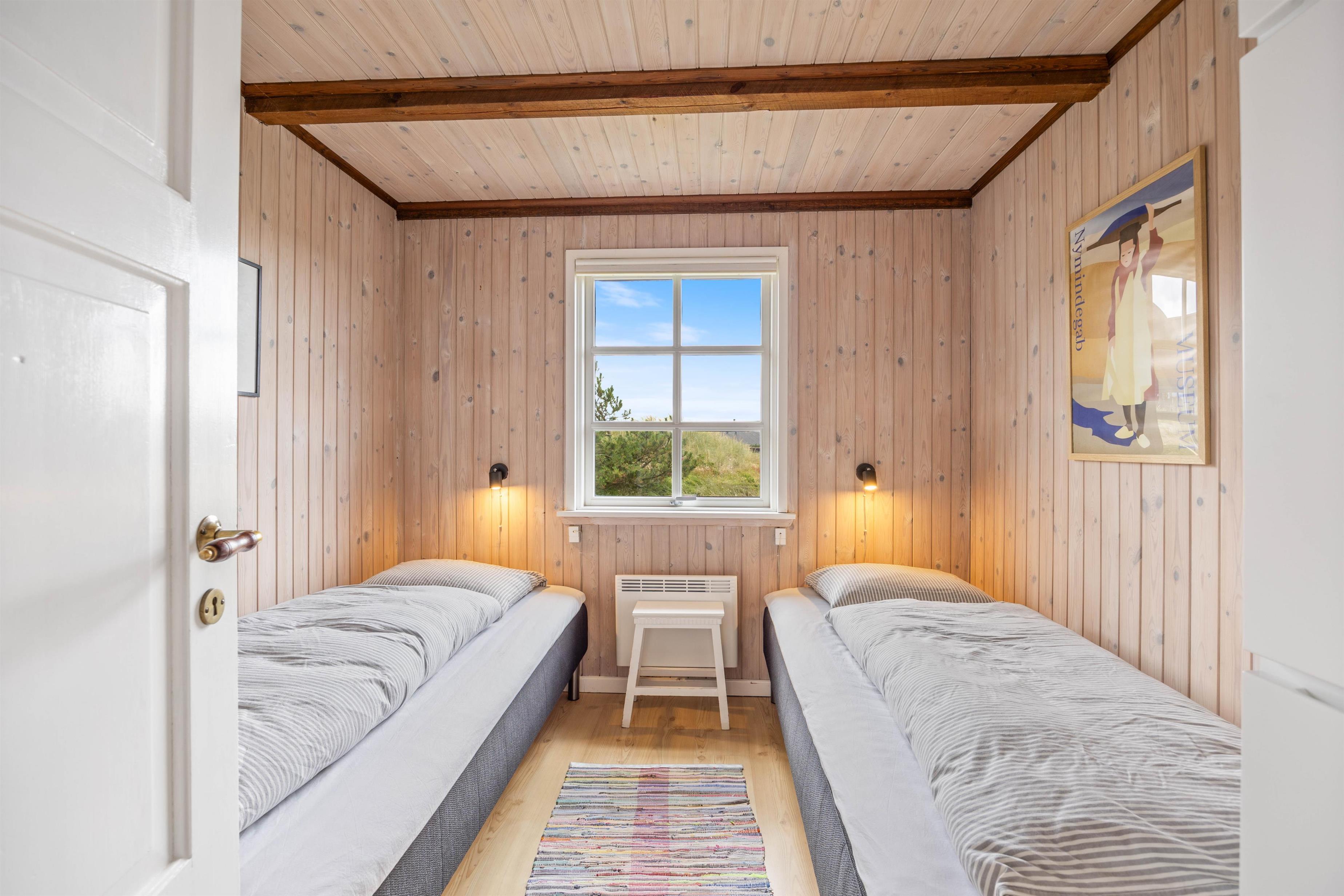 Huset har 3 fine soverum samt et lyst badeværelse. På badeværelset er der gulvvarme samt en sauna, som I kan tænde op for og dampe af efter dagens begivenheder. I kan eventuelt tage et dyp i det brusende Vesterhav, ikke langt fra sommerhuset, og derefter få varmen i den behagelige sauna.