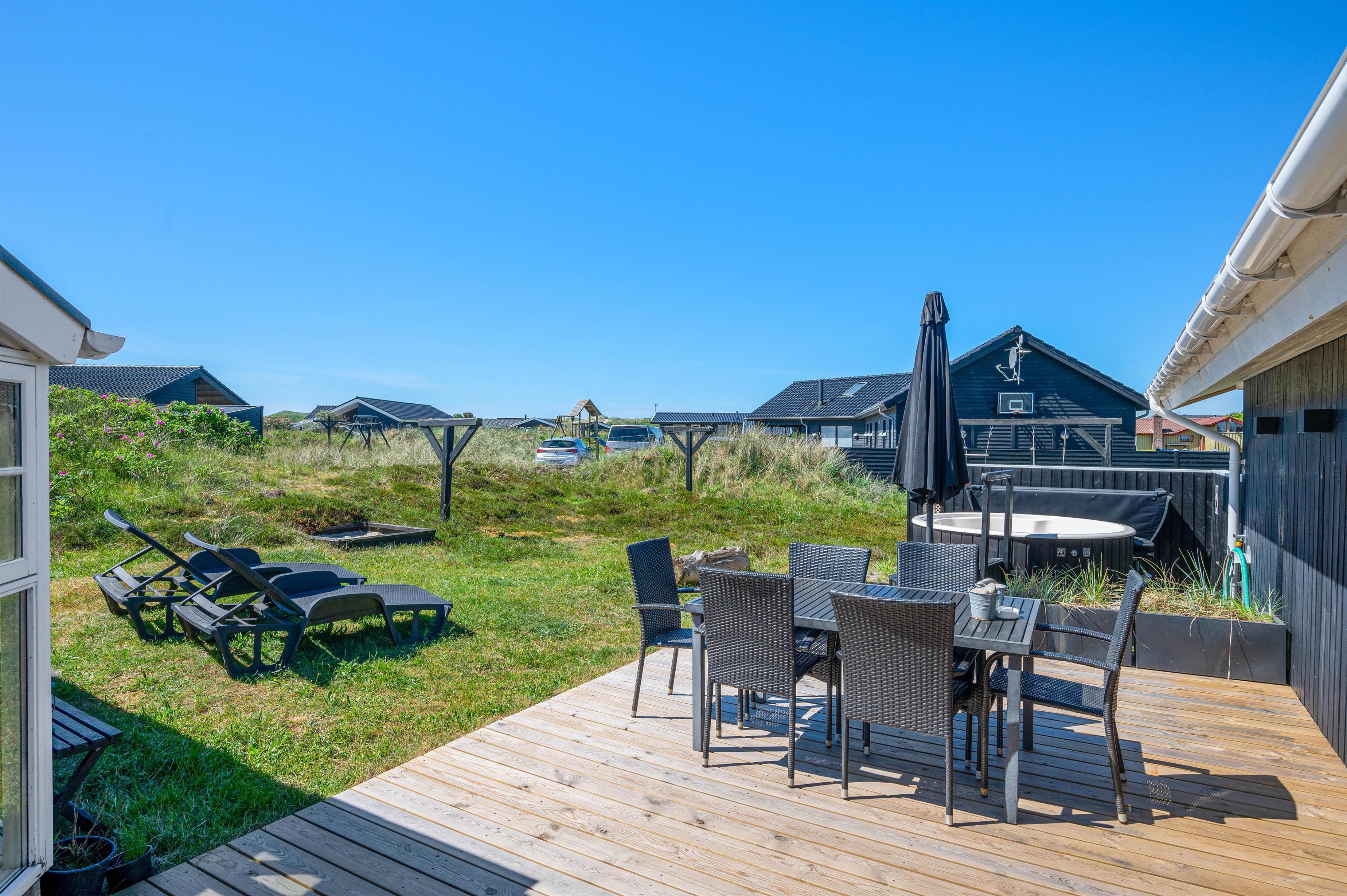 Huset ligger blot 625 meter væk fra Vesterhavet, hvilket er helt ideelt til lange gåture med dem, I holder af. I kan gå på opdagelse i klitlandskabet og på den lange sandstrand, hvor de små kan bygge sandslotte og samle flotte sten og muslinger. Hvis vejret er godt, kan I pakke en frokostkurv og medbringe badehåndklæder på stranden. Fra huset er der 1,5 kilometer til jeres nærmeste indkøbsmulighed, så det er altid nemt og hurtigt at handle til dagens måltider. Hvis I ikke selv vil lave mad, kan I køre en tur til Hvide Sande, hvor I kan spise på en af de mange restauranter.
