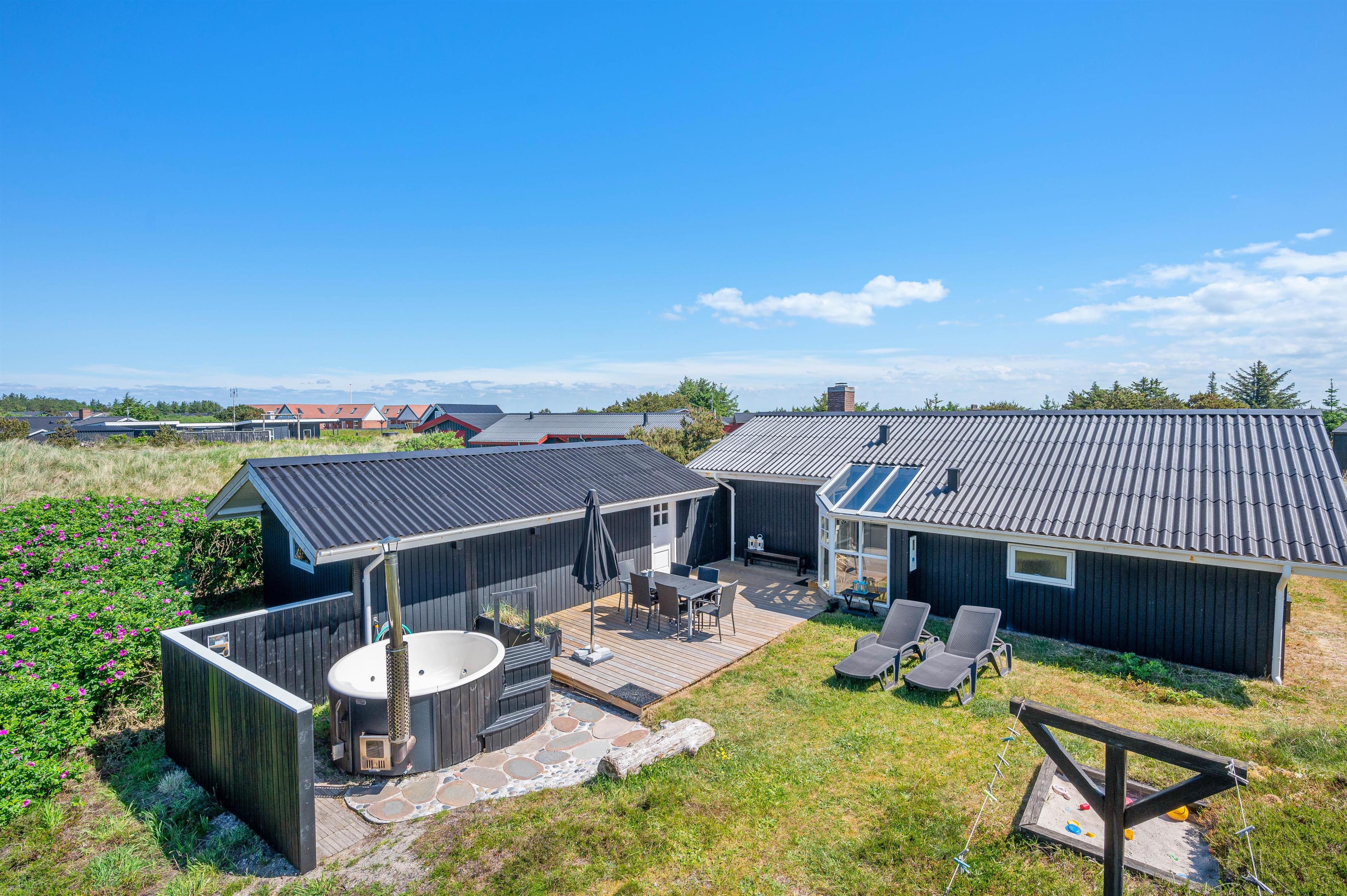 Dette sommerhus, som er renoveret tilbage i 2018, er perfekt til en hyggelig familieferie. Her kan I nyde en ferie i skønne omgivelser, i gåafstand fra stranden og det flotte klitlandskab og med sauna samt en dejlig spisestue. Her kan I bo 6 personer og 2 husdyr. Feriehuset er også udstyret med et dejligt vildmarksbad, som I kan tænde op for og nyde det dejlige varme vand.