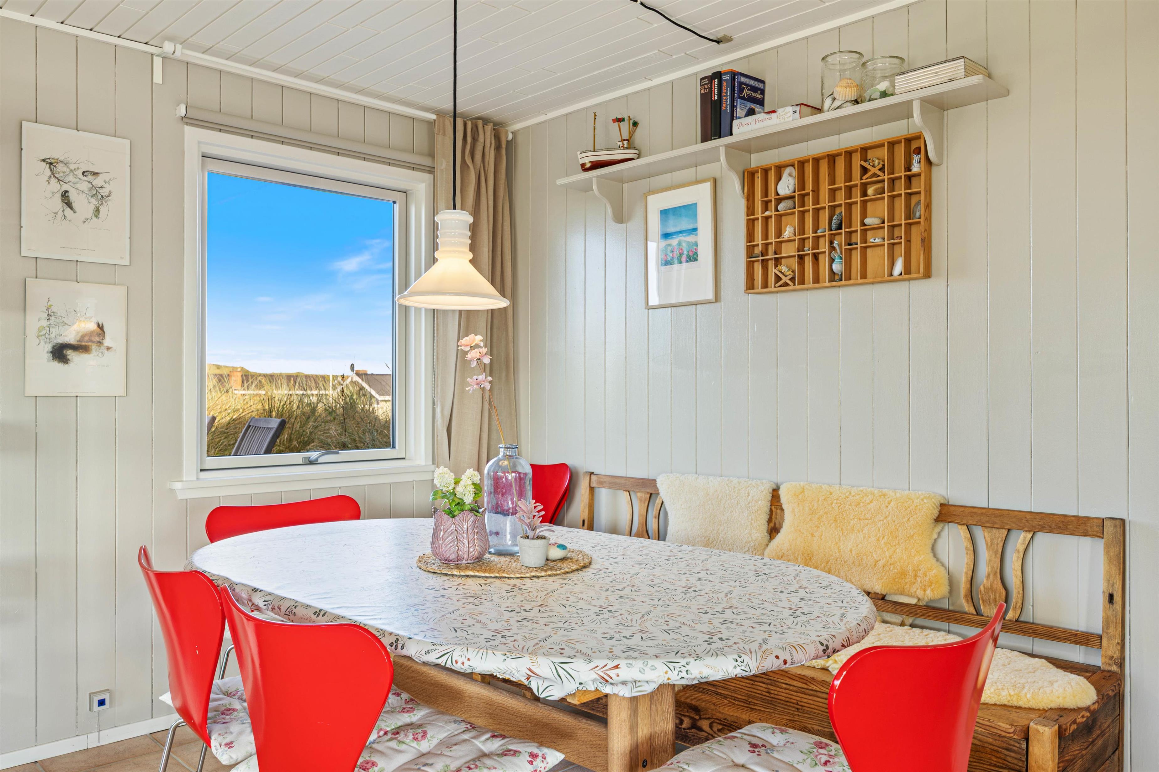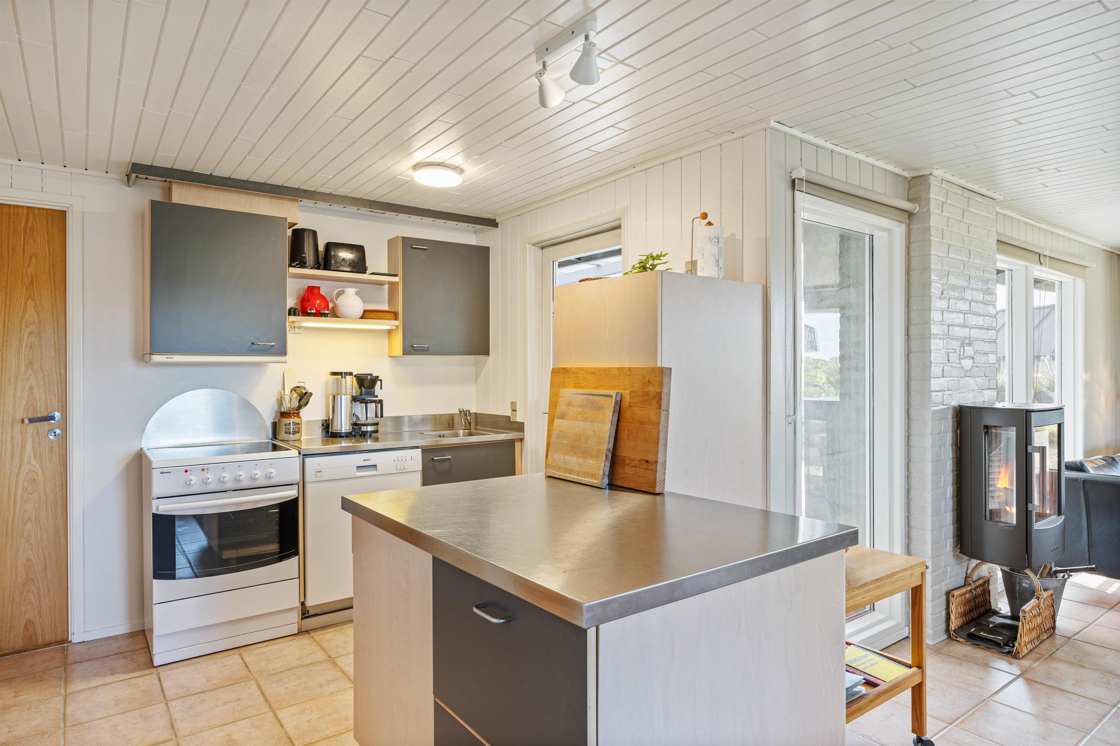 Indenfor finder I hurtigt feriehusets hjerte, nemlig den store stue i forbindelse med køkkenet, hvor I kan samles alle sammen. Her kan I nyde en lækker middag som i sammen kan lave i køkkenet, og I skal ikke tænke på opvasken, da sommerhusets opvaskemaskine klarer dette. Desuden kan I også finde både vaskemaskine og tørretumbler på feriehusets badeværelse, så I kan have rent tøj hver dag.