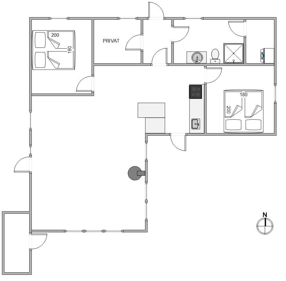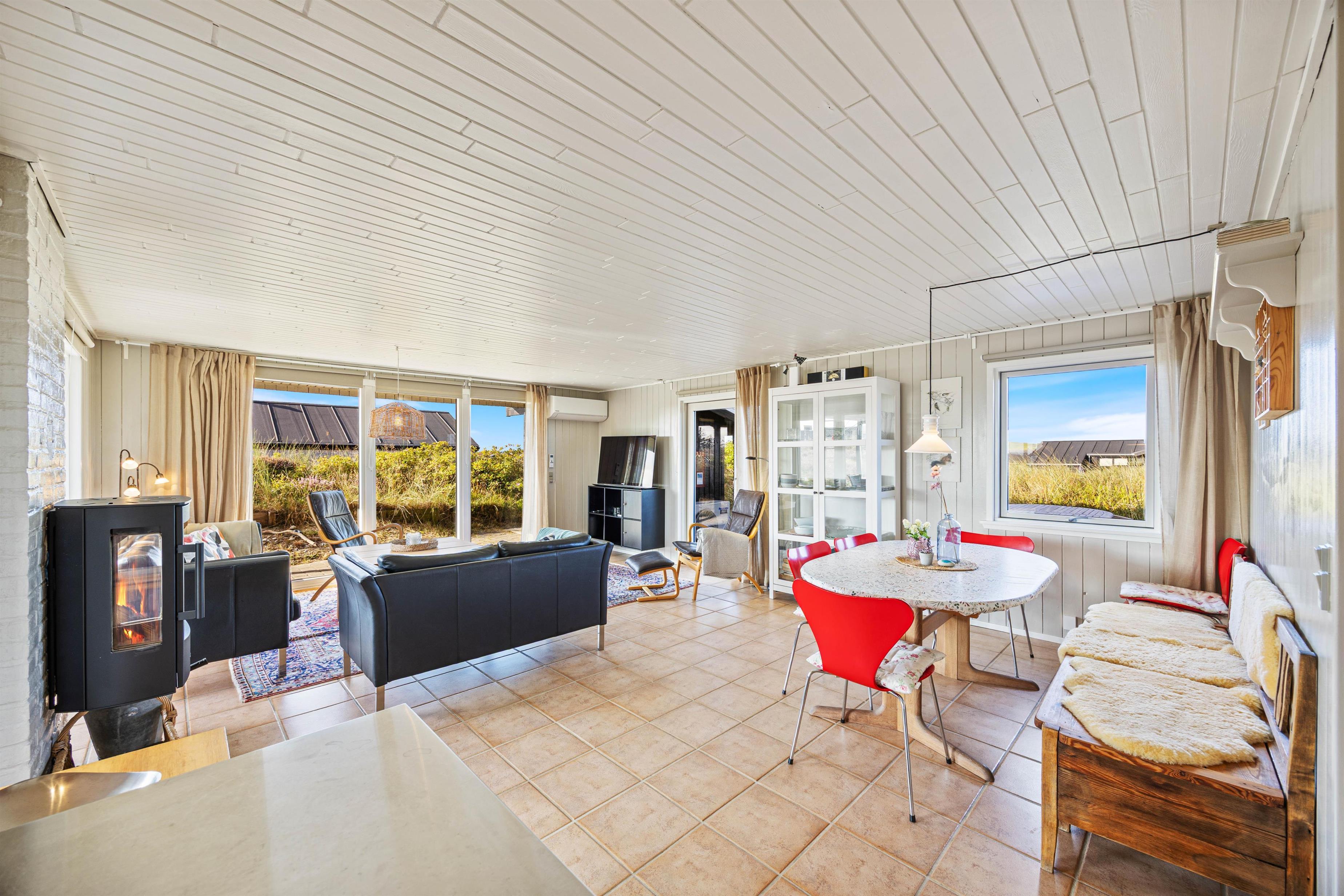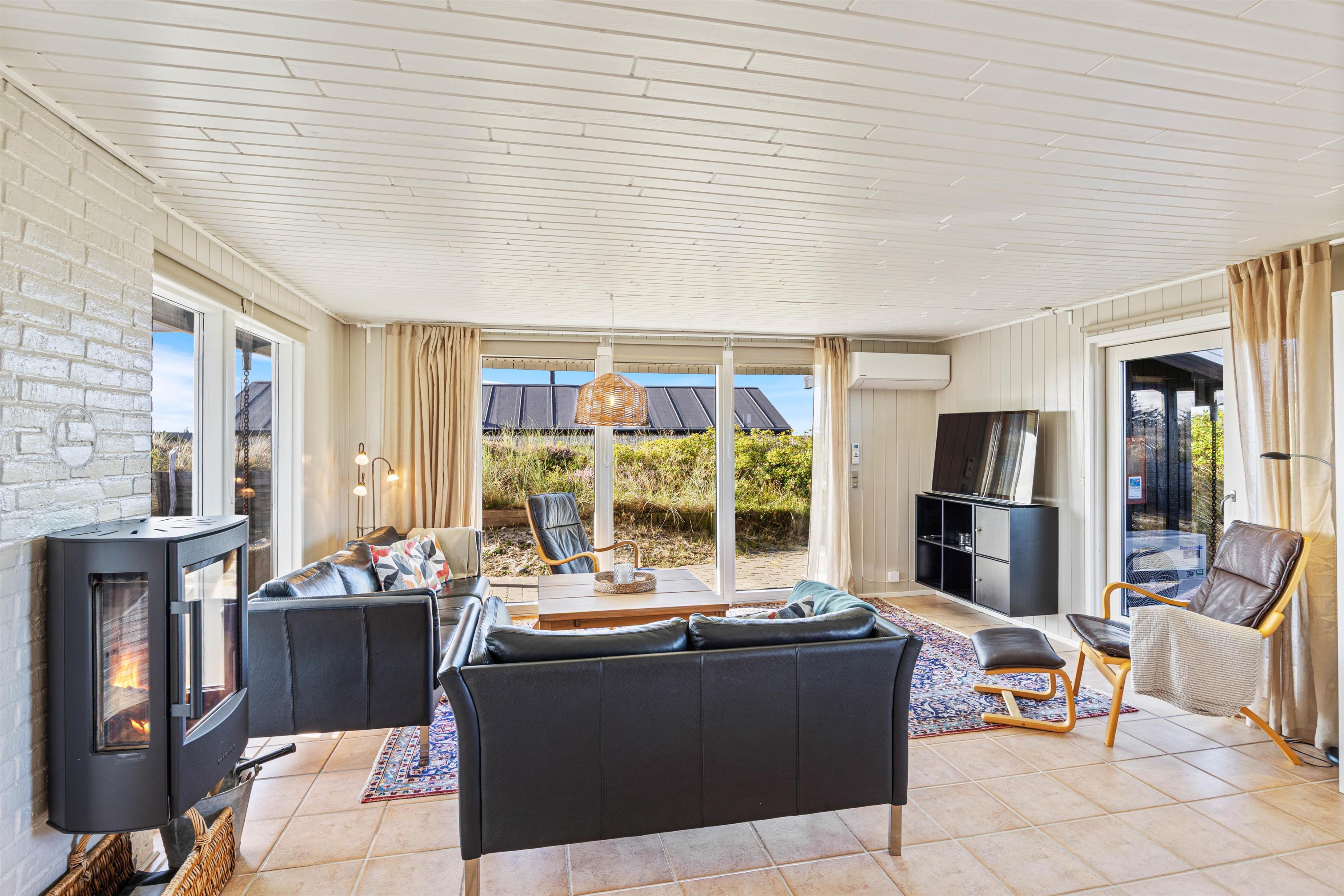 I stuen kan I slappe af i de behagelige møbler, imens I kan se en film fra feriehusets Apple TV og nyde de gnistrende flammer fra brændeovnen i baggrunden. Udover brændeovnen kan I også få varmen fra den energibesparende luft til luft varmepumpe. Efter en lang dag på Vestkysten kan I lægge jer i sengene og få en god nats søvn. I sommerhuset er der 4 sovepladser fordelt på 2 soverum.