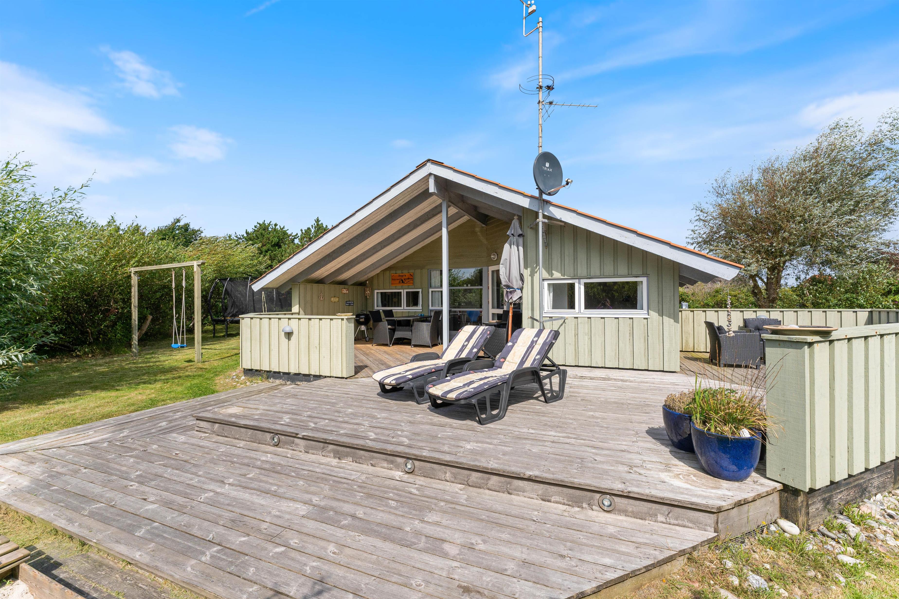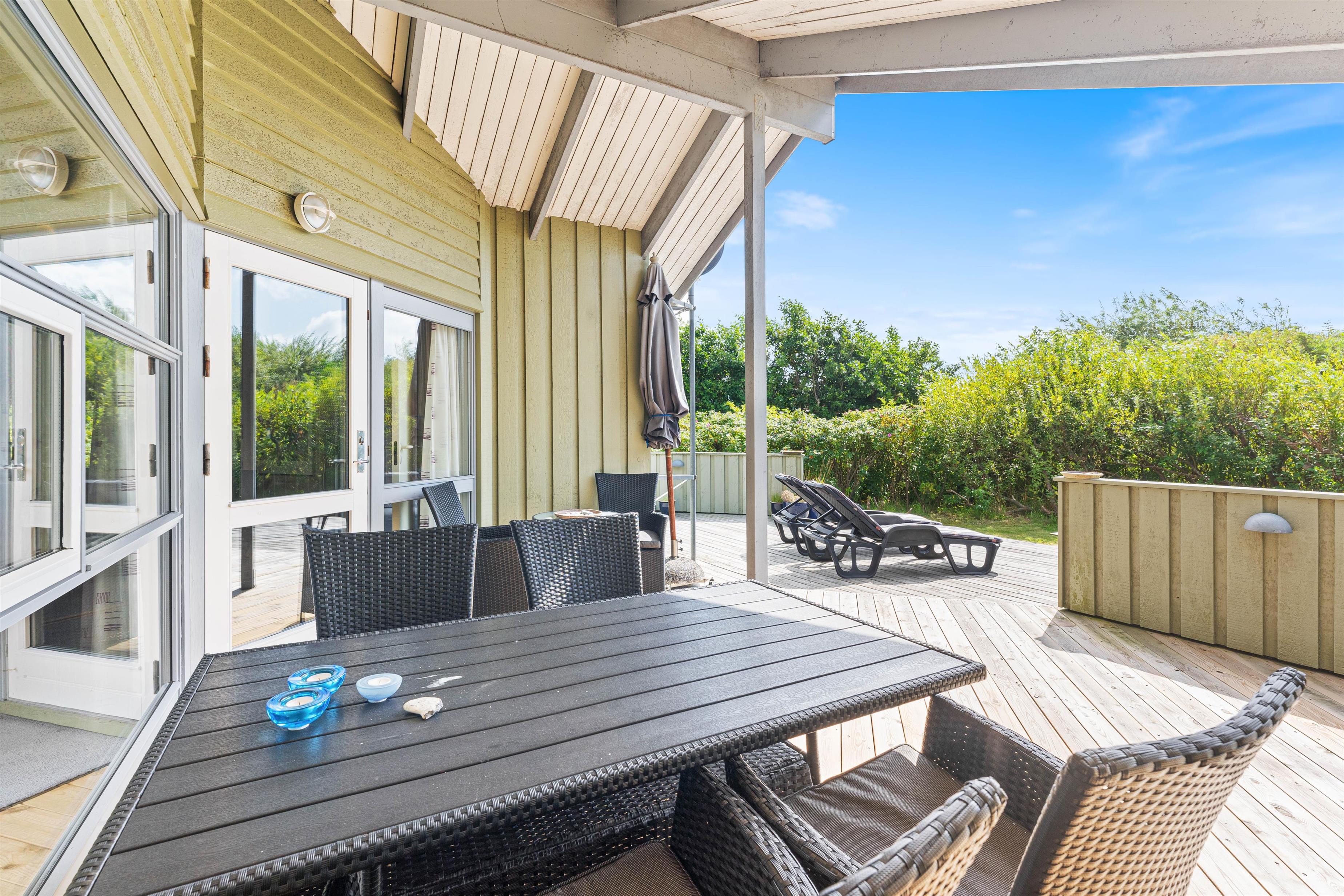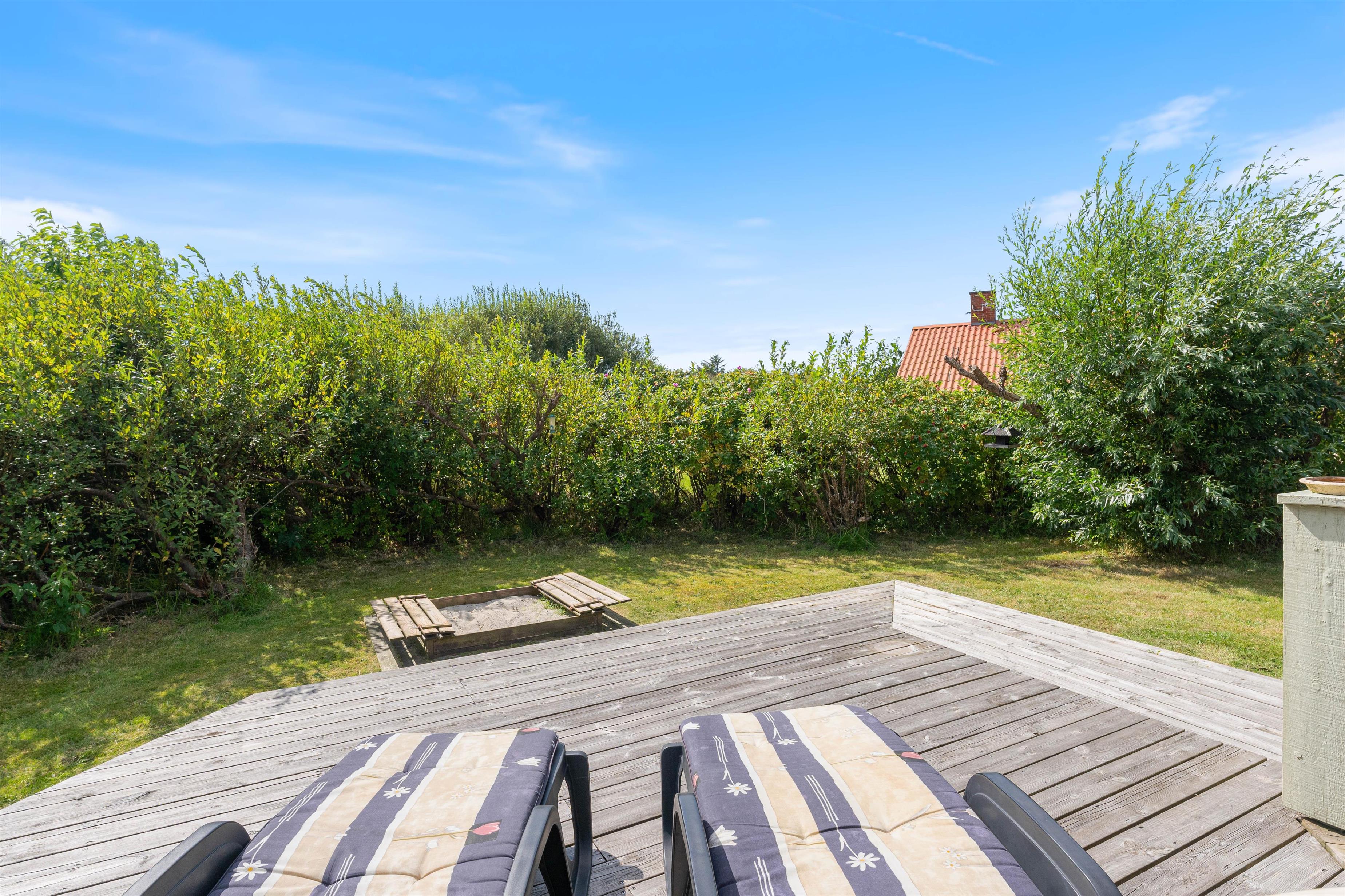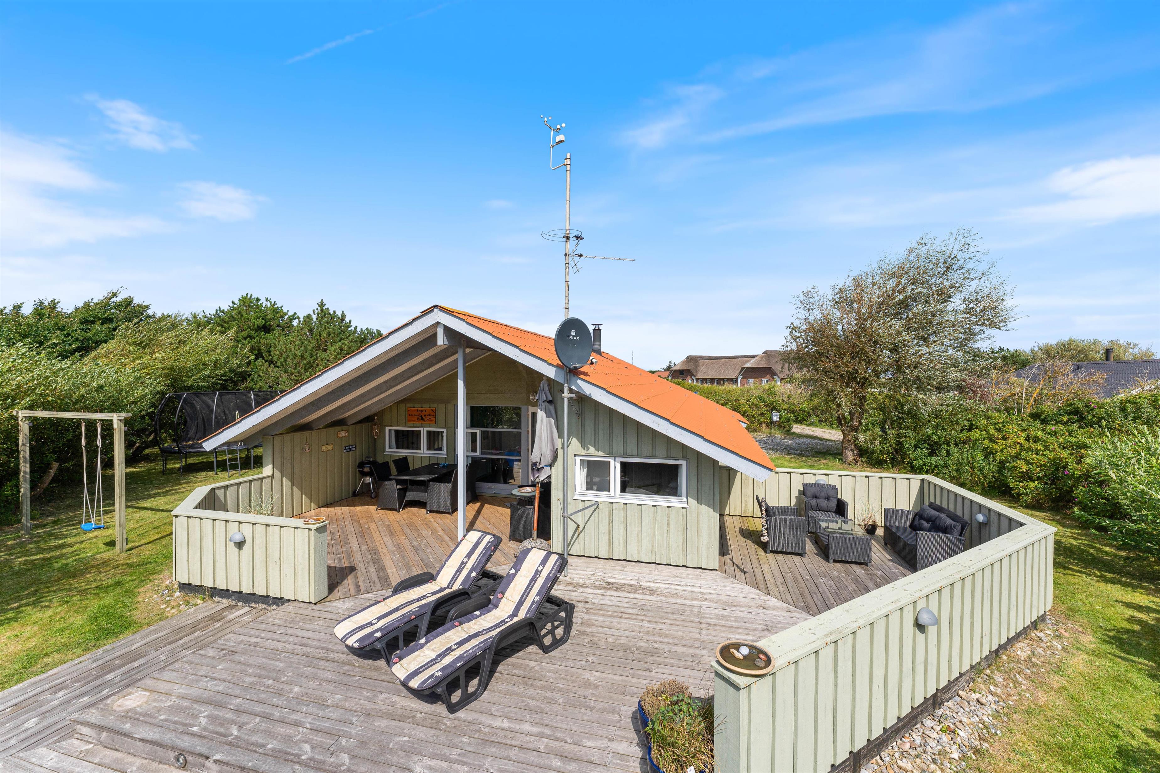 På den store terrasse, som er delvist afskærmet og delvist overdækket, kan I altid finde en god plads til afslapning. Tag solbad i de komfortable liggestole, slap af eller nyd en drink i havemøblerne, og slå parasollen op, hvis solen bliver for stærk. Børnene kan gå på opdagelse på naturgrunden, lege i sandkassen, gynge eller hoppe i trampolin. Slut dagen af med at tænde op i grillen og nyd et lækkert grillmåltid på terrassen, imens skyggerne bliver lange. Som afslutning på en dejlig dag, kan I tage hunden med på en frisk gåtur til Vesterhavet, hvor I samme kan nyde solnedgangen.