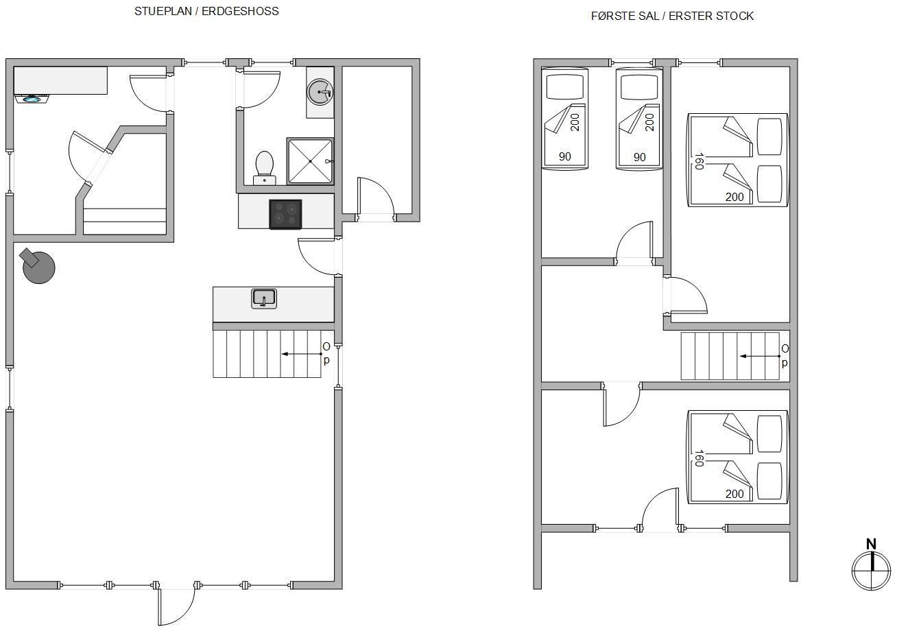 Sommerhuset har et veludstyret køkken med bl.a opvaskemaskine og mikroovn. Køkkenet står i åben forbindelse med stuen, som er pænt indrettet med gode møbler og brændeovn. Der er klinkegulv i stuen og køkkenet.
