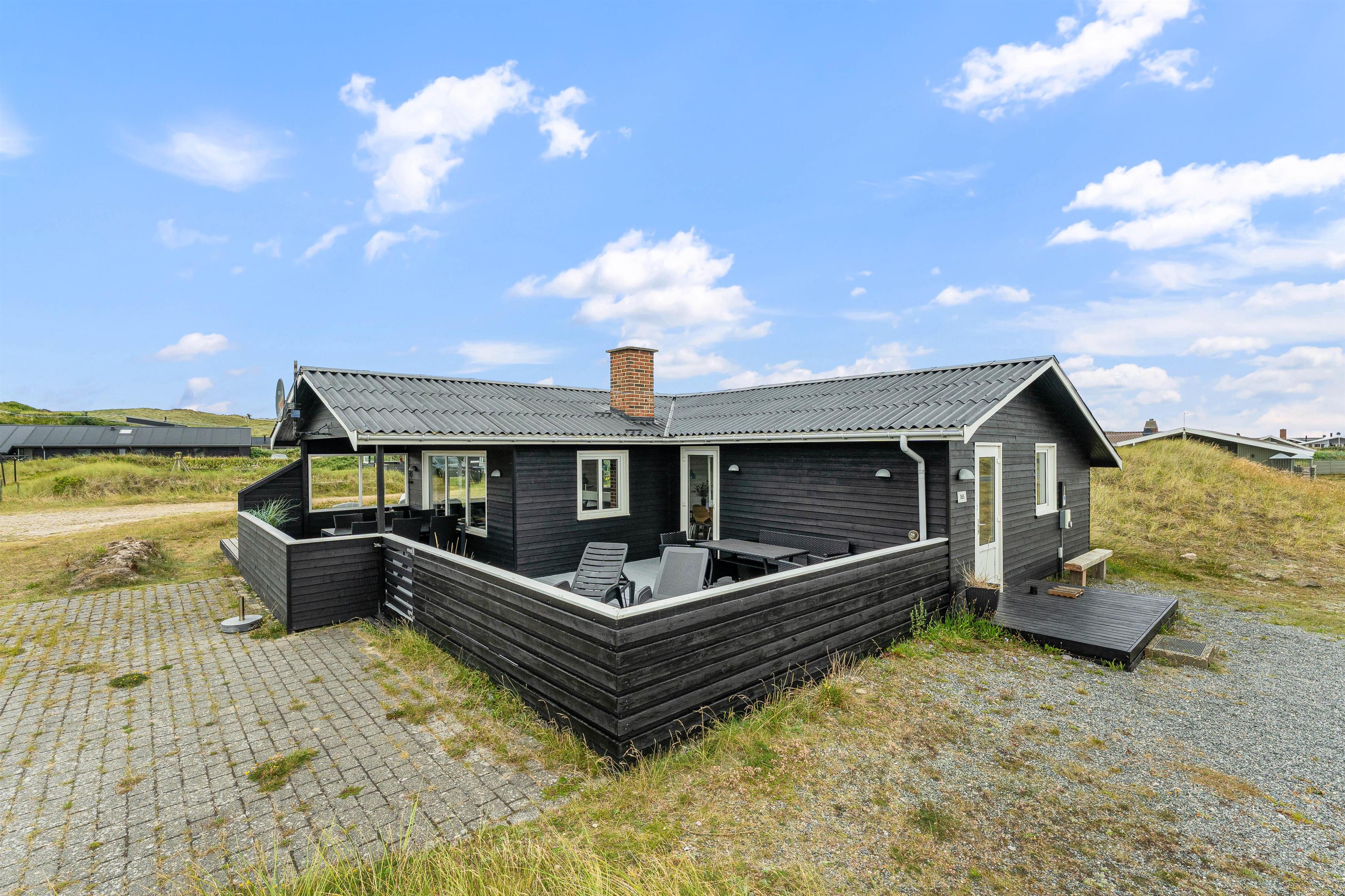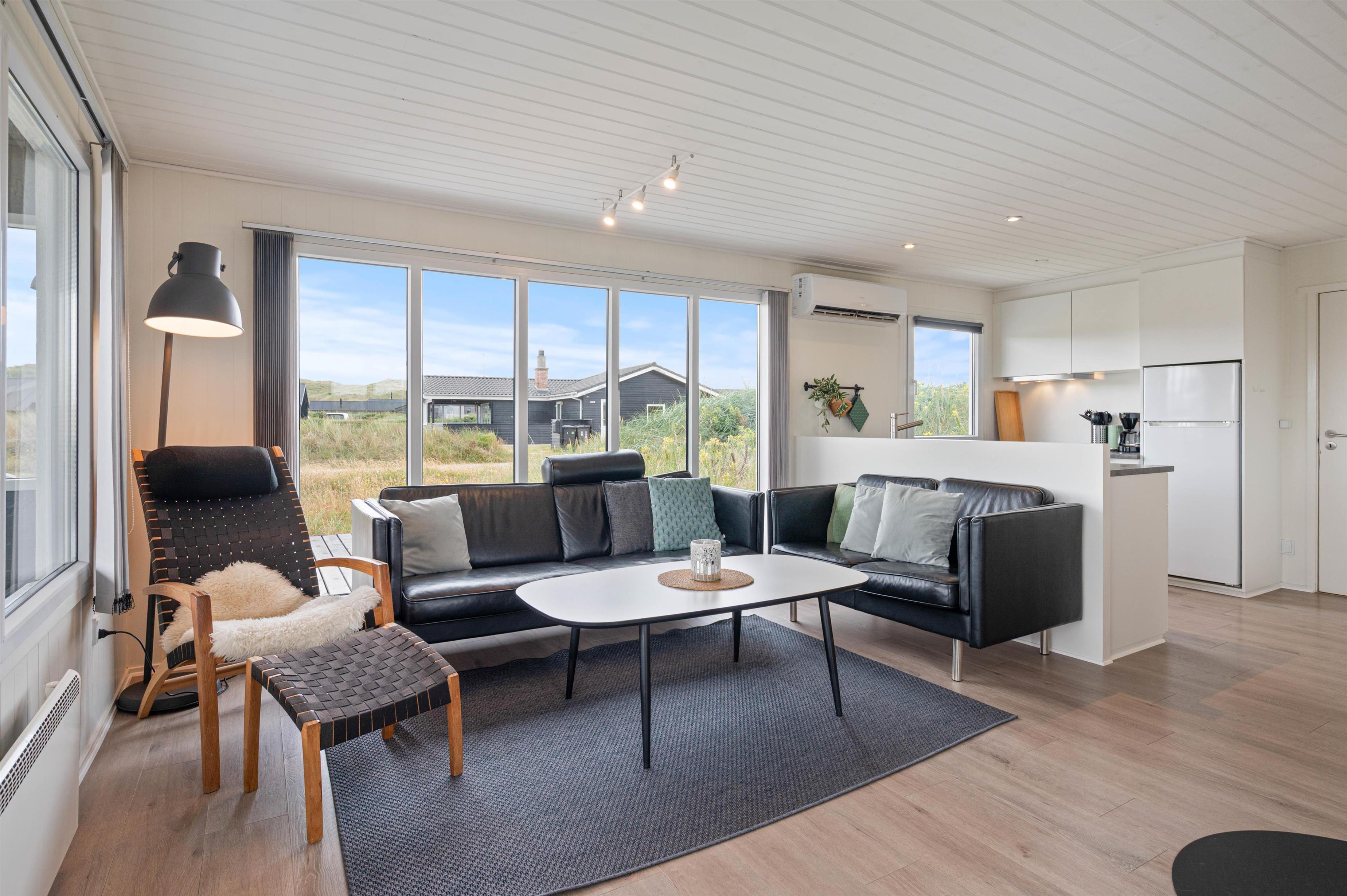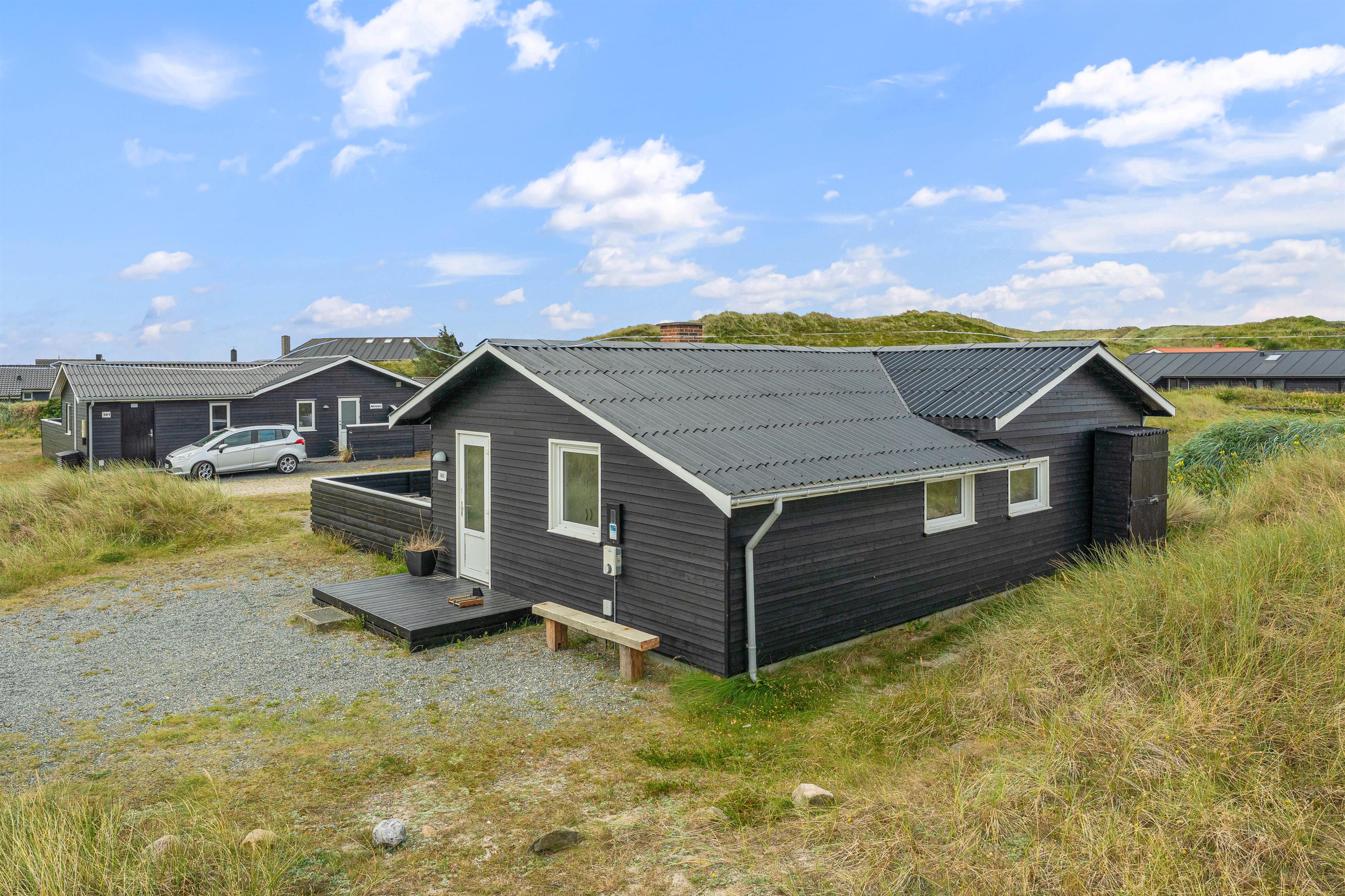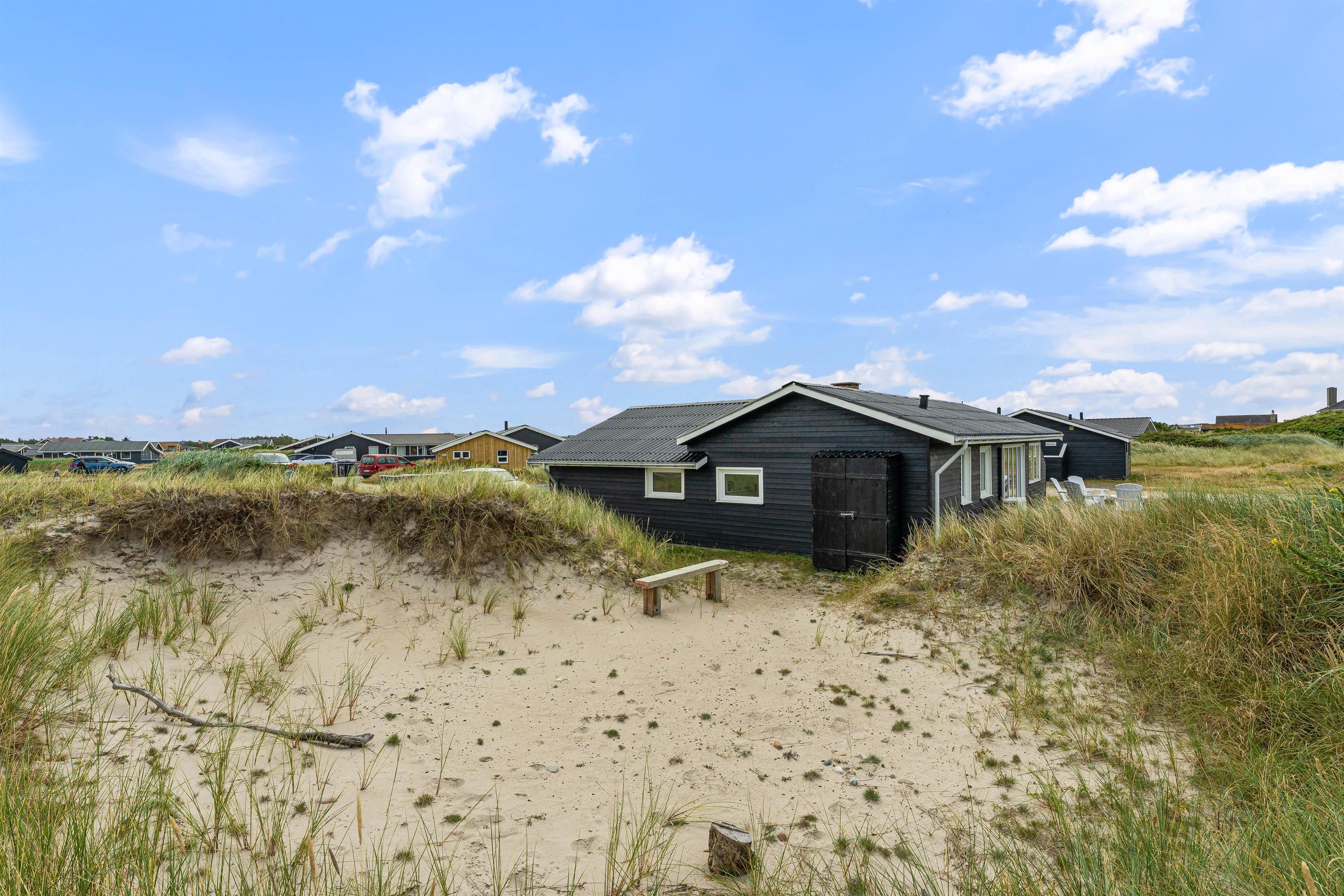 Den lukkede terrasse ved sommerhuset er ideel til småbørnsfamilier, eller hvis du har hund med. Her kan I slappe af i de komfortable liggestole eller hygge jer sammen i havemøblerne. Der er gode kroge, så I kan finde skygge eller læ, når I har brug for det. Med kun 200 meter til Vesterhavet, må I naturligvis også besøge den kilometerlange sandstrand og måske dyppe tæerne i det brusende Vesterhav.