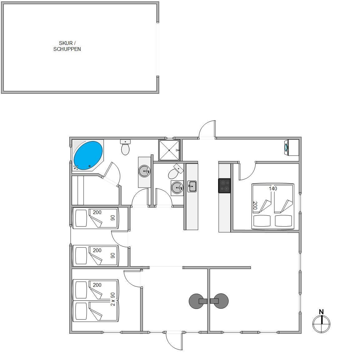 Ægte aflsapning finder I på det store badeværelse, hvor I har jeres eget wellness område. Her er plads til at nyde hinandens selskab, når børnene er hoppet i seng. Efter et dejligt langt bad i spaen, kan I smutte ind i saunaen.