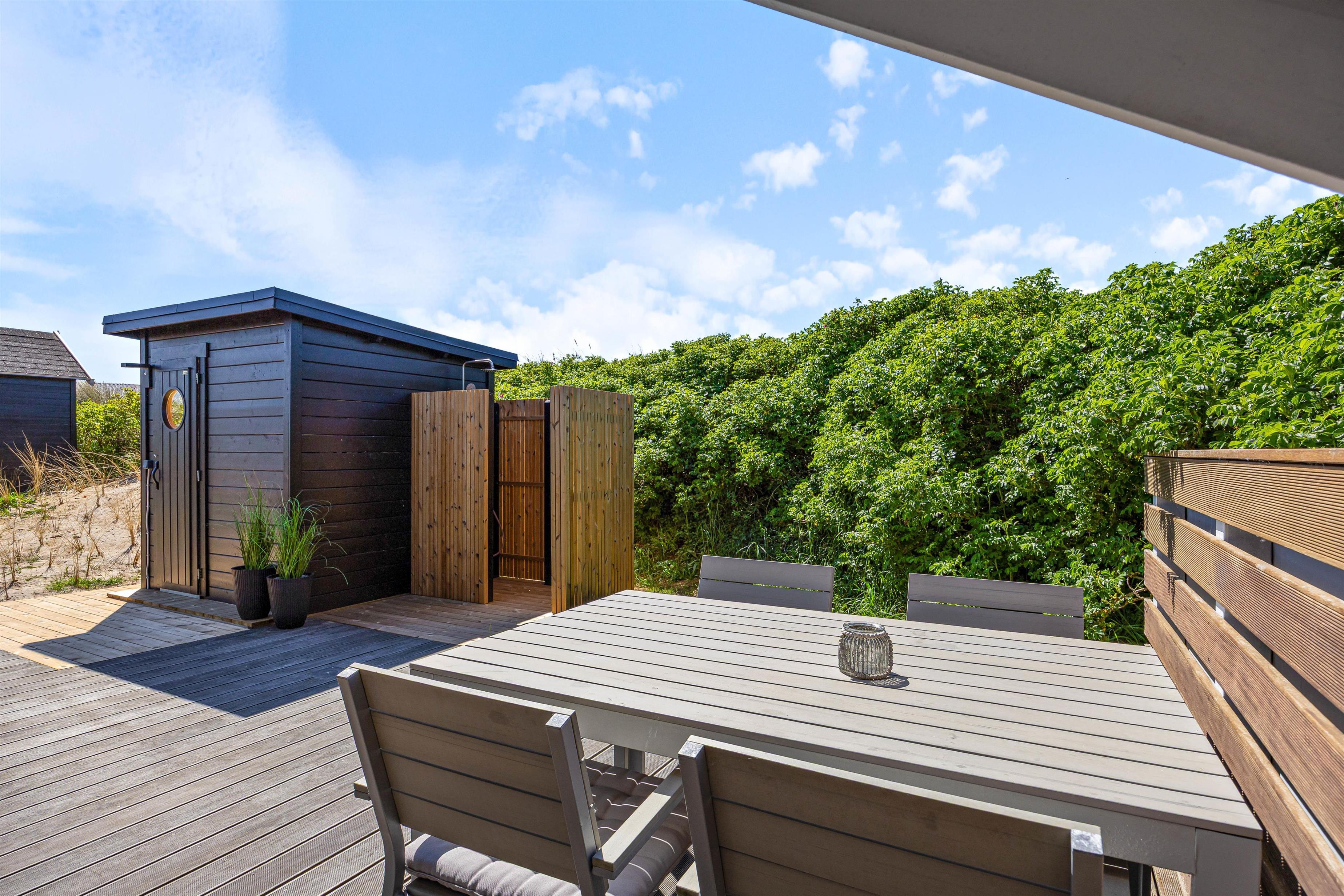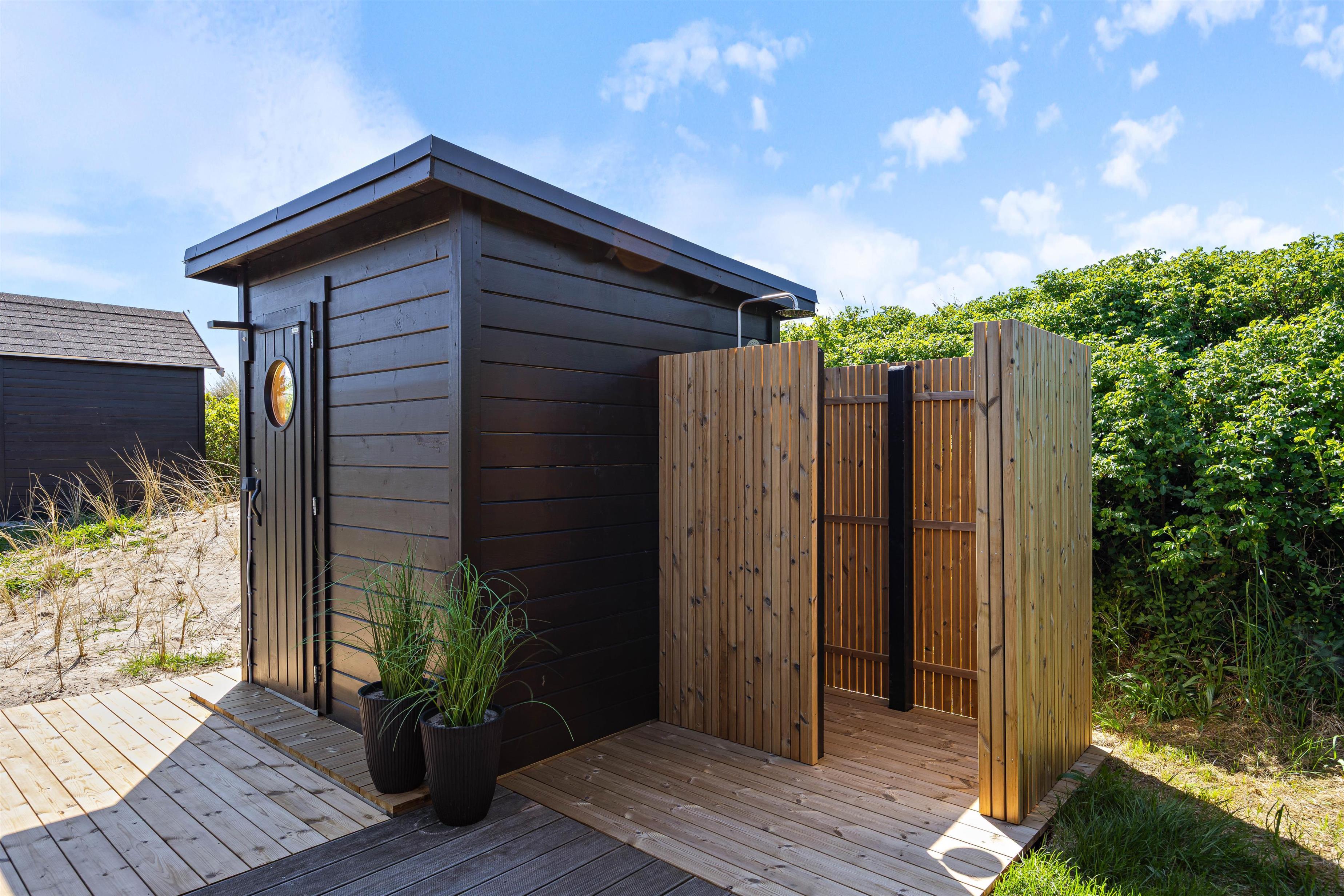 Sommerhusets udendørs wellnessfaciliteter giver oplevelsen et ekstra løft. Udesaunaen er ideel, hvis I trænger til lidt ekstra afslapning, og den udendørs bruser – som kan bruges fra april til november – giver jer mulighed for en forfriskende start eller afslutning på dagen.