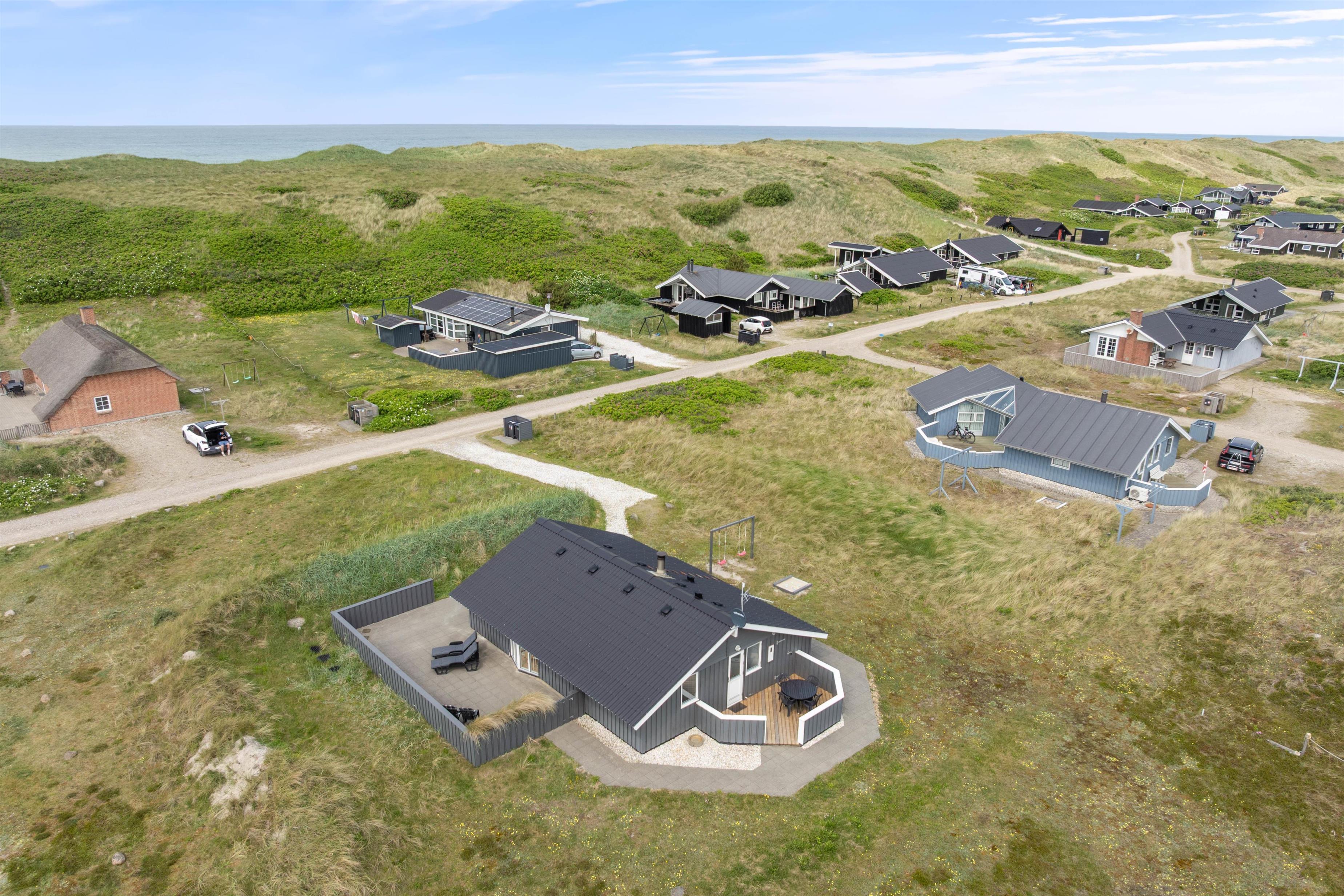 Kun 100 meter fra Vesterhavet finder I dette skønne sommerhus, der har plads til hele familien. I sommerhuset, er der lagt op til en skøn ferie, hvor der er god mulighed for afslapning i både spabad og sauna. De voksne kan slappe af og nyde vejret på terrasserne, mens børnene gynger eller leger i sandkassen.