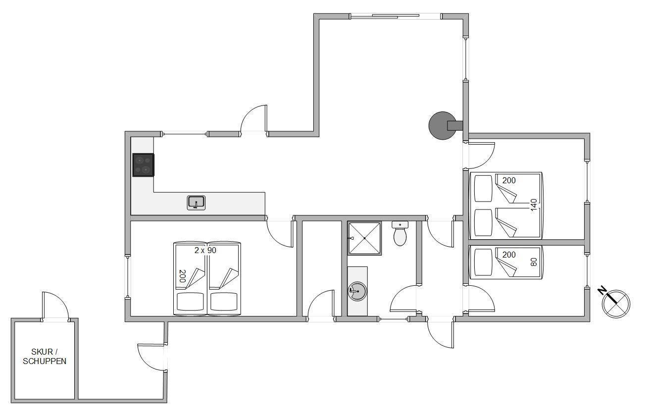 Sommerhuset her på Bjerregårdsvej 80 er indbydende og godt indrettet. Her har I alt, hvad I skal bruge for at få en dejlig ferie tæt på Vesterhavet. Og beliggenheden på en stor, afskærmet plænegrund i et roligt område, vil I sikkert også nyde, da I ugeneret kan hygge og grille på terrassen. Imens kan børnene løbe frit rundt.