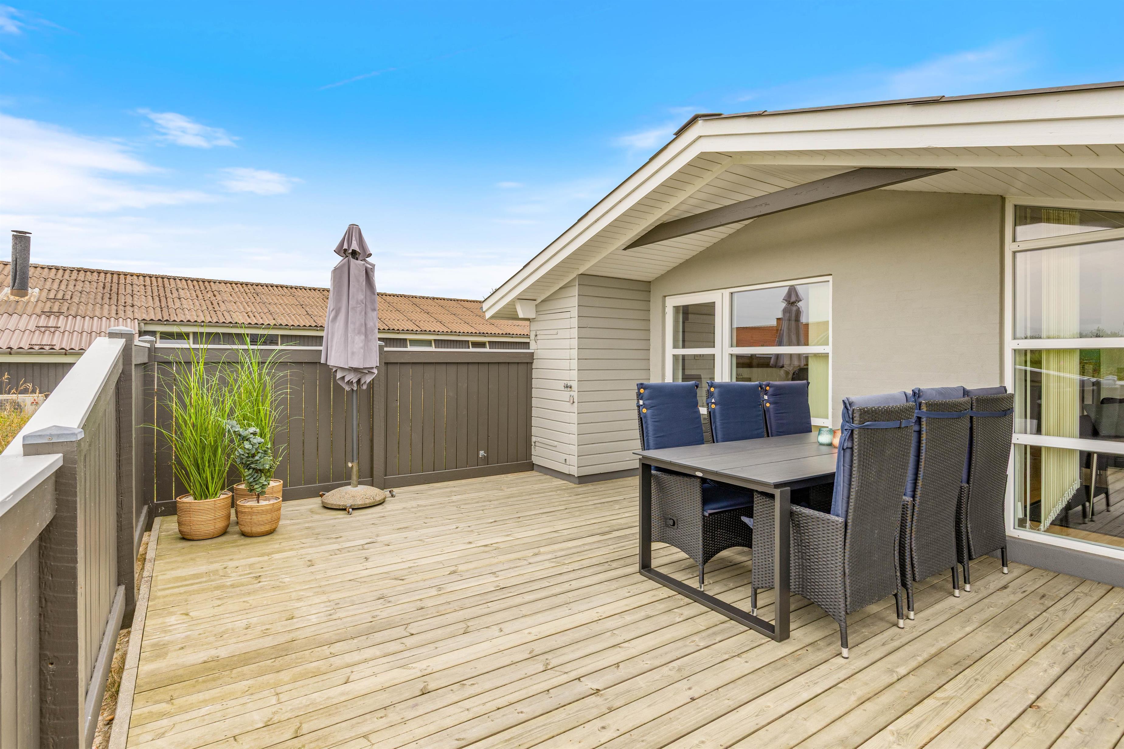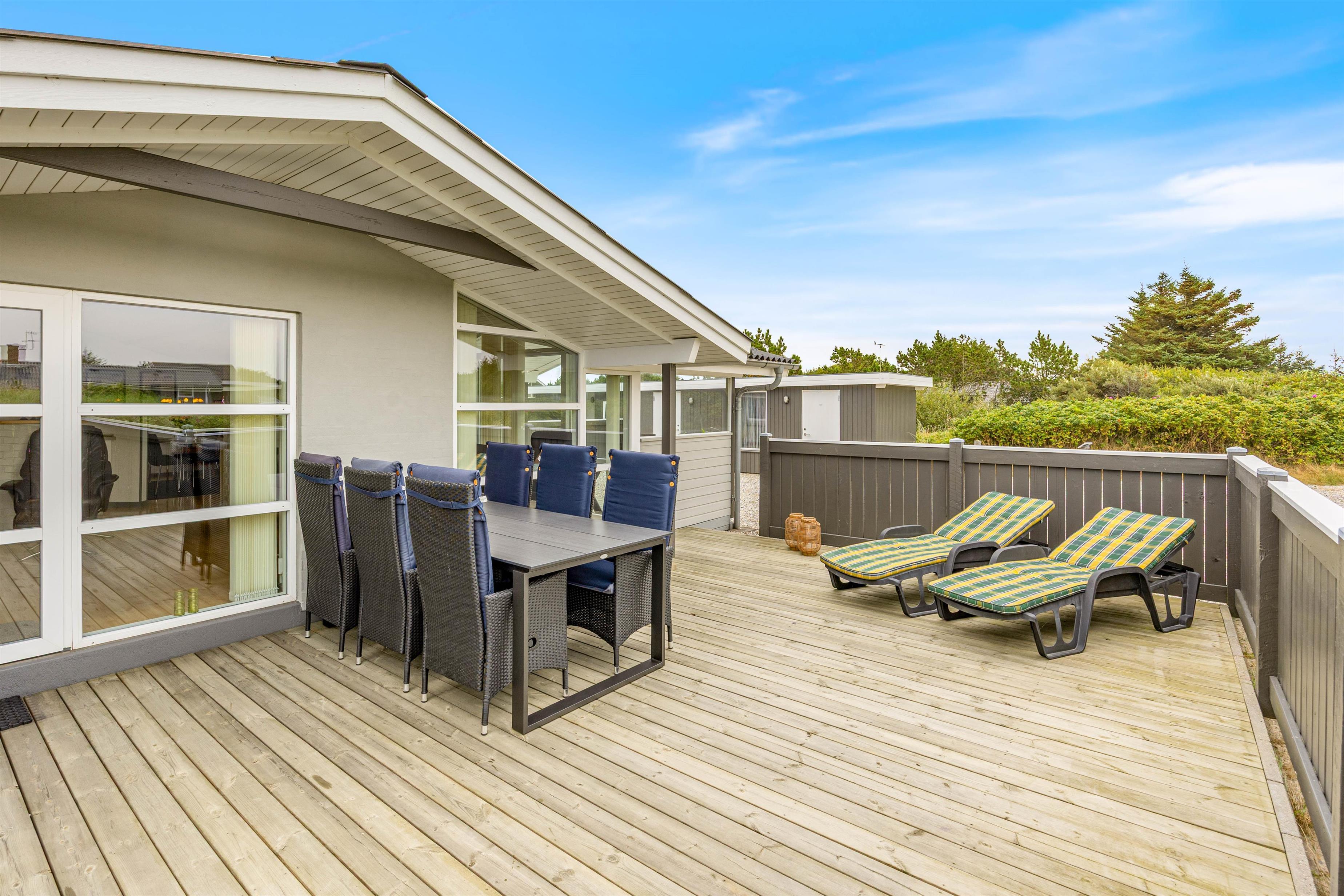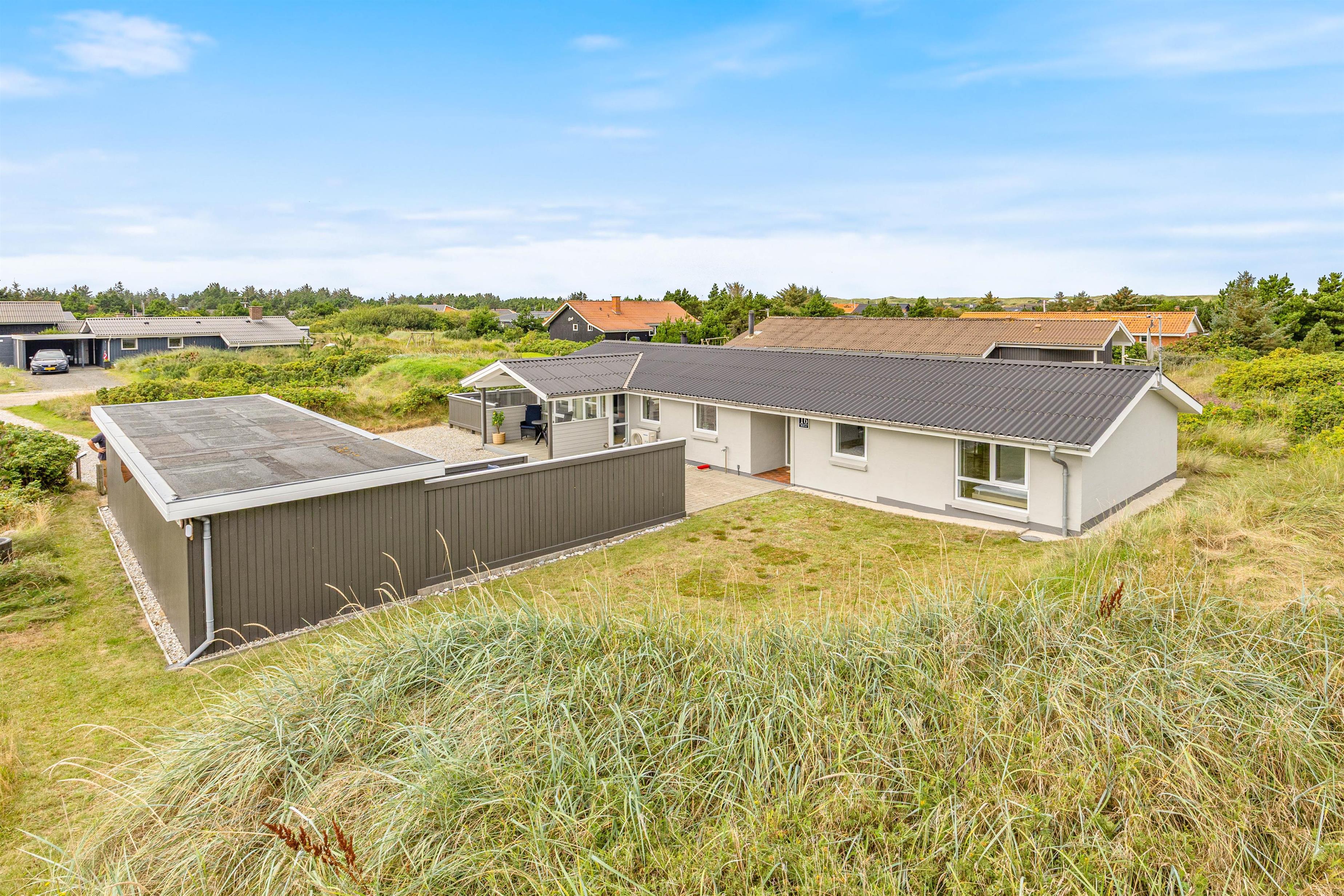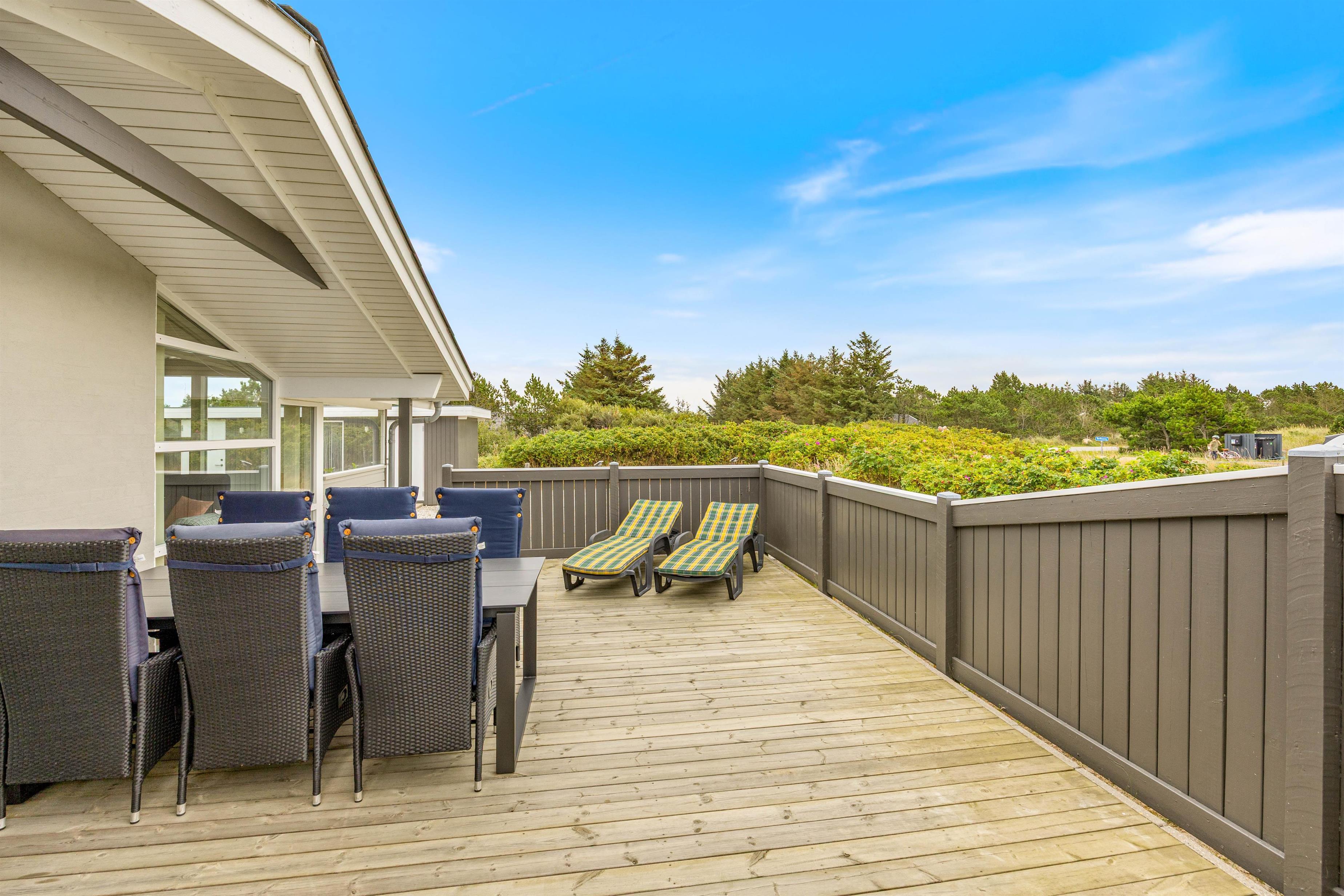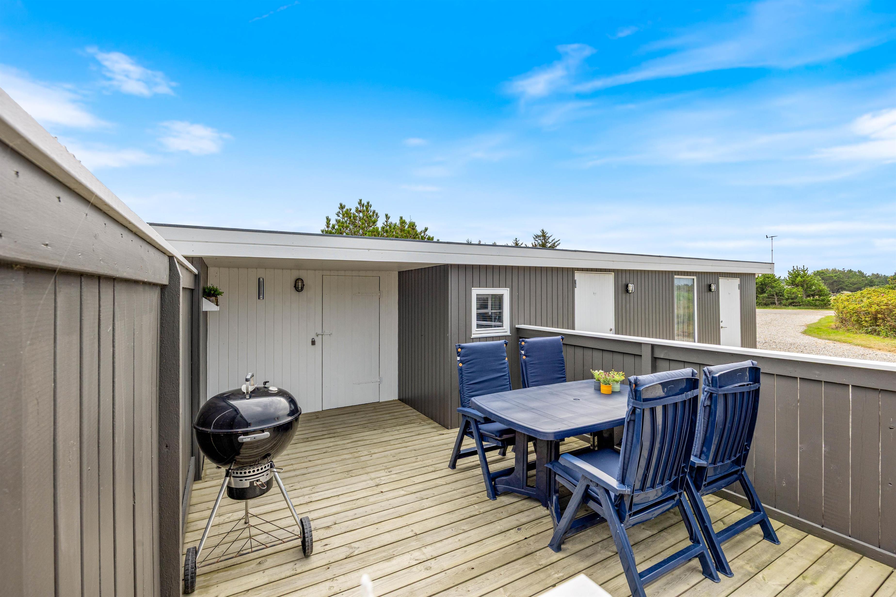 Fra stuen er der adgang til den dejlige terrasse, som er delvist overdækket. Her venter havemøbler, liggestole og grillen på jer. Slap af i solen, læs en god bog og nyd en dejlig frokost tilberedt på kulgrillen. Med ferieadresse på Midtvej 16 er I tæt på indkøb (400m) og det brusende Vesterhav, som indbyder til hyggelige gåture, smukke solnedgange og meget mere – uanset årstiden er Vesterhavet altid et besøg værd.