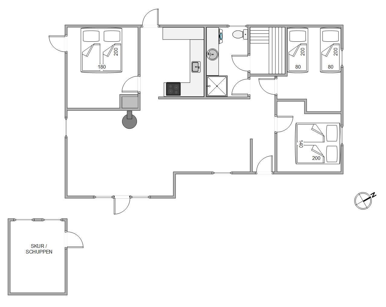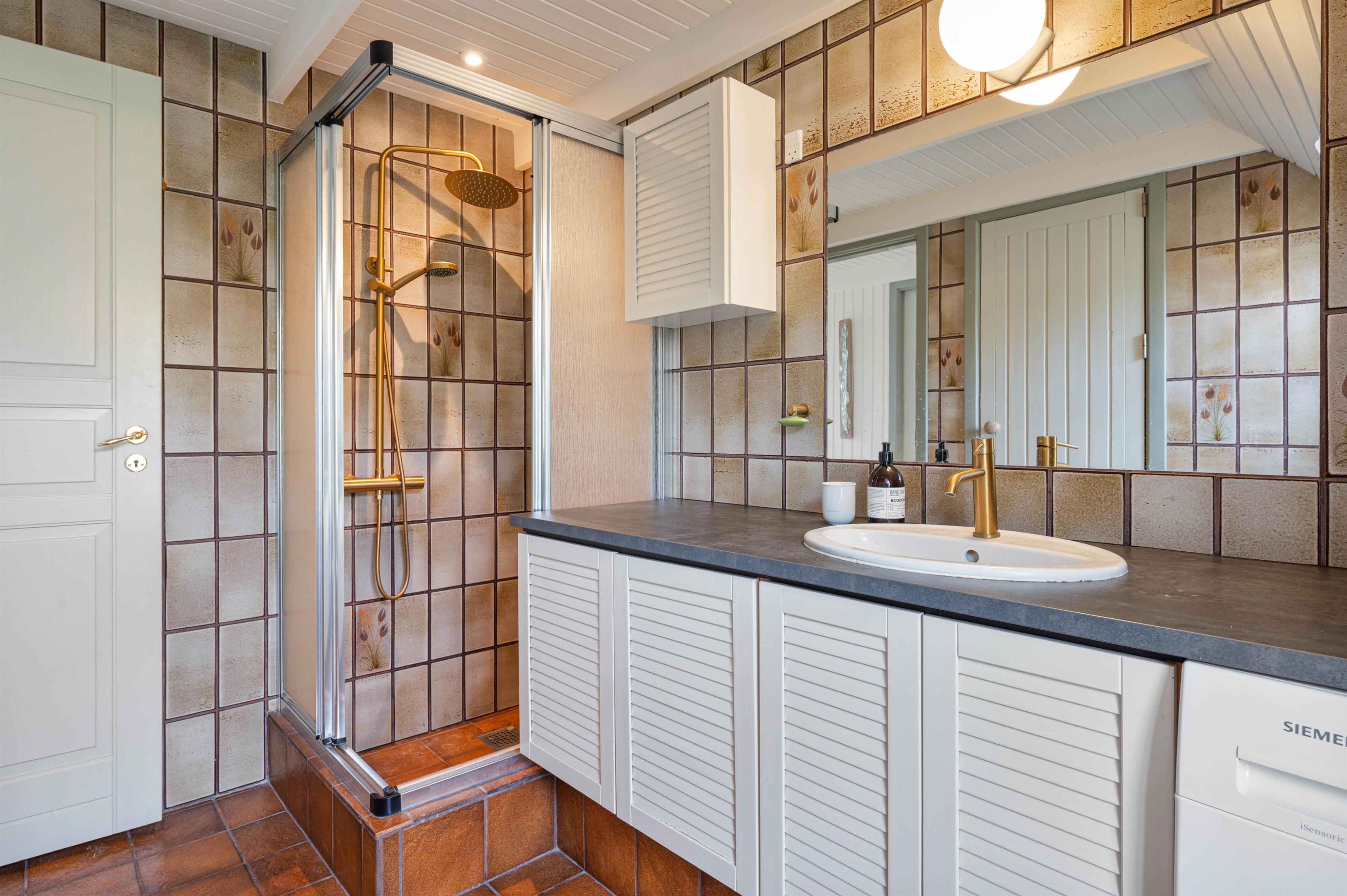 I det velholdte sommerhus venter jer en komfortabel indretning og et praktisk udstyret køkken med opvaskemaskine og mikroovn. I sommerhusets garage finder I desuden et ekstra køleskab samt fryser.